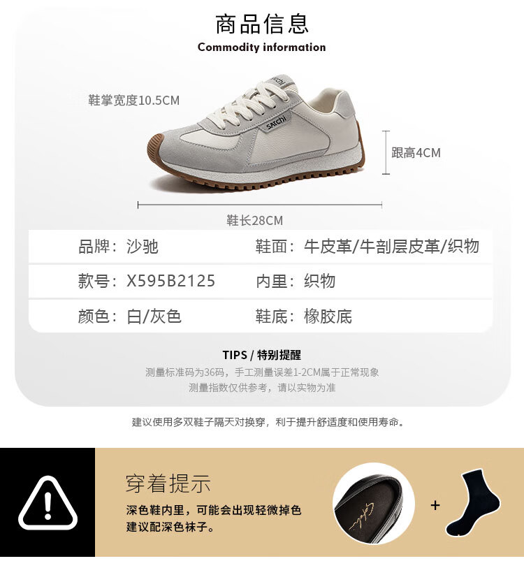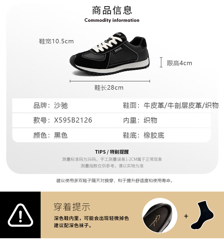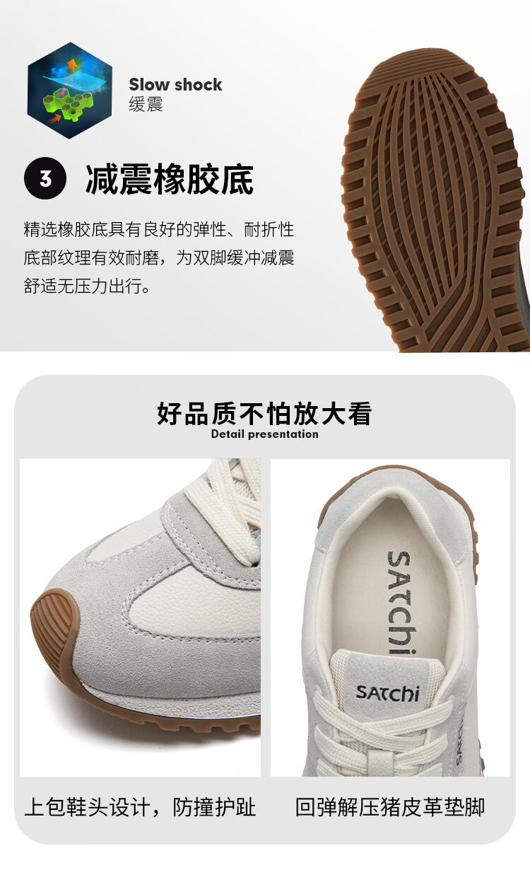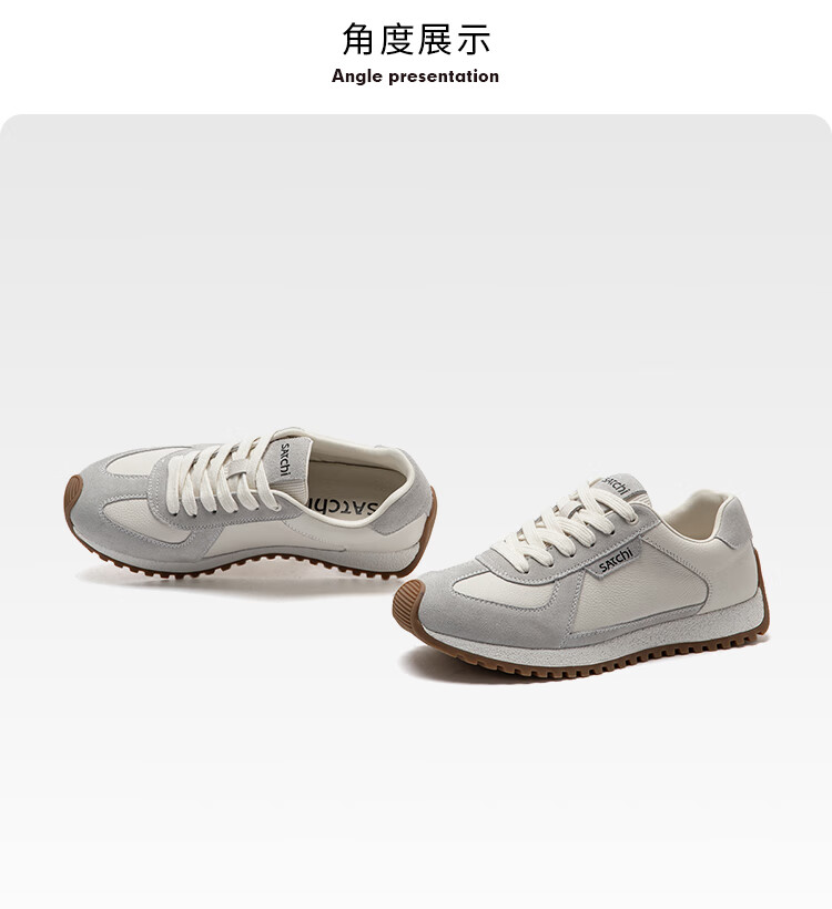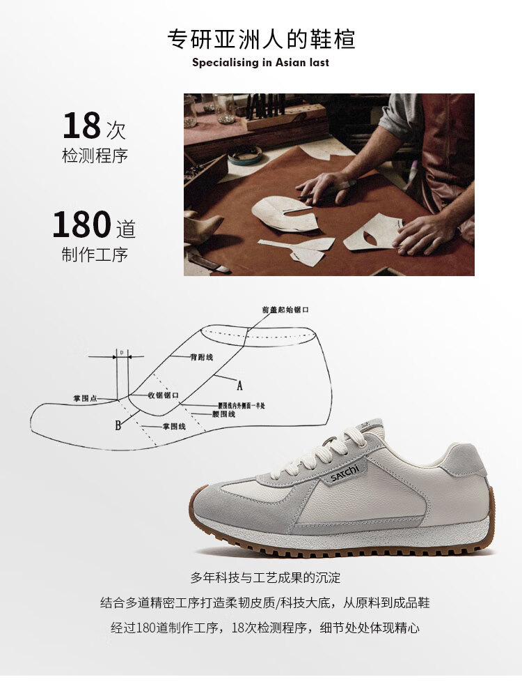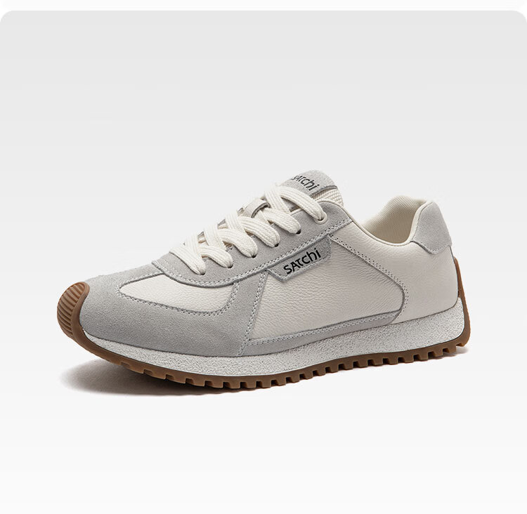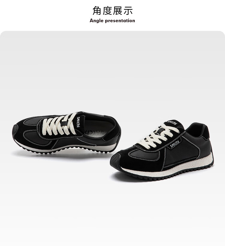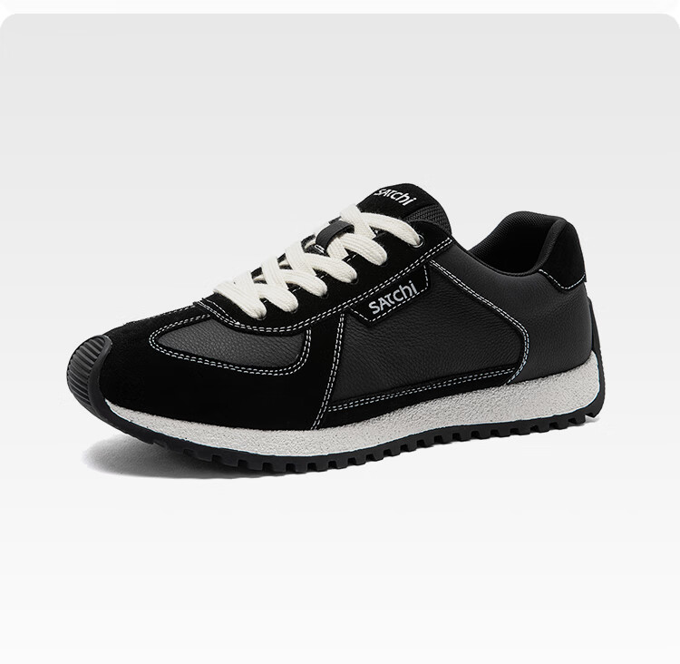 沙驰(SATCHI)男鞋新款真皮阿甘鞋休闲鞋潮流德训鞋运动风男士板鞋运动鞋跑步鞋 黑色(X595B2126) 41 欧码(选小一码)