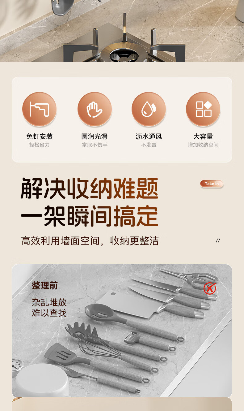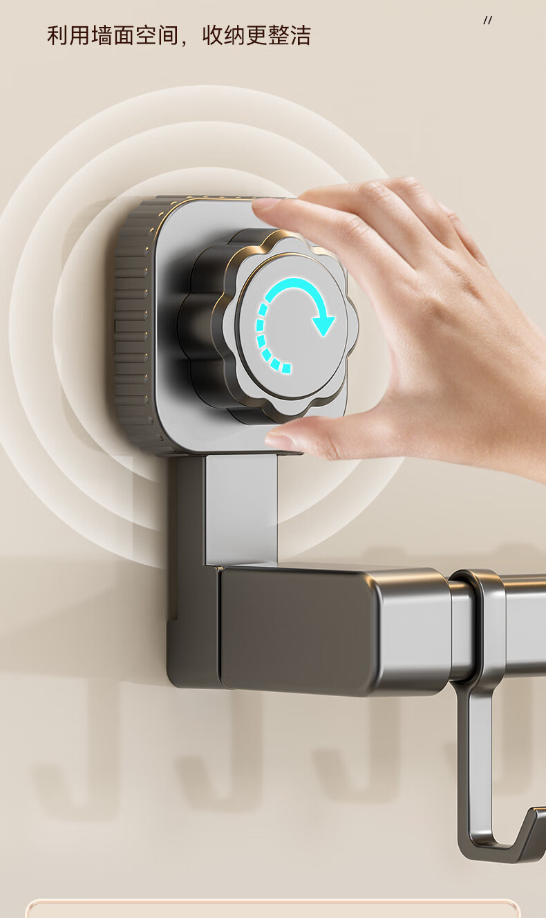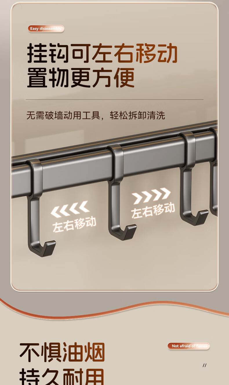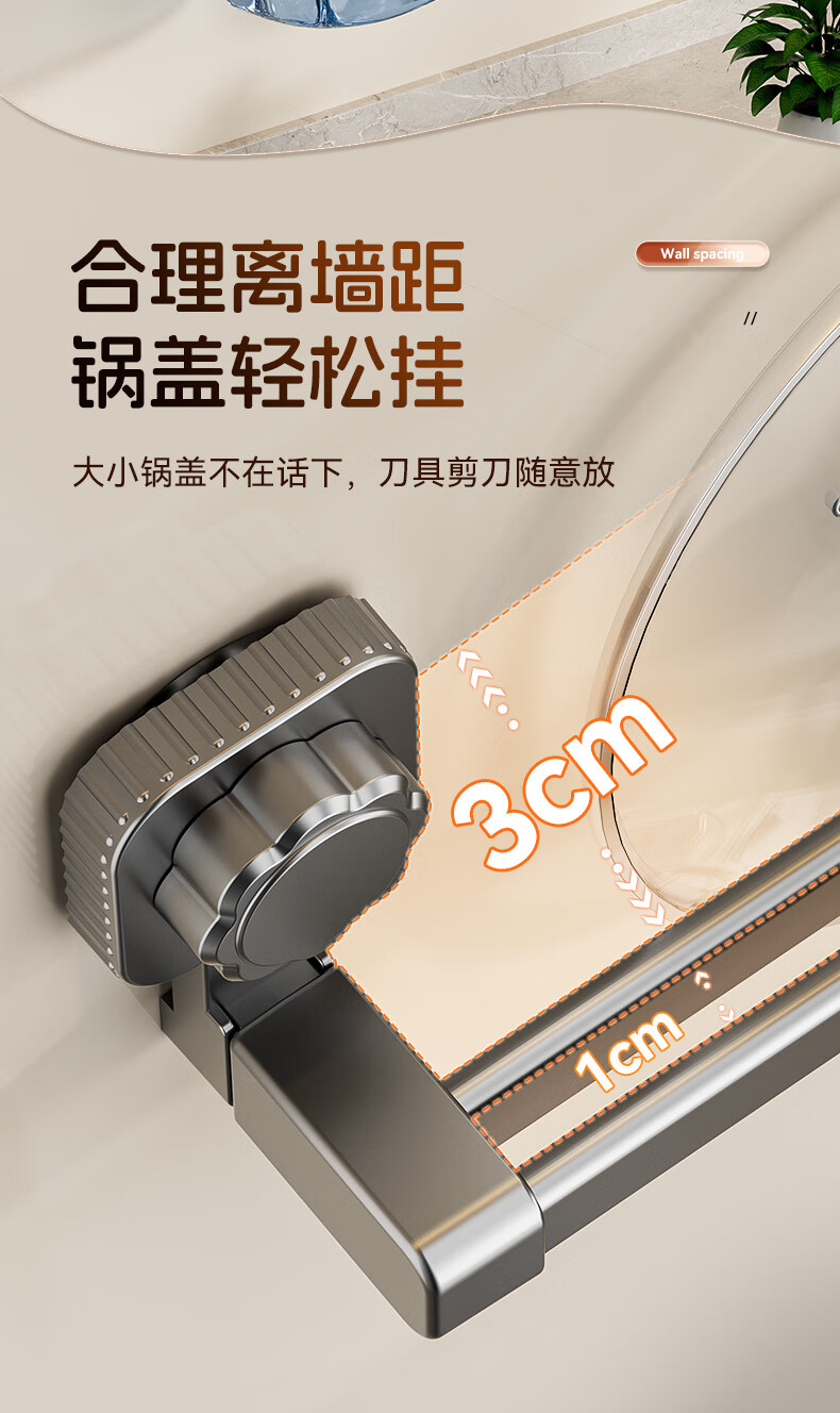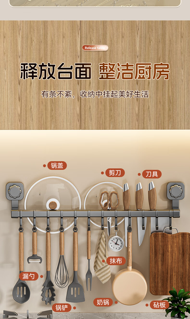 馨婺家吸盘挂钩厨房多功能用品置物架锅具收纳架免打孔家用铲子勺子挂架 枪灰色-双杆30cm【强力吸盘】