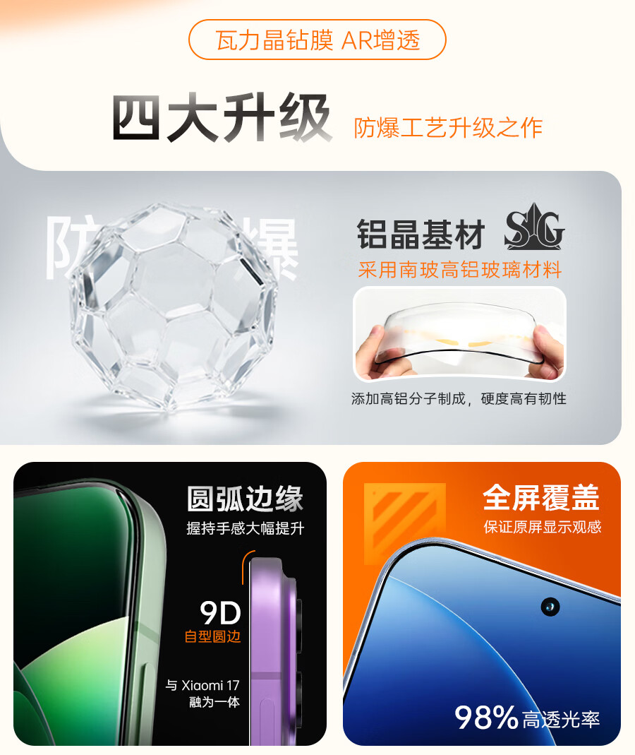 瓦力【全胶高清3d热弯膜】适用小米17ultra全胶钢化膜XIAOMI17Ultra手机贴膜不沾指纹防摔爆秒贴无尘舱