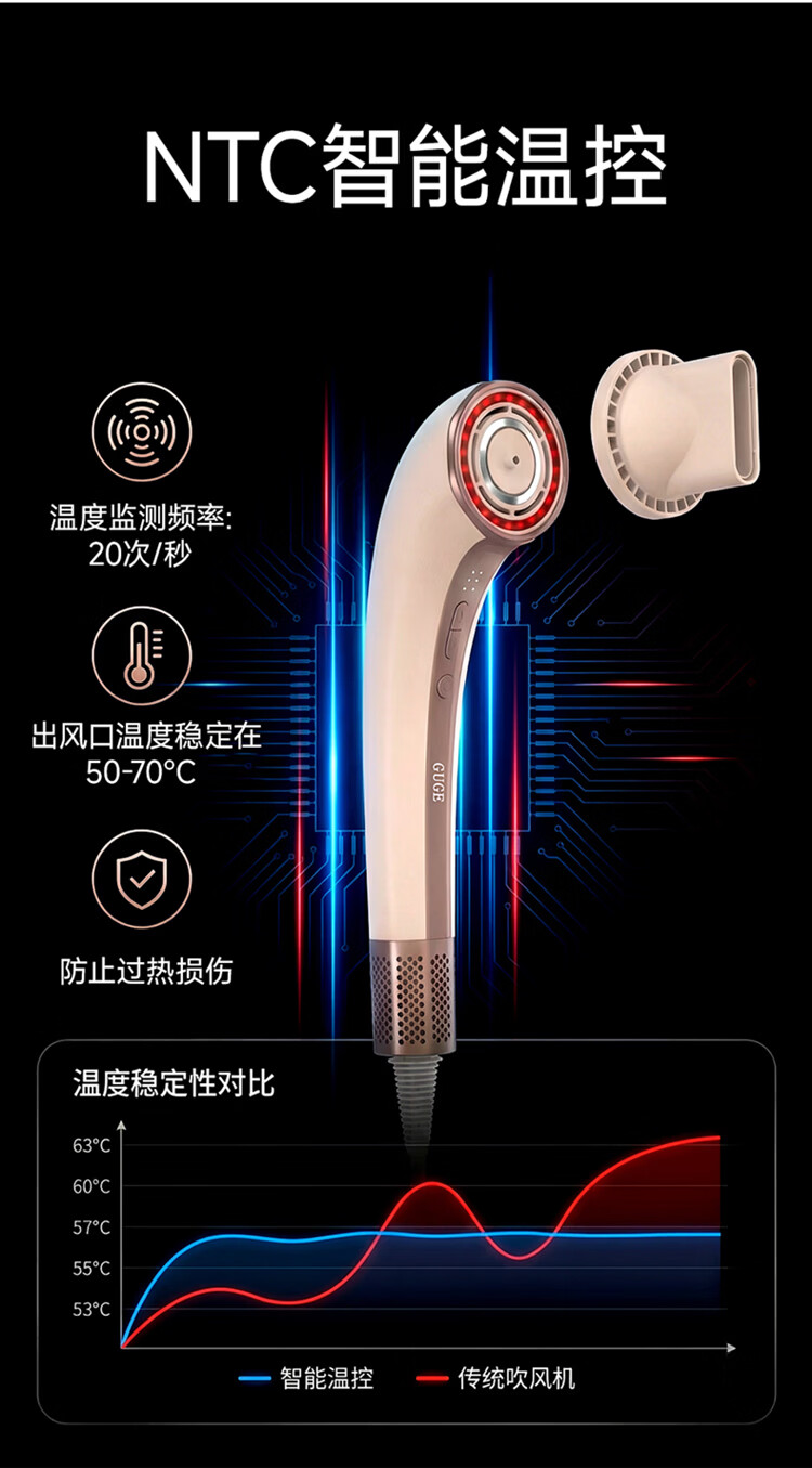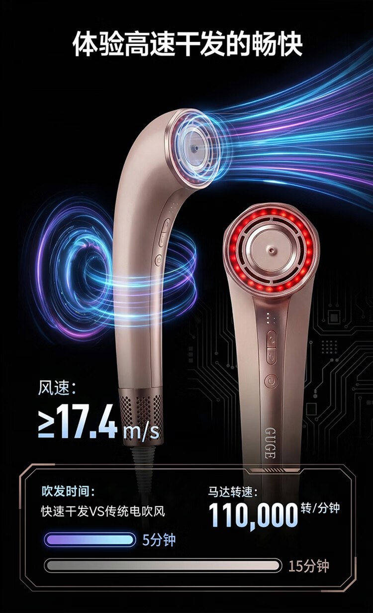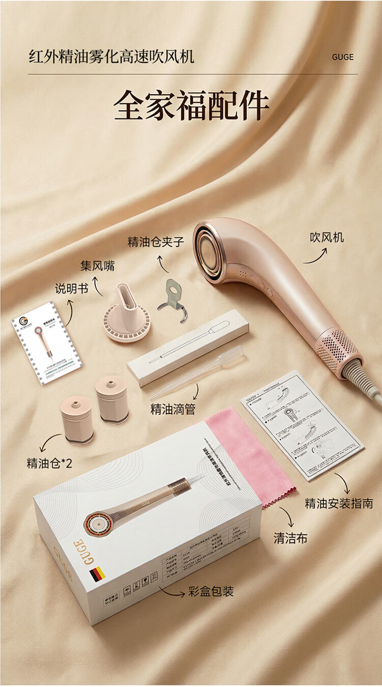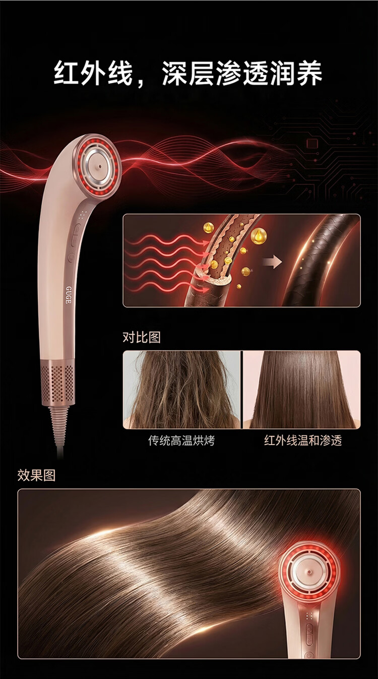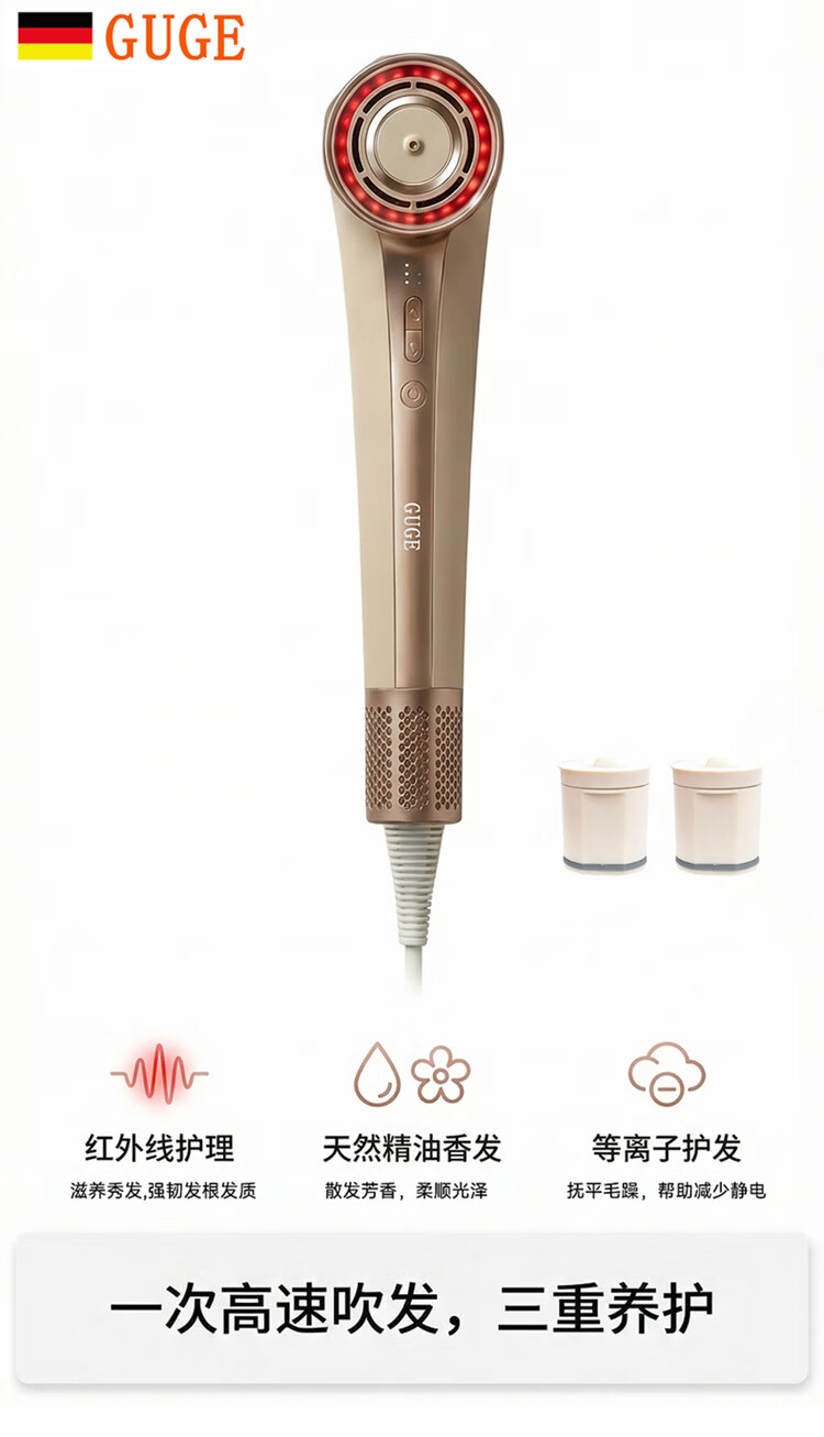 谷格(GUGE)【速干润发红外精油】德国 高速护发吹风机 等离子家用不伤发风筒新款大功率电吹风机女士新年礼物