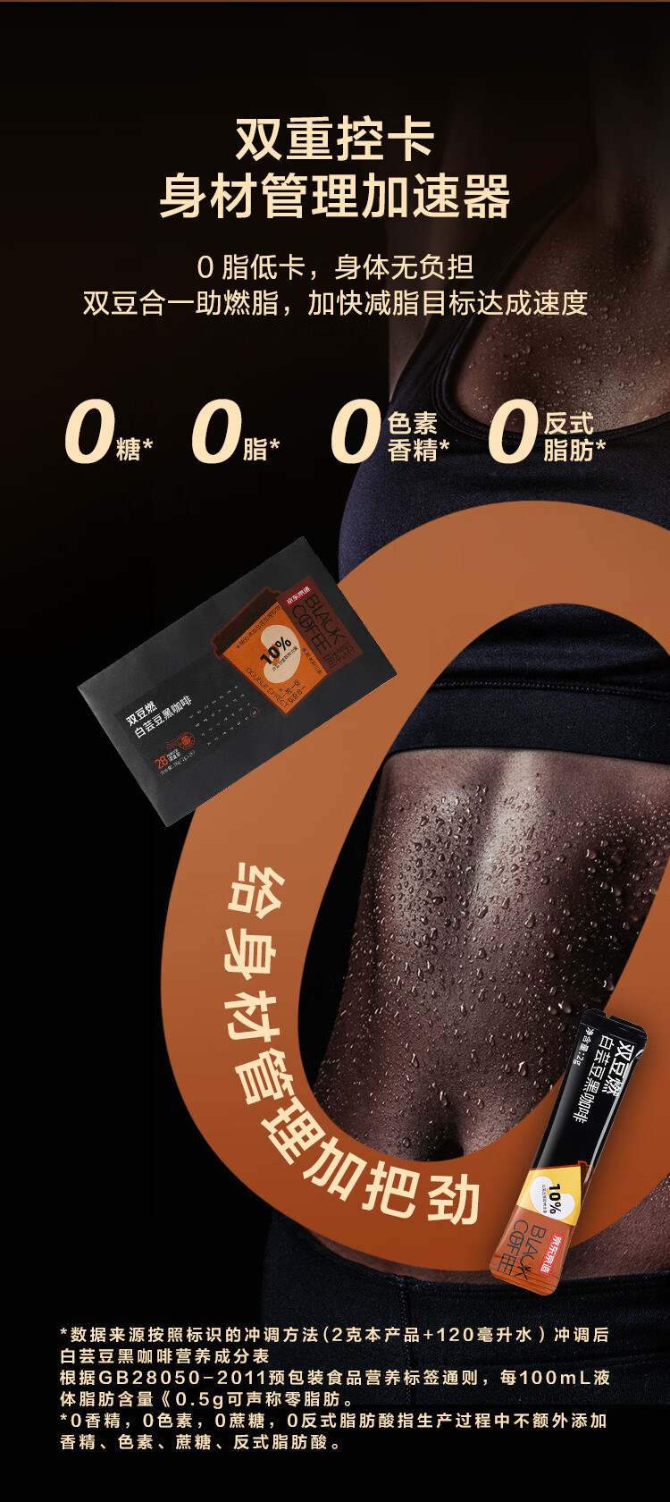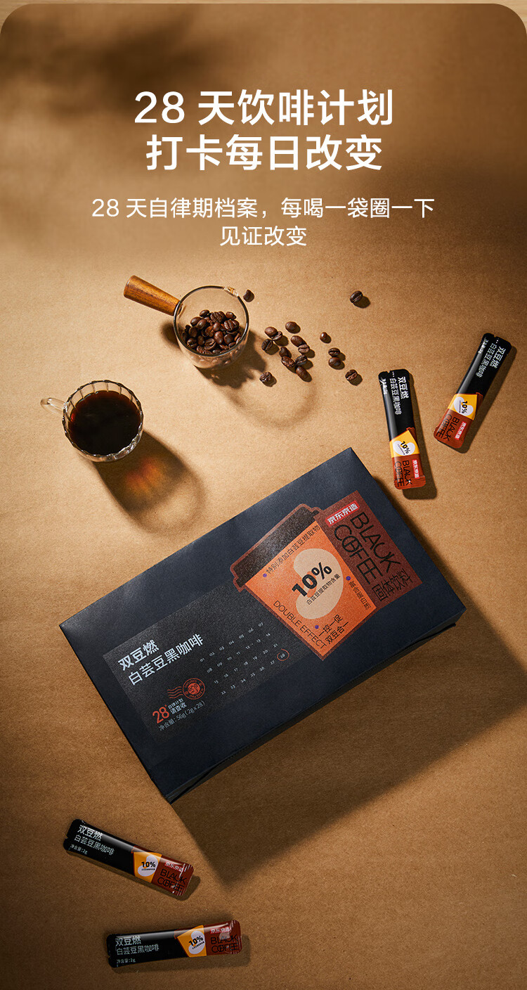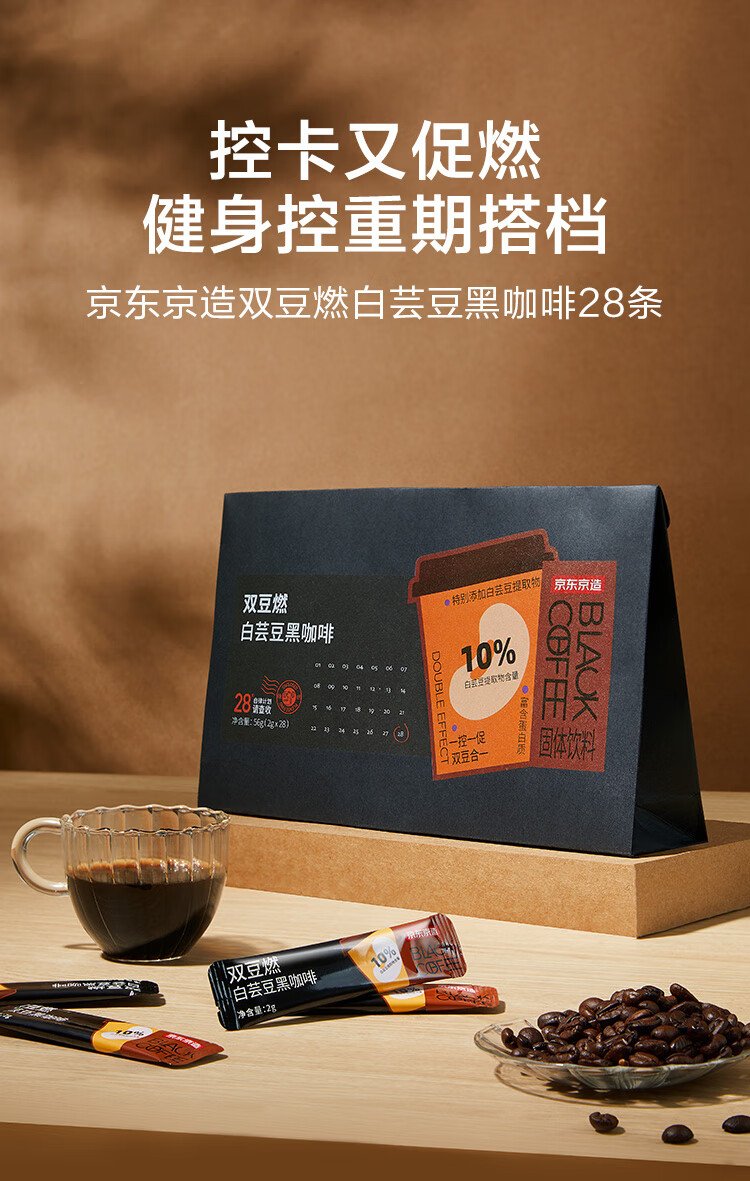京东京造 白芸豆黑咖啡0蔗糖0脂2g*28条速溶美式咖啡运动健身碳水阻碍燃减