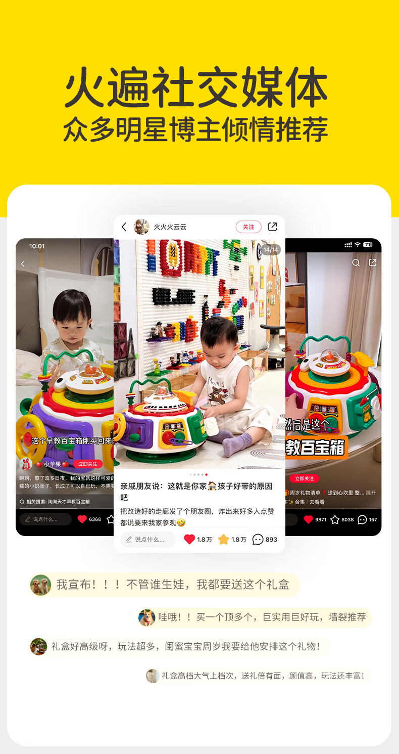 淘淘天才早教百宝箱婴儿玩具游戏桌宝宝六面体益智儿童1-3岁周岁礼物新年2