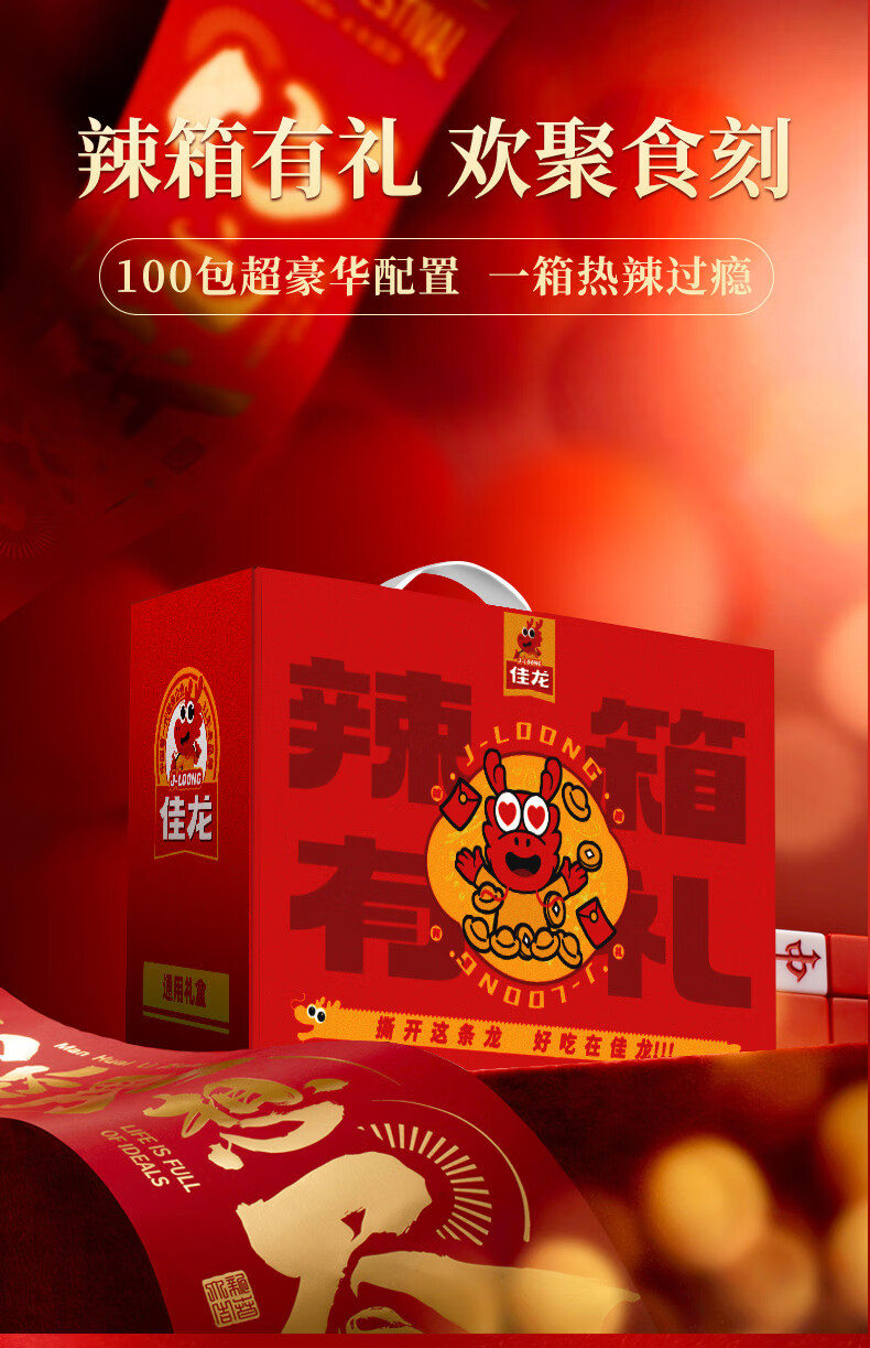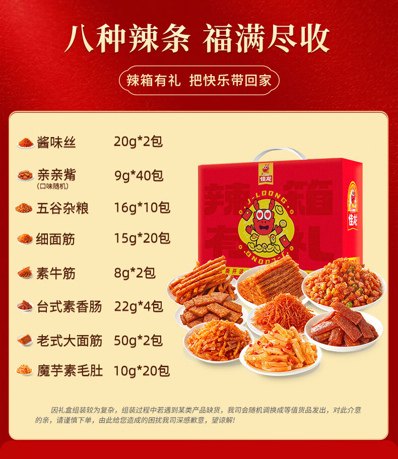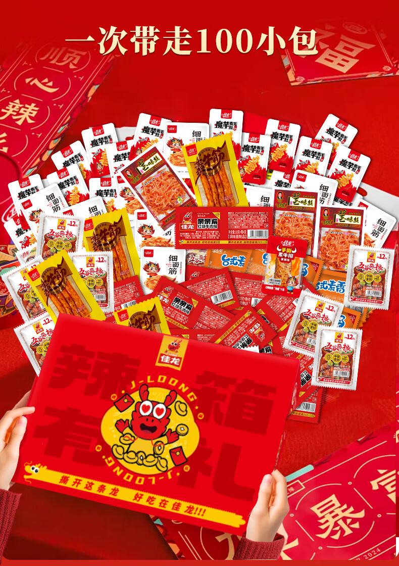 佳龙辣条零食大礼包儿时经典味道五谷杂粮解馋休闲小吃年货节送礼礼盒 佳龙辣箱有礼年货节礼盒【内含100包约1264g】
