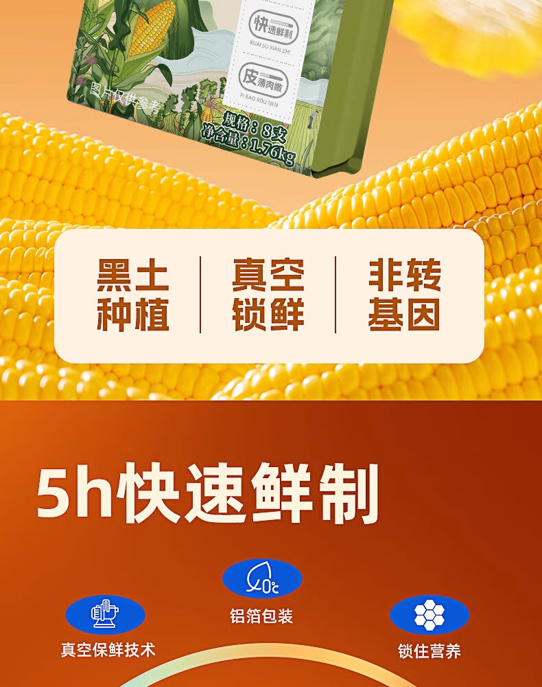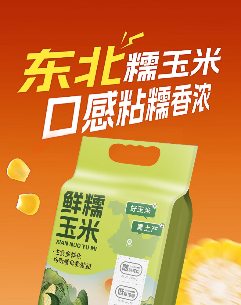 邹有才东北黄甜糯玉米棒2025年新货低脂粗粮礼盒代餐黏苞米早餐 金色铝箔东北黄糯玉米1.76kg(8支)