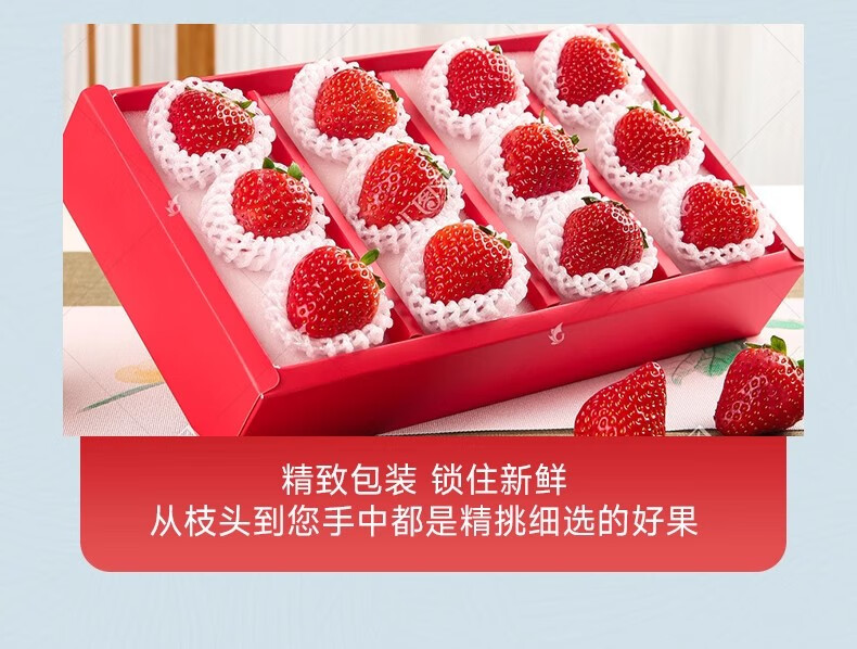 静羽红颜草莓【JD/顺丰多地次日达】非丹东99奶油大草莓水果礼盒年货 4盒礼盒装【热销爆款-臻选好果型】净重2.2斤 6A级丨单果12-15g