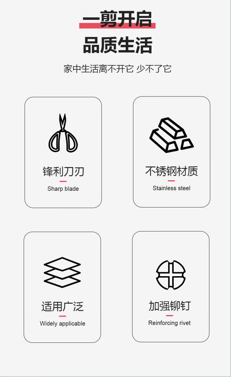 不锈钢家用剪刀强力厨房剪肉多功能裁缝剪学生手工美工大剪子 【小号】不锈钢家用剪刀