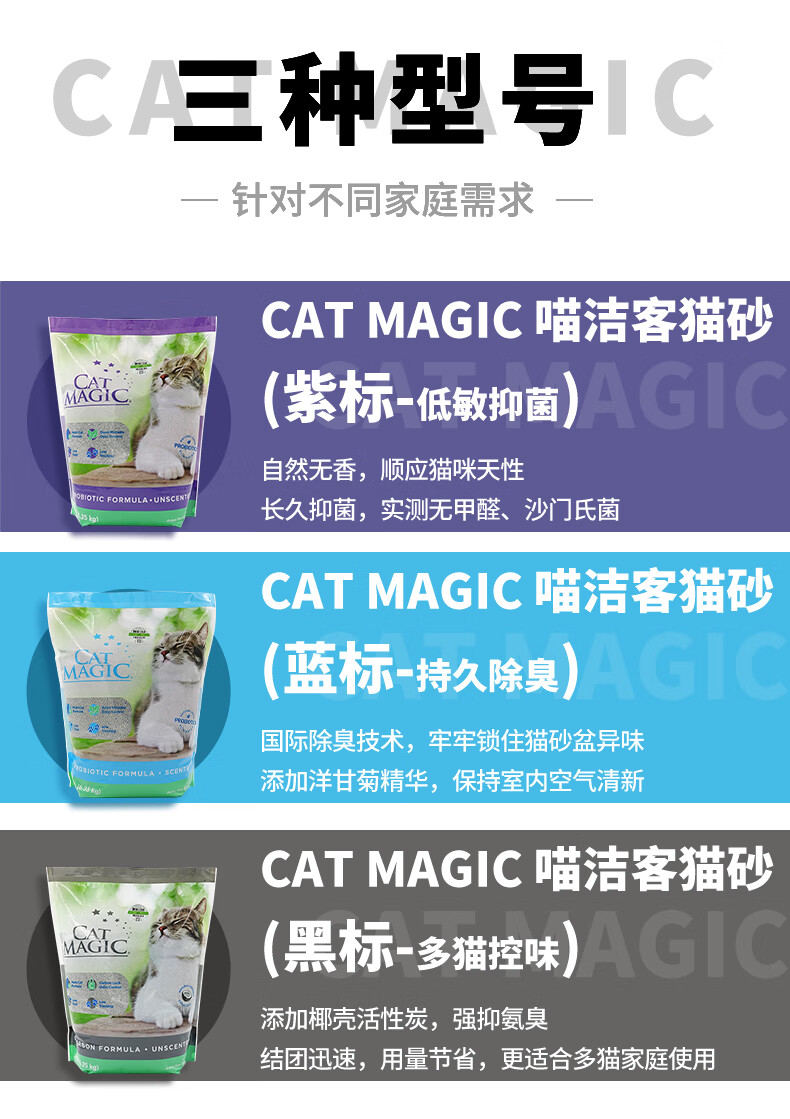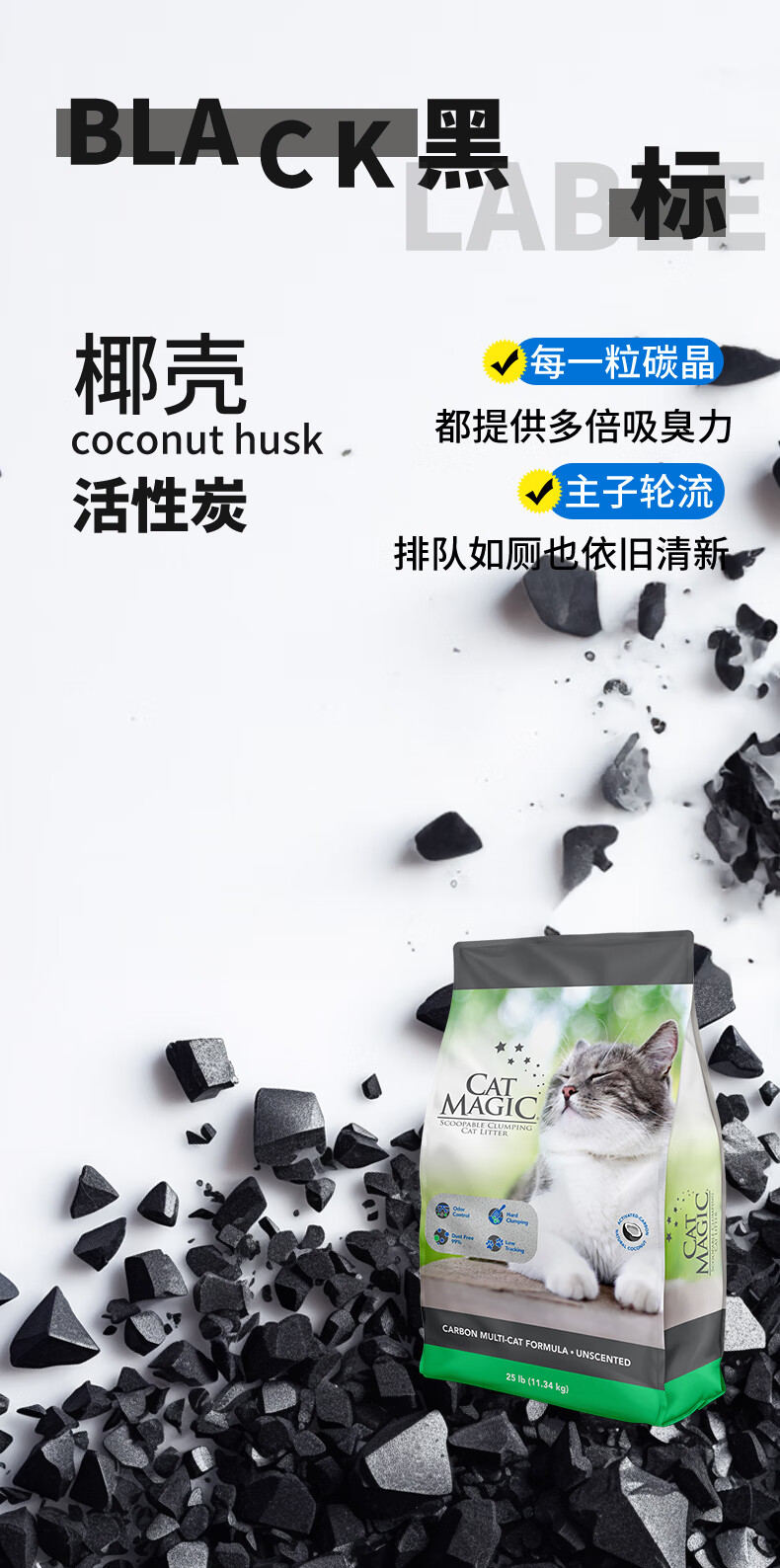 喵洁客(CAT MAGIC)猫砂美国原装进口矿砂钠基矿石抗菌去氨膨润土活性炭黑标42磅