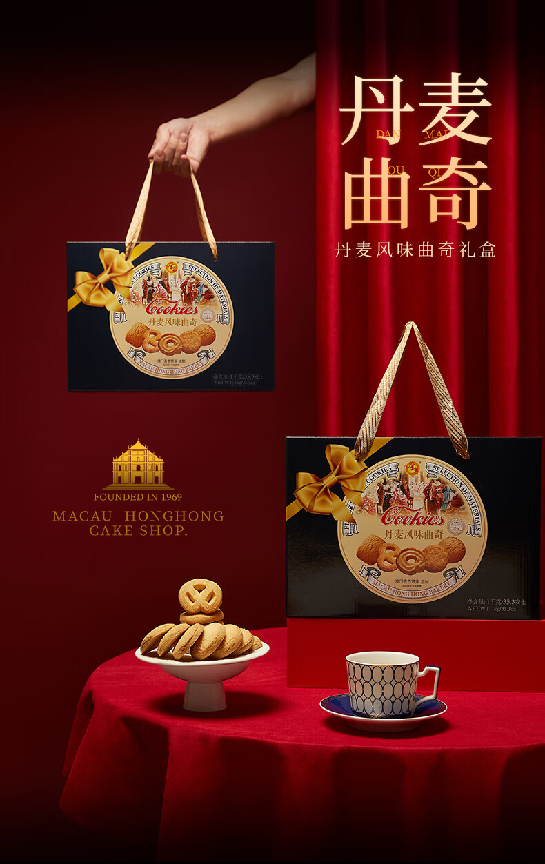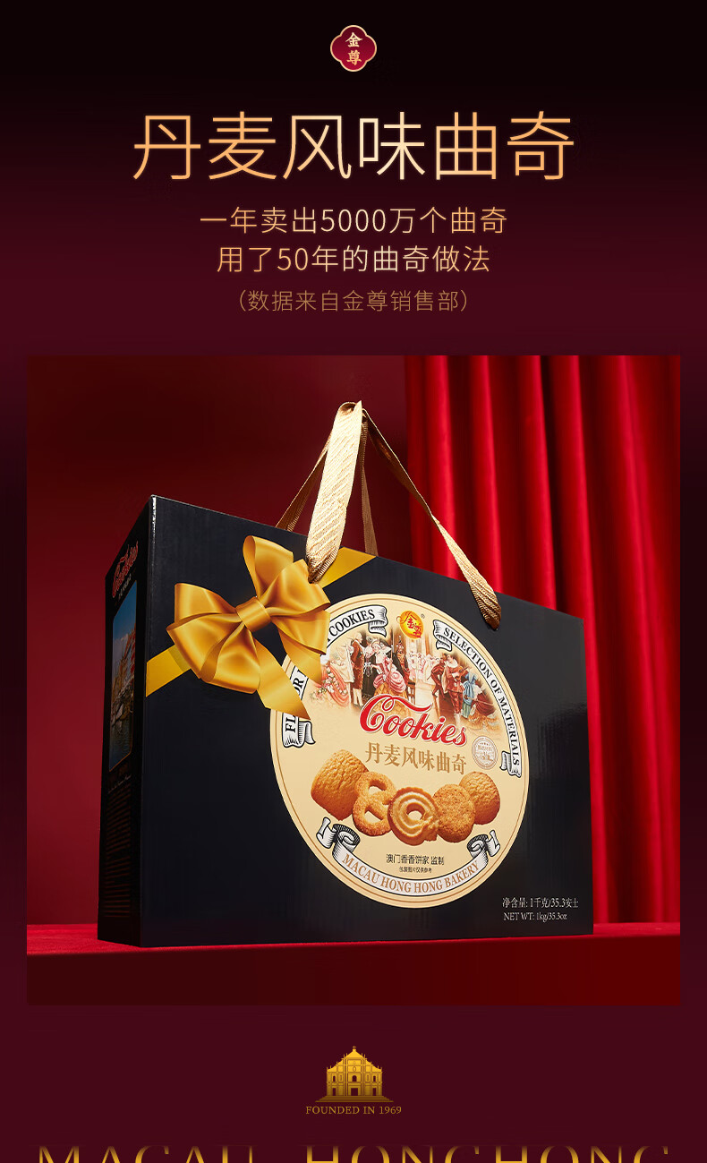 金尊丹麦风味曲奇饼干年货礼盒品休闲零食澳门手信特产独立包1000g