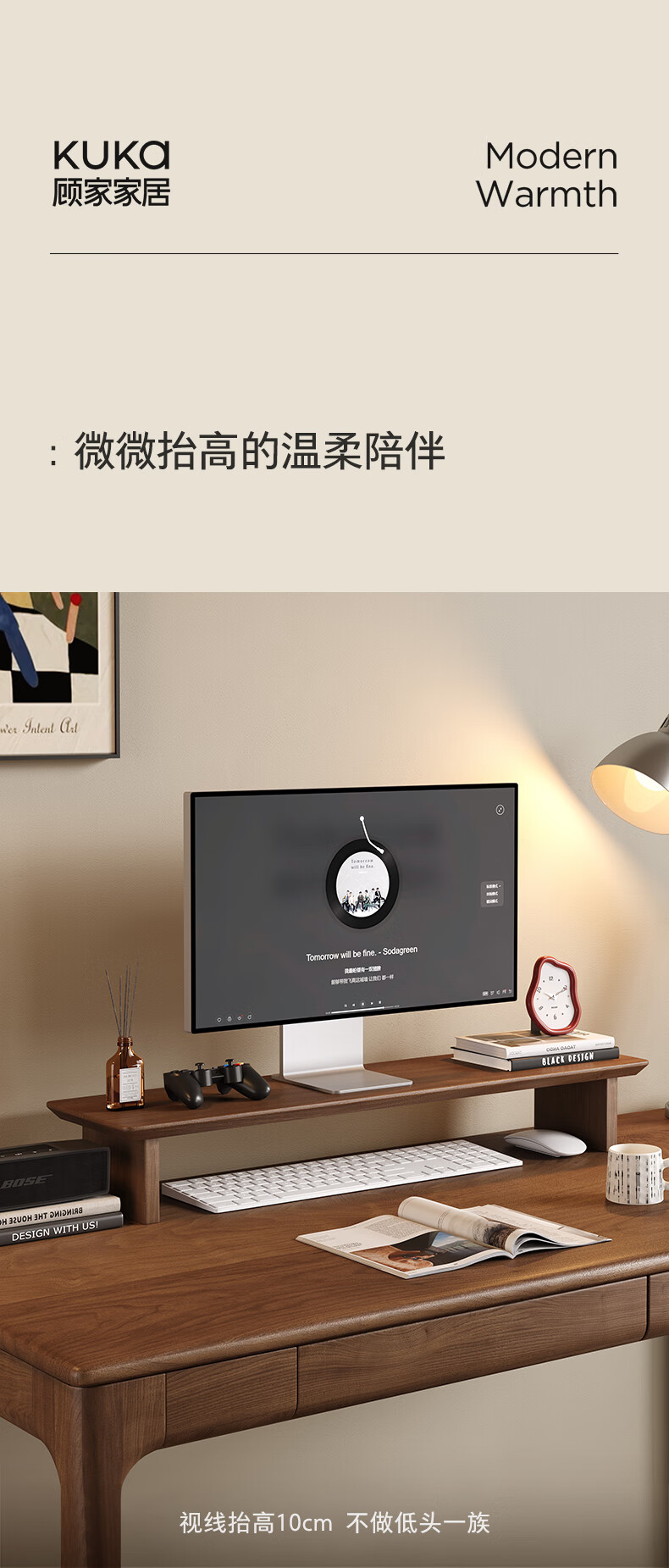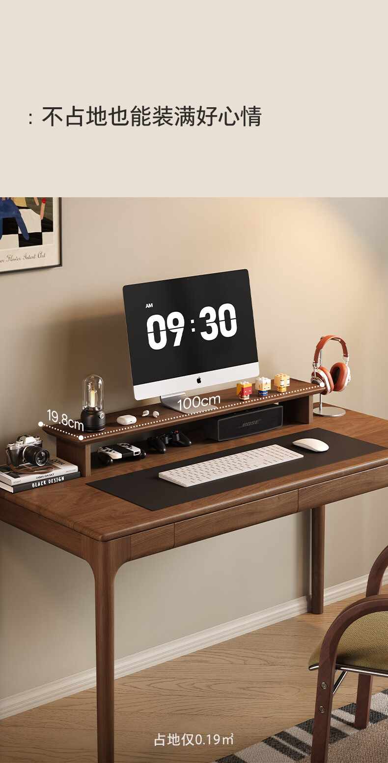 顾家家居显示器增高架办公桌置物架桌面搁板实木收纳托架电脑桌面支撑架子 FAS级橡胶木【原木色】80CM
