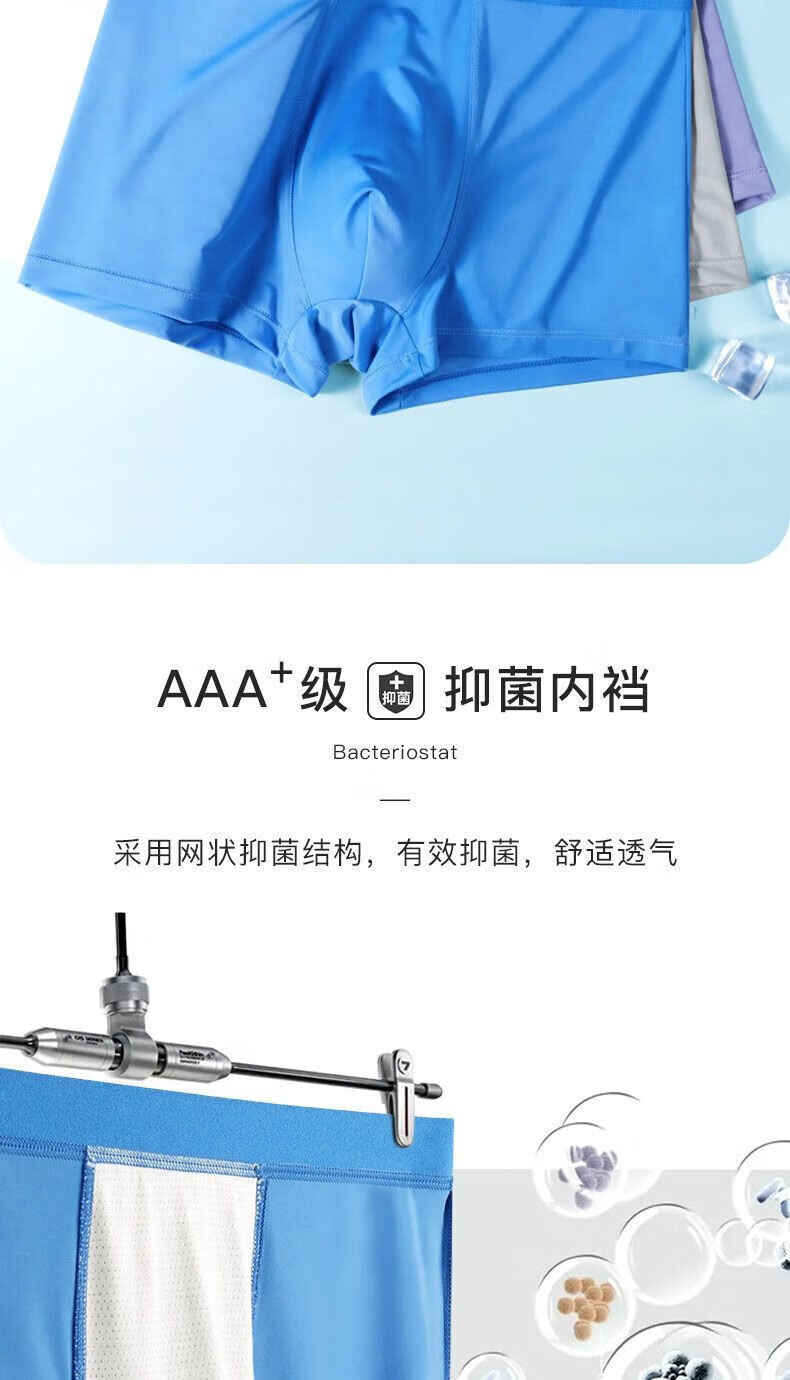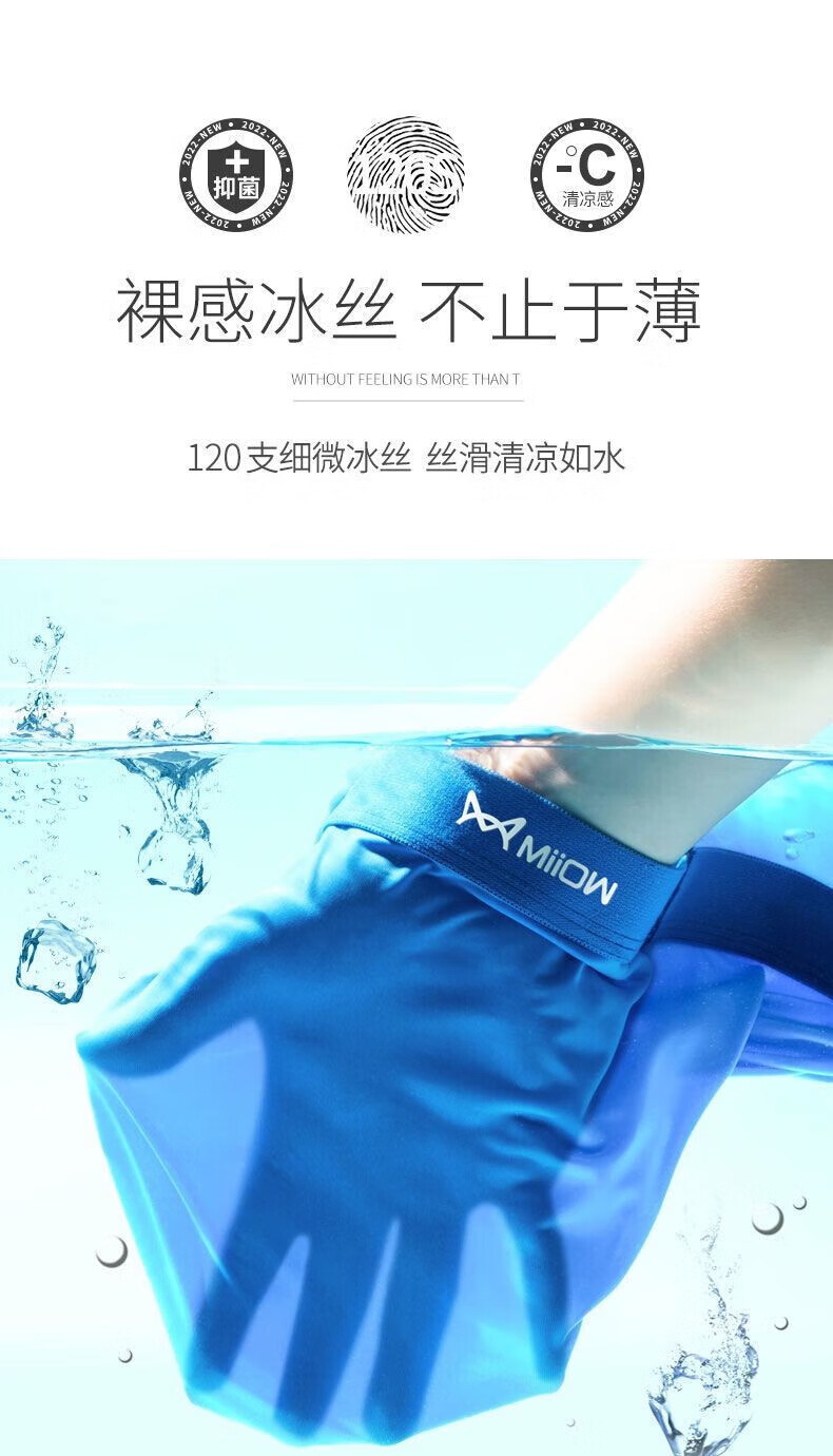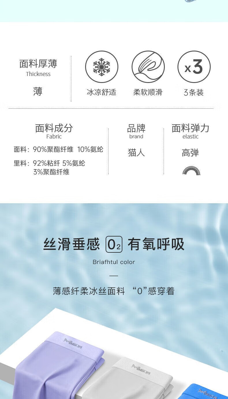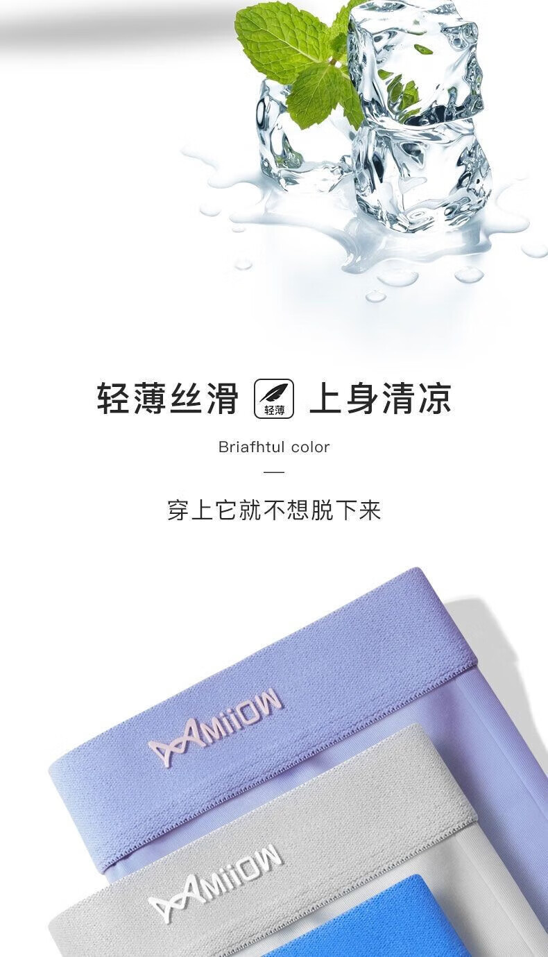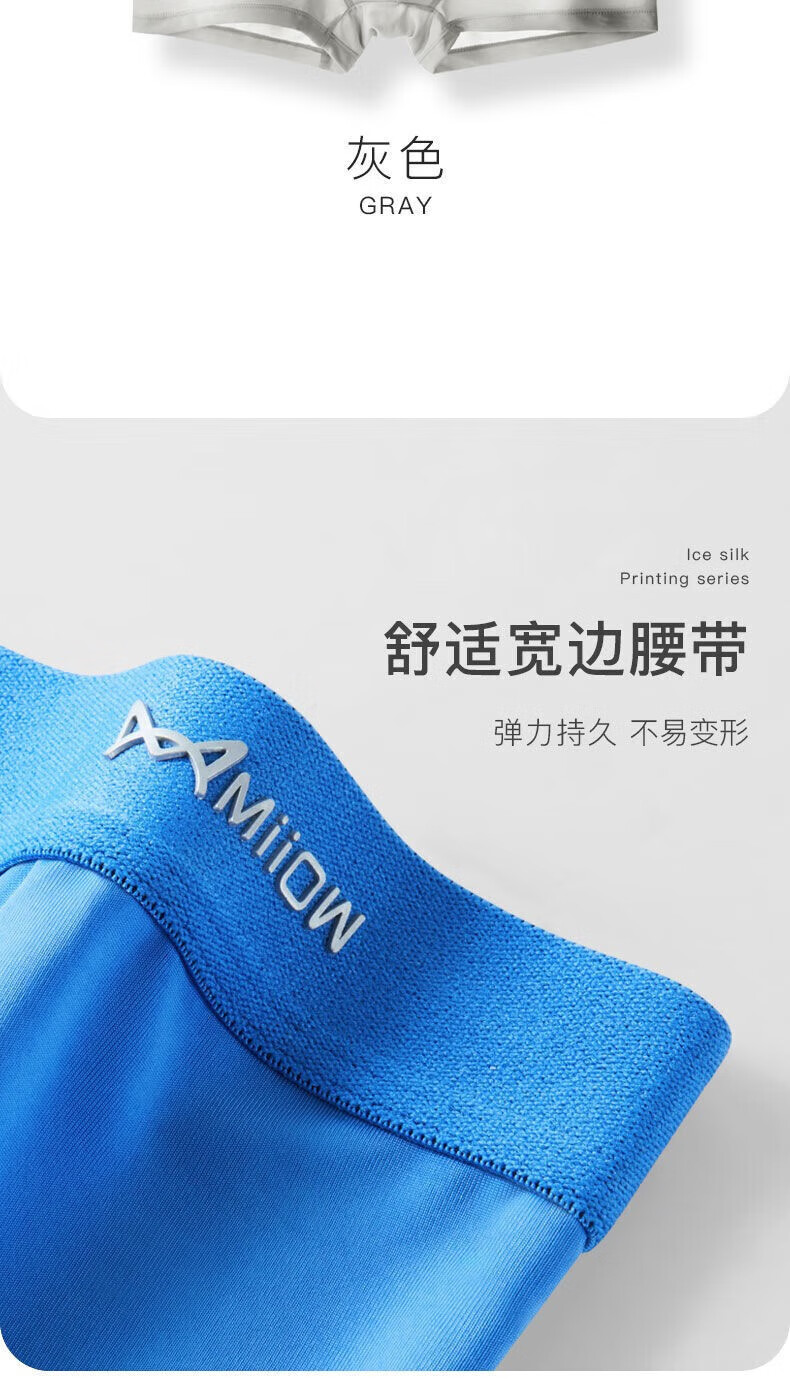 猫人(MiiOW)男士内裤男冰丝抗菌内档平角裤头透气大码短裤裤衩 浅灰+浅蓝+浅绿(无痕冰丝款) 3条 XL
