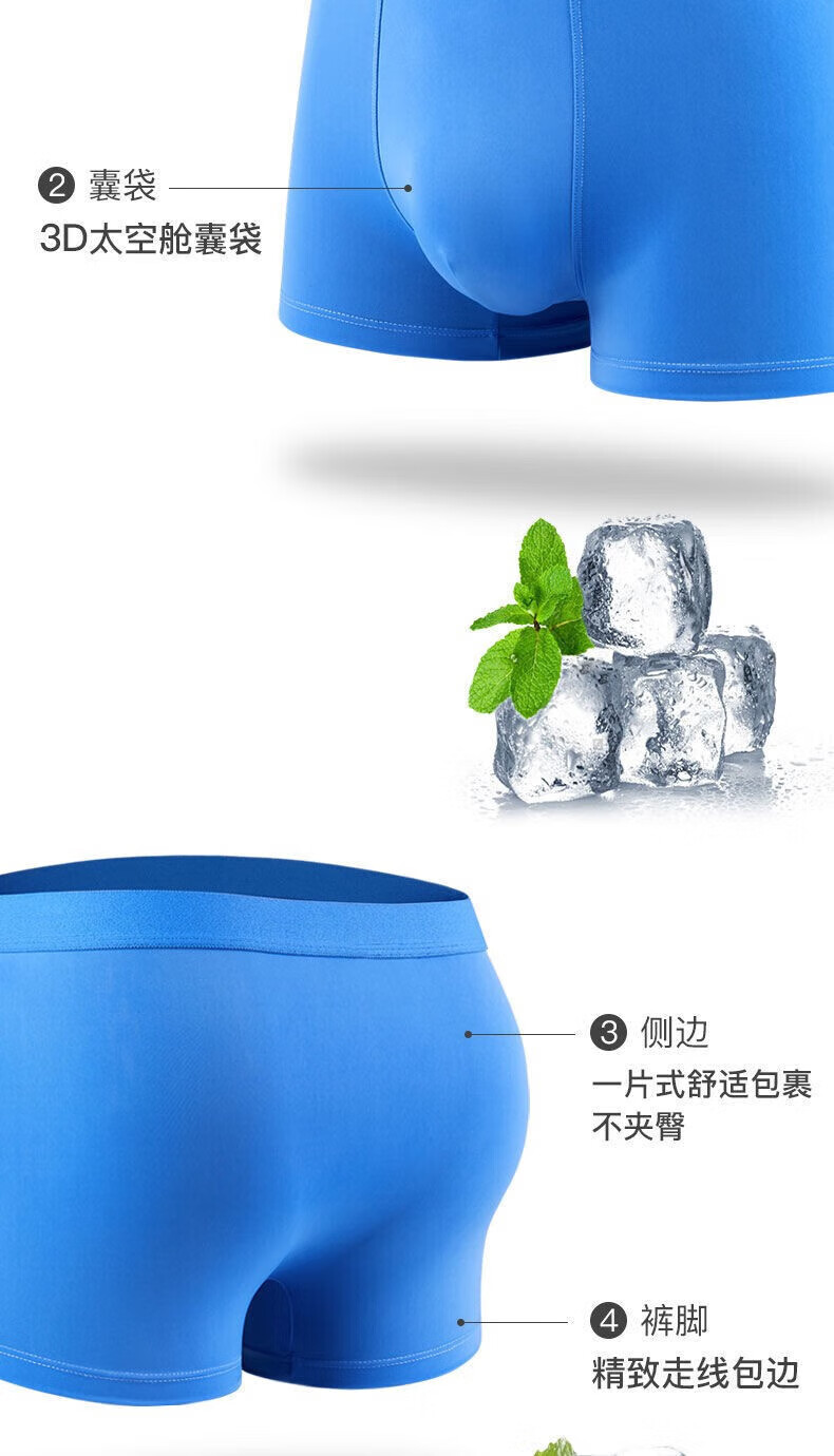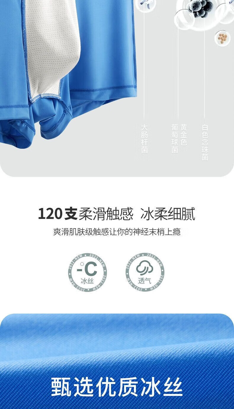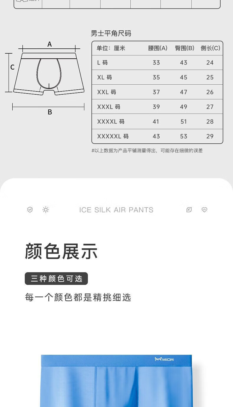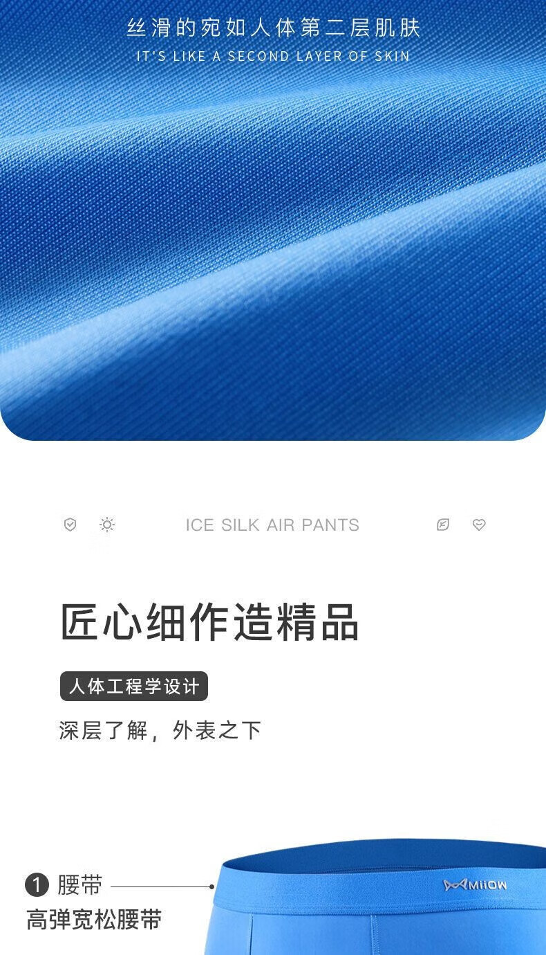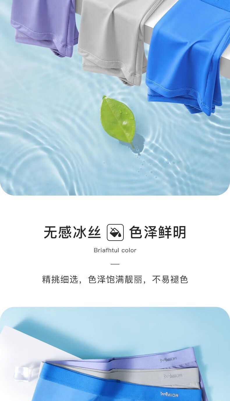 猫人(MiiOW)男士内裤男冰丝抗菌内档平角裤头透气大码短裤裤衩 浅灰+浅蓝+浅绿(无痕冰丝款) 3条 XL