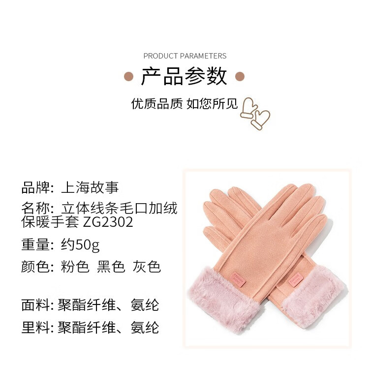 达芬奇密码 手套冬天女加绒加厚保暖学生女士骑行防寒开车防冻可触屏 毛口灰色