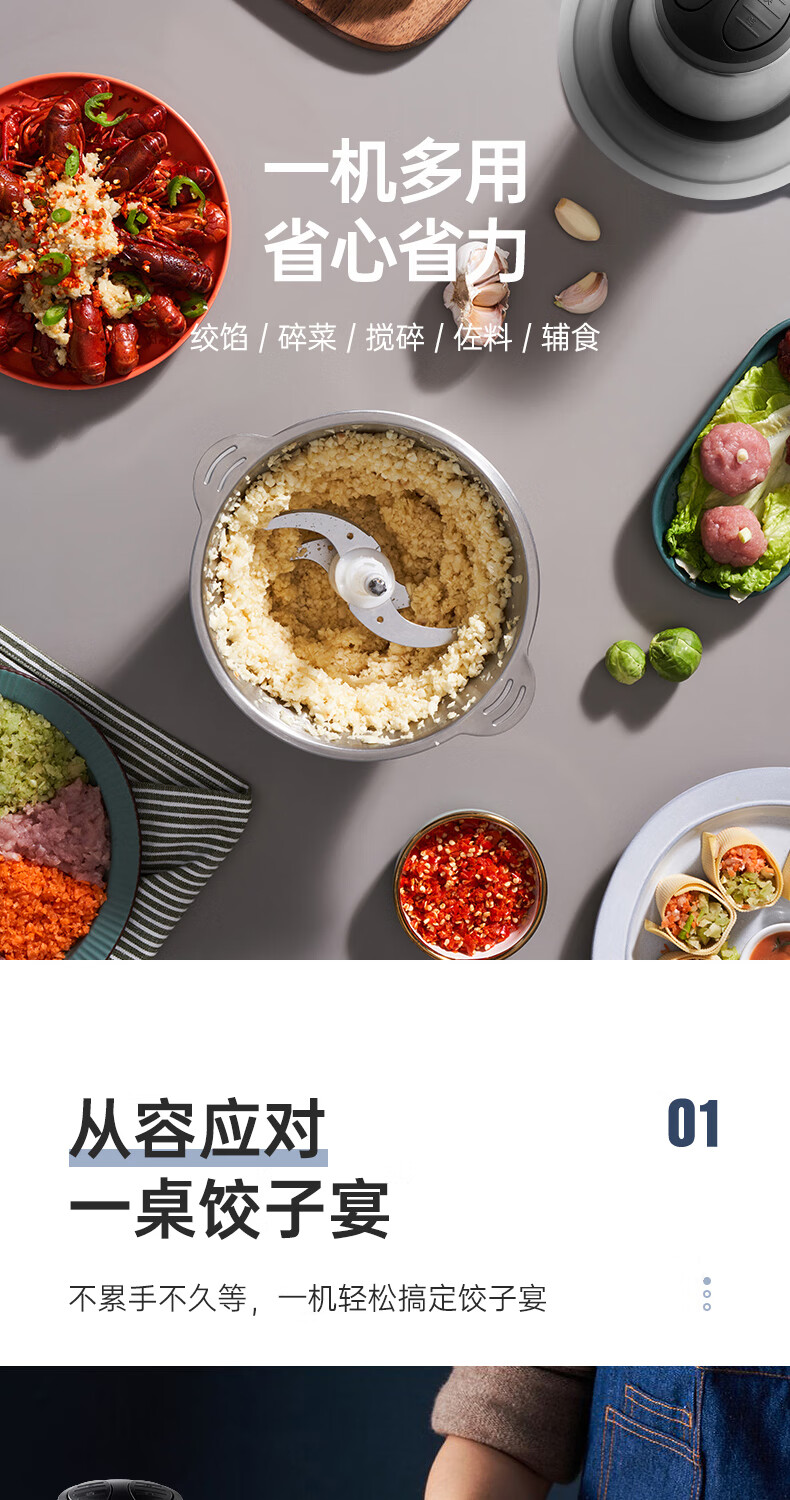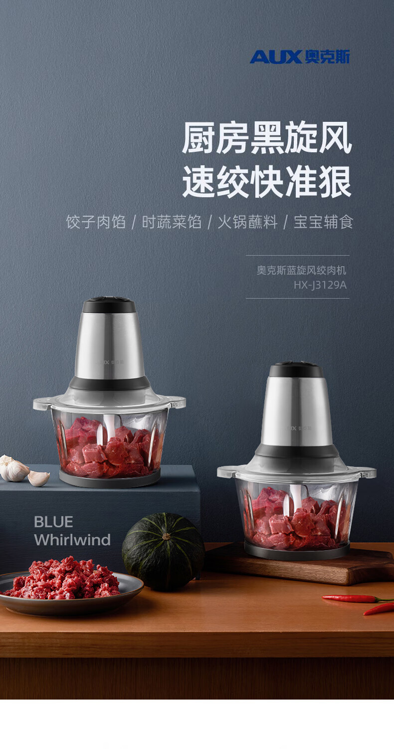 奥克斯家用绞肉机电动大容量多能料理机 绞馅机碎肉搅肉机切菜辅食搅拌机HX-J3129A