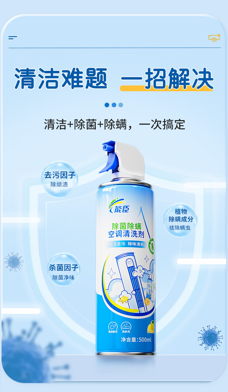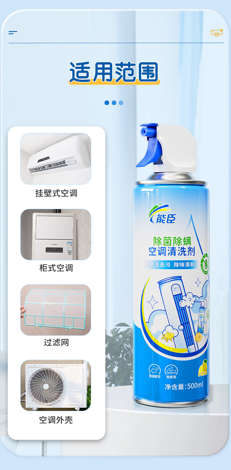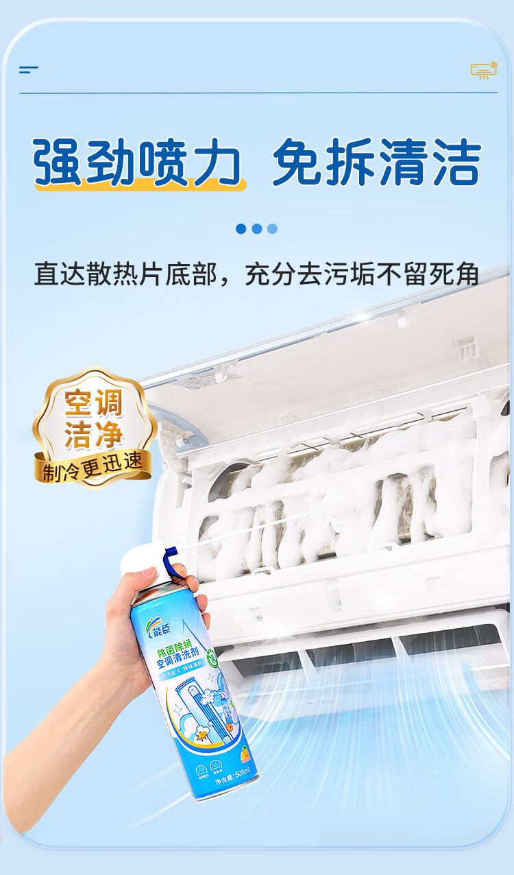 能臣空调清洗剂免拆洗除菌除螨家用挂机柜机免拆洗空调清洁剂强力去污 500ml*2瓶
