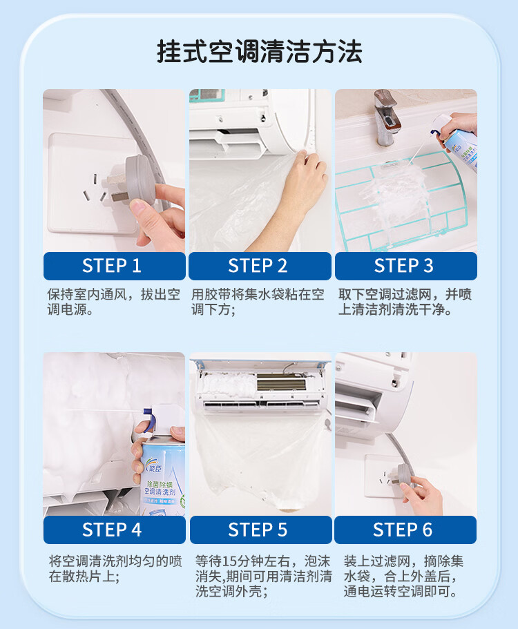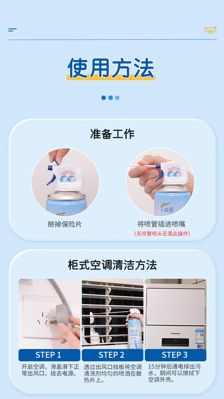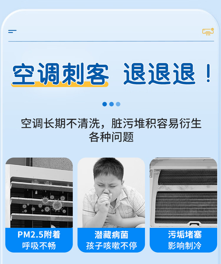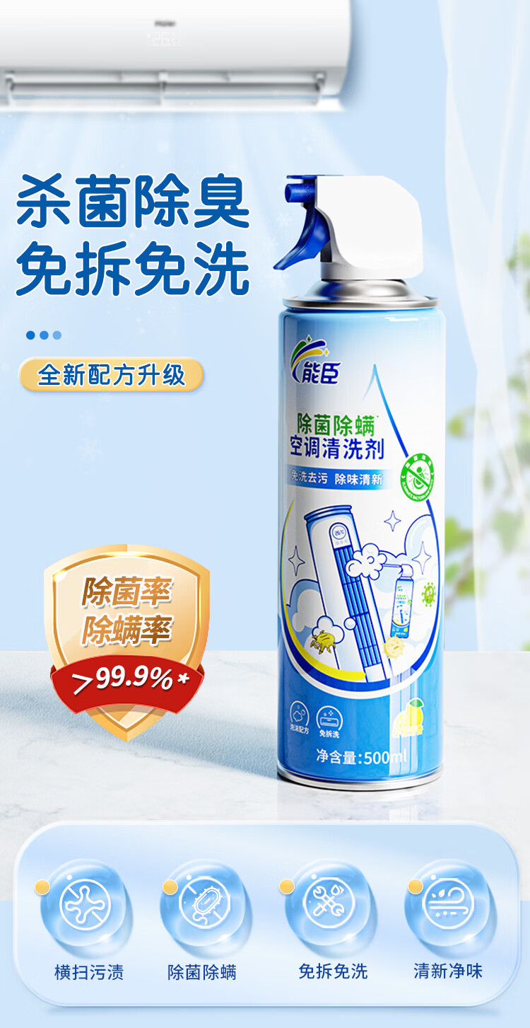 能臣空调清洗剂免拆洗除菌除螨家用挂机柜机免拆洗空调清洁剂强力去污 500ml*2瓶