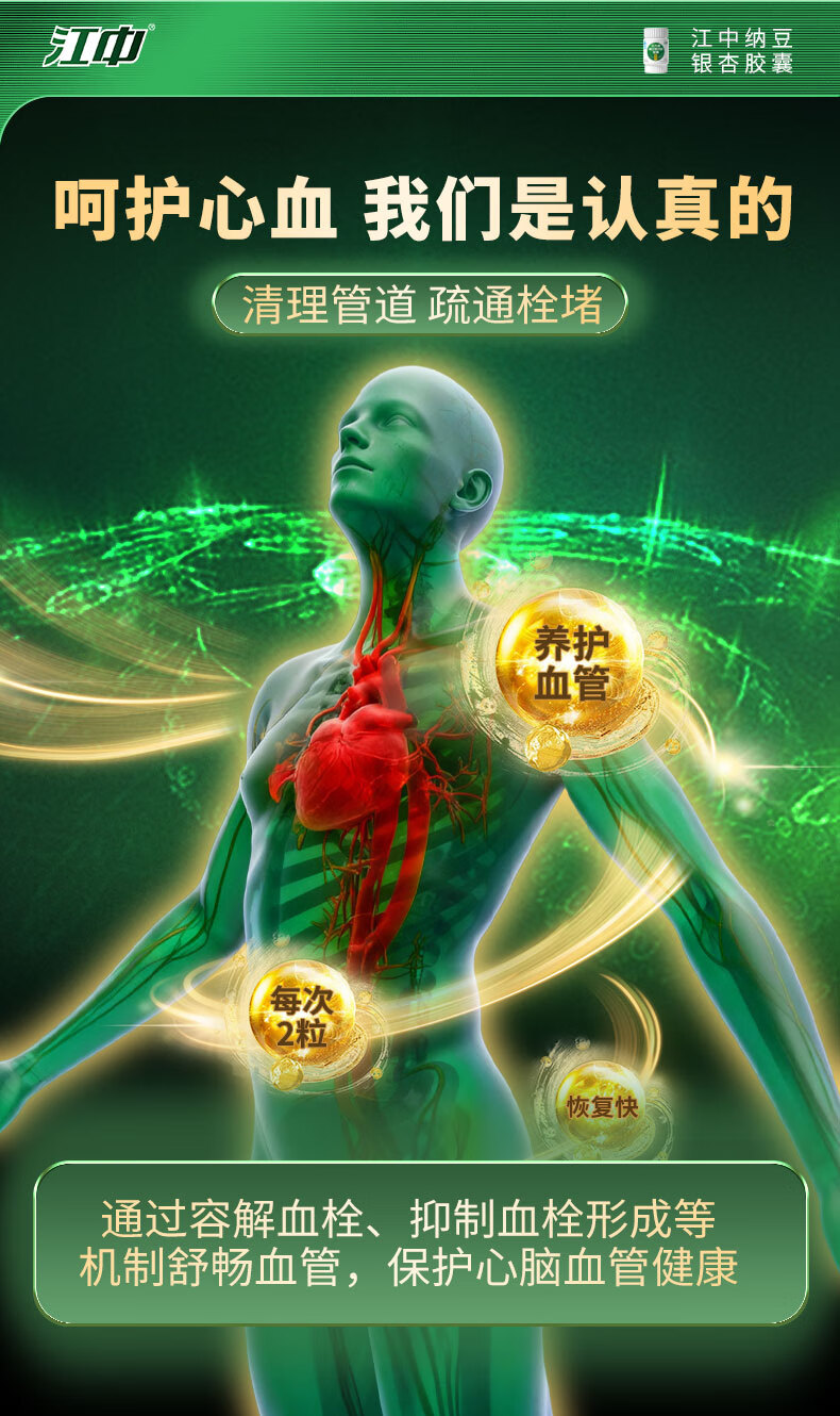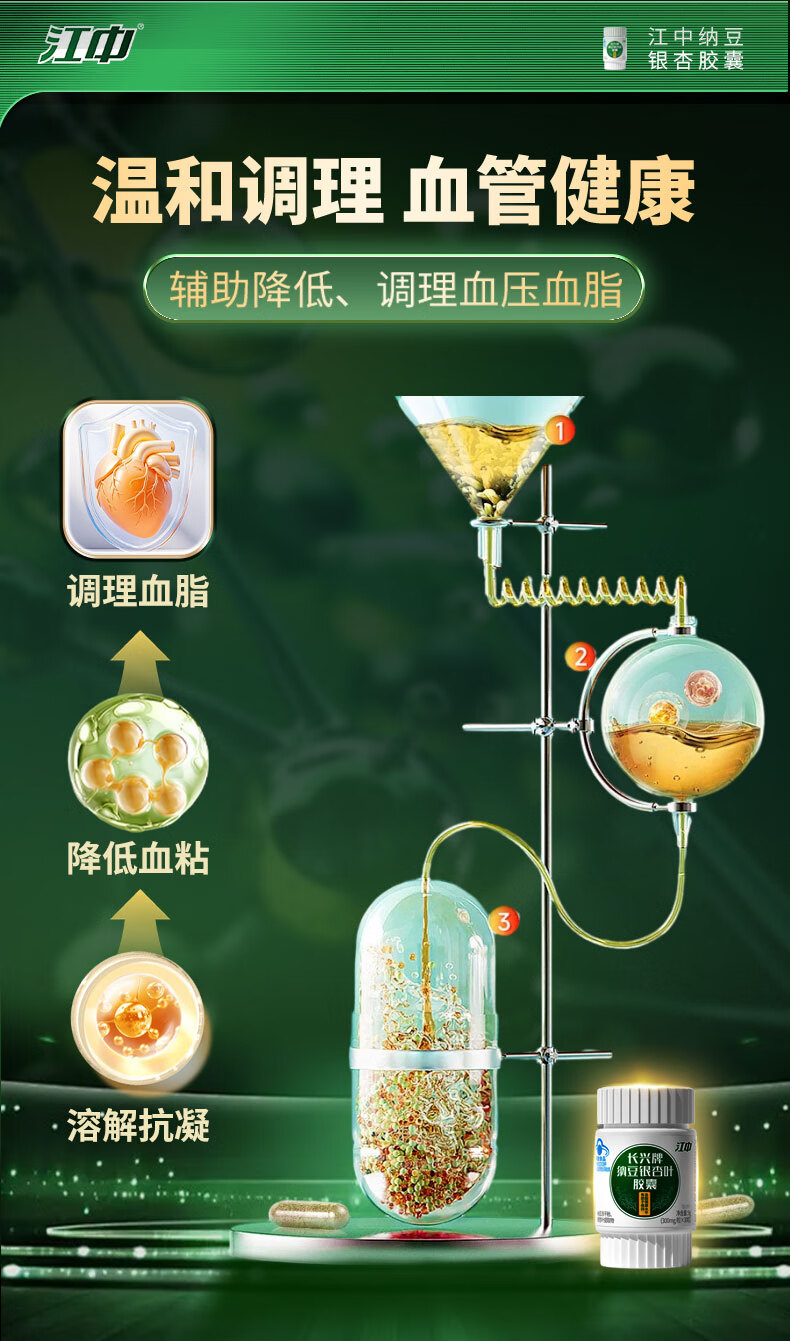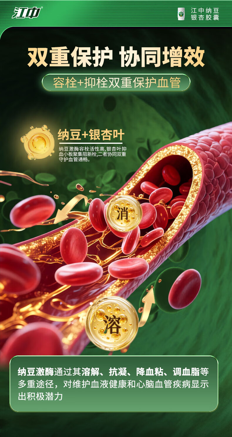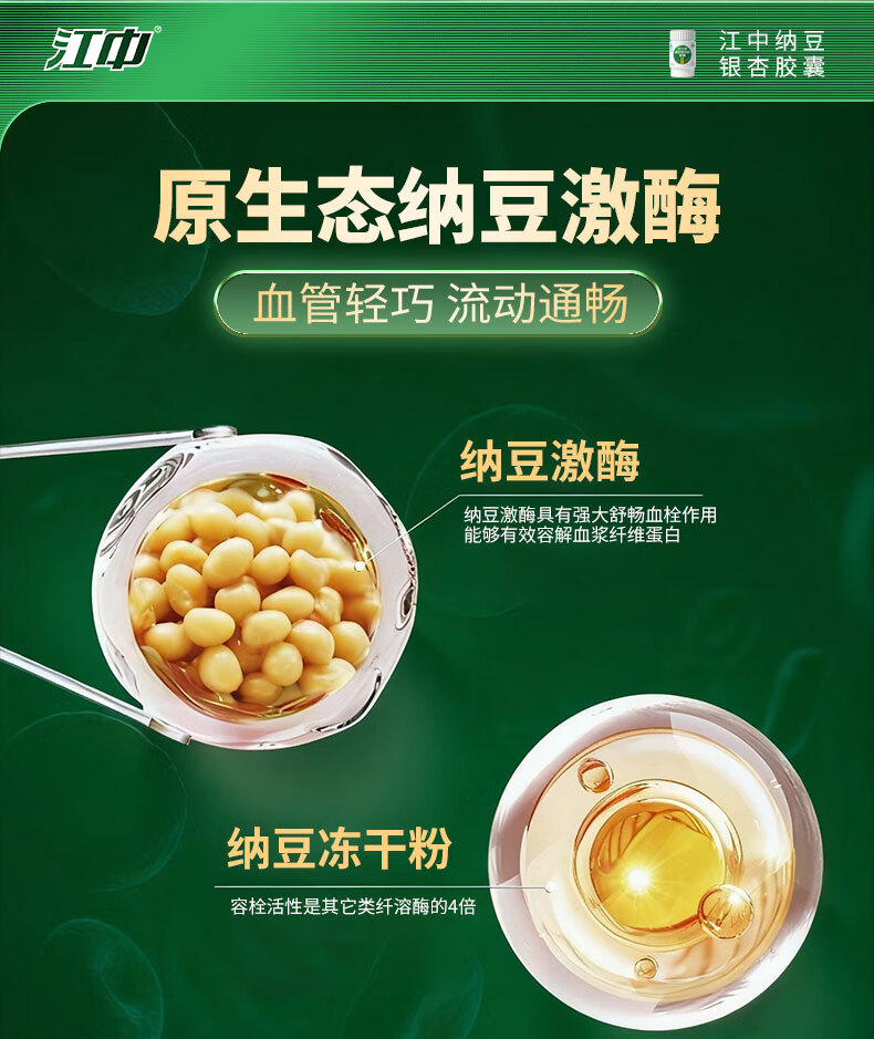 江中纳豆激酶银杏叶胶囊30粒 辅助降血脂中老年 三高心脑血管保健品