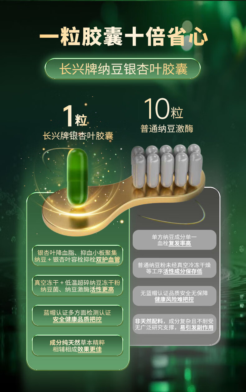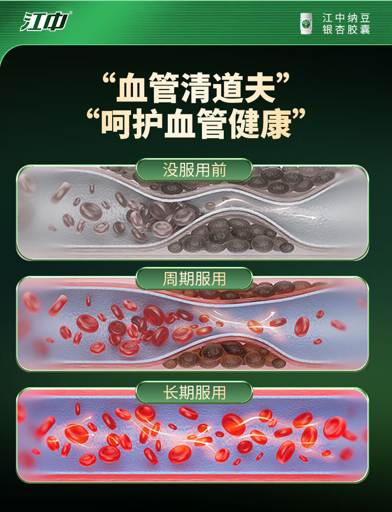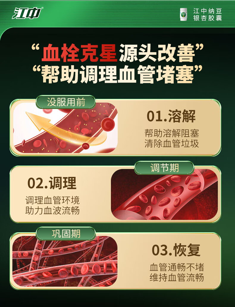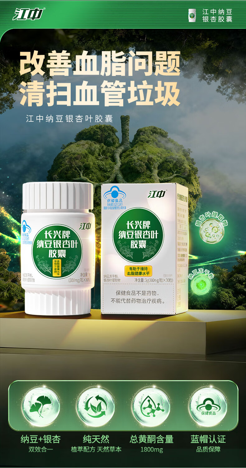 江中纳豆激酶银杏叶胶囊30粒 辅助降血脂中老年 三高心脑血管保健品