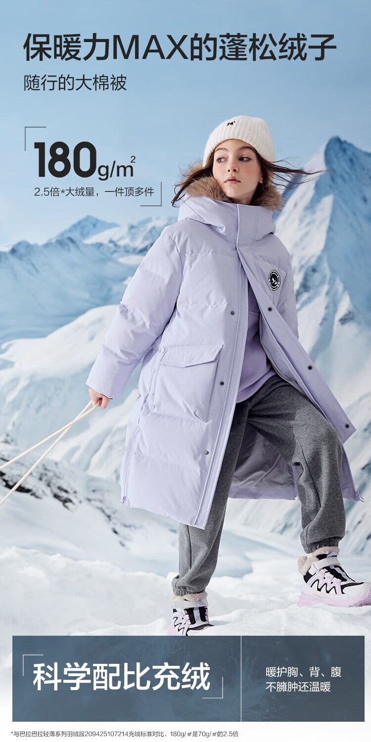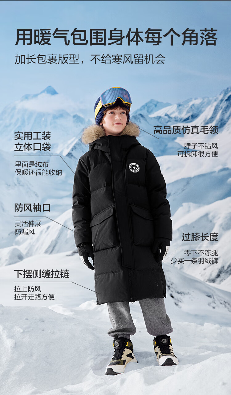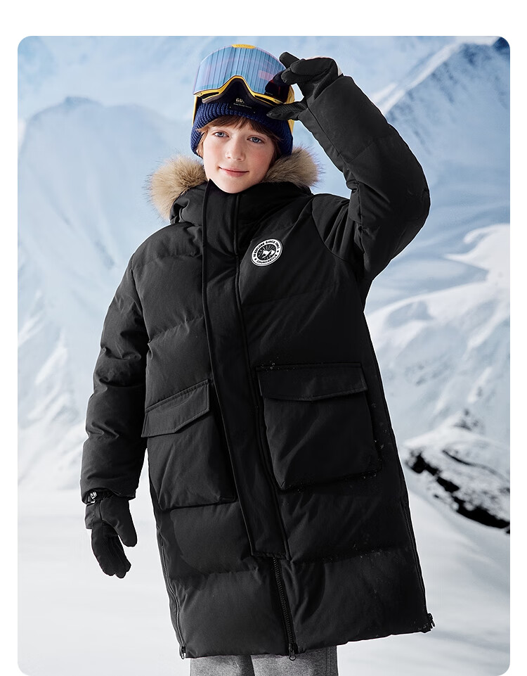 巴拉巴拉童装儿童羽绒服男女童2025新款冬季加厚保暖长款外套宝宝上衣男宝 黑色90001-灰鸭绒 165 (充绒量274g)