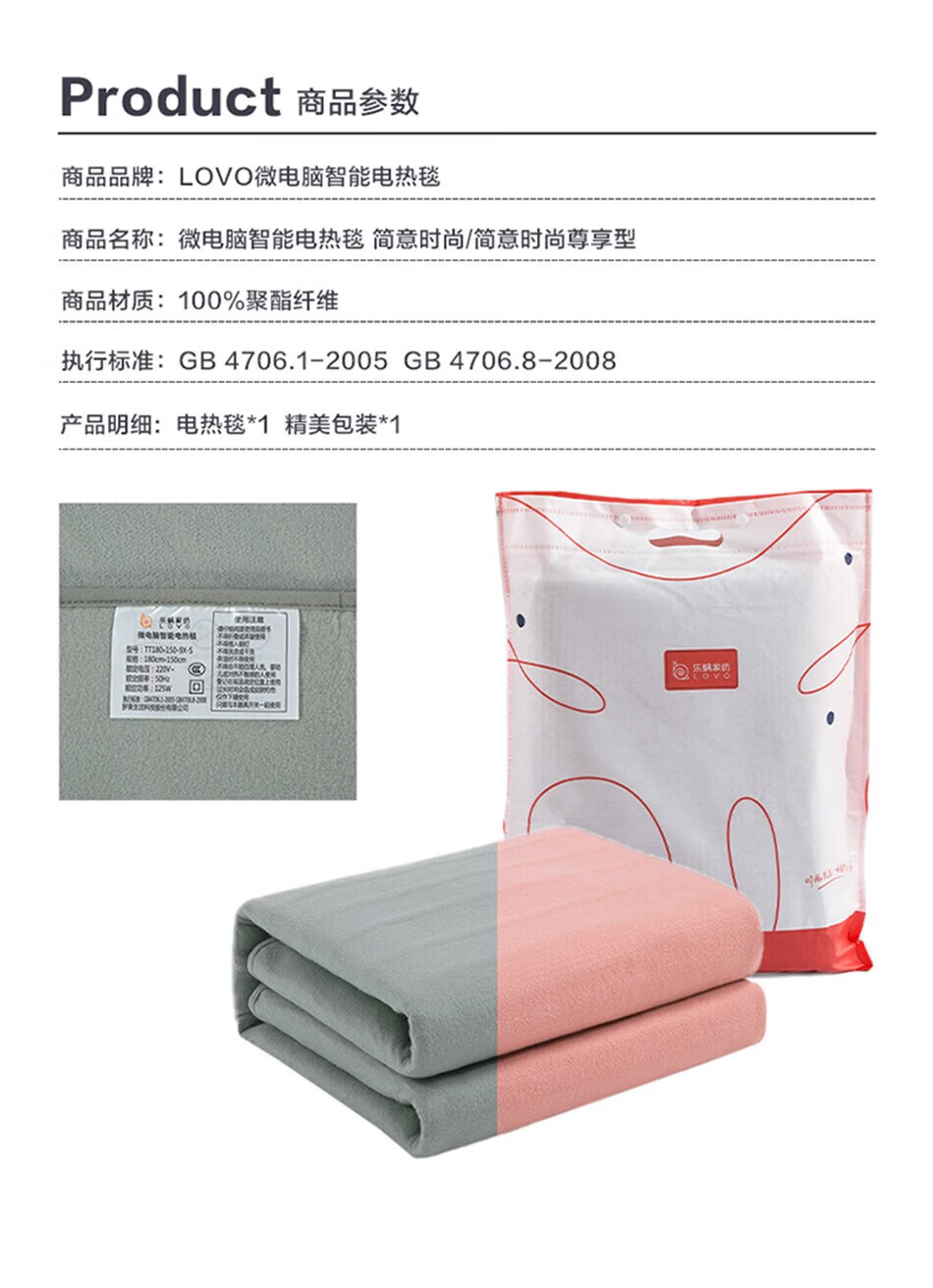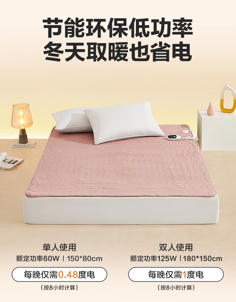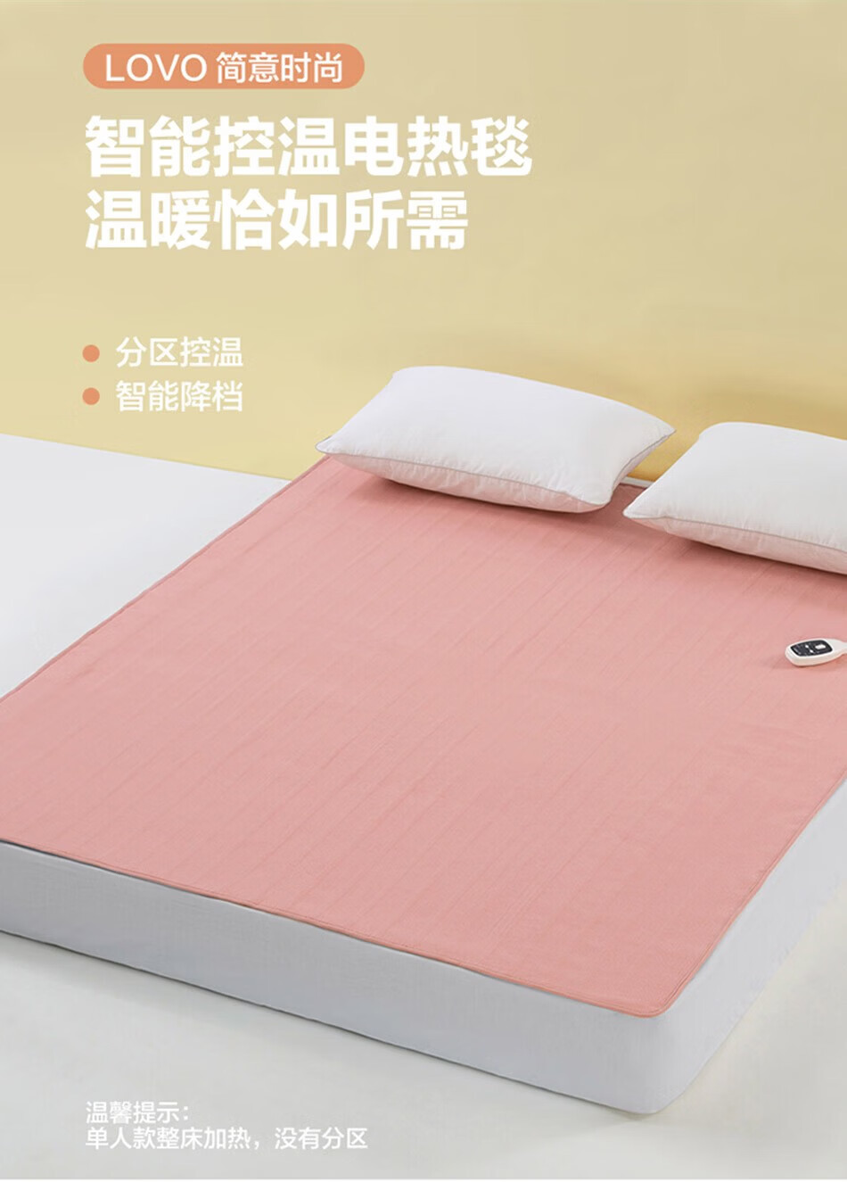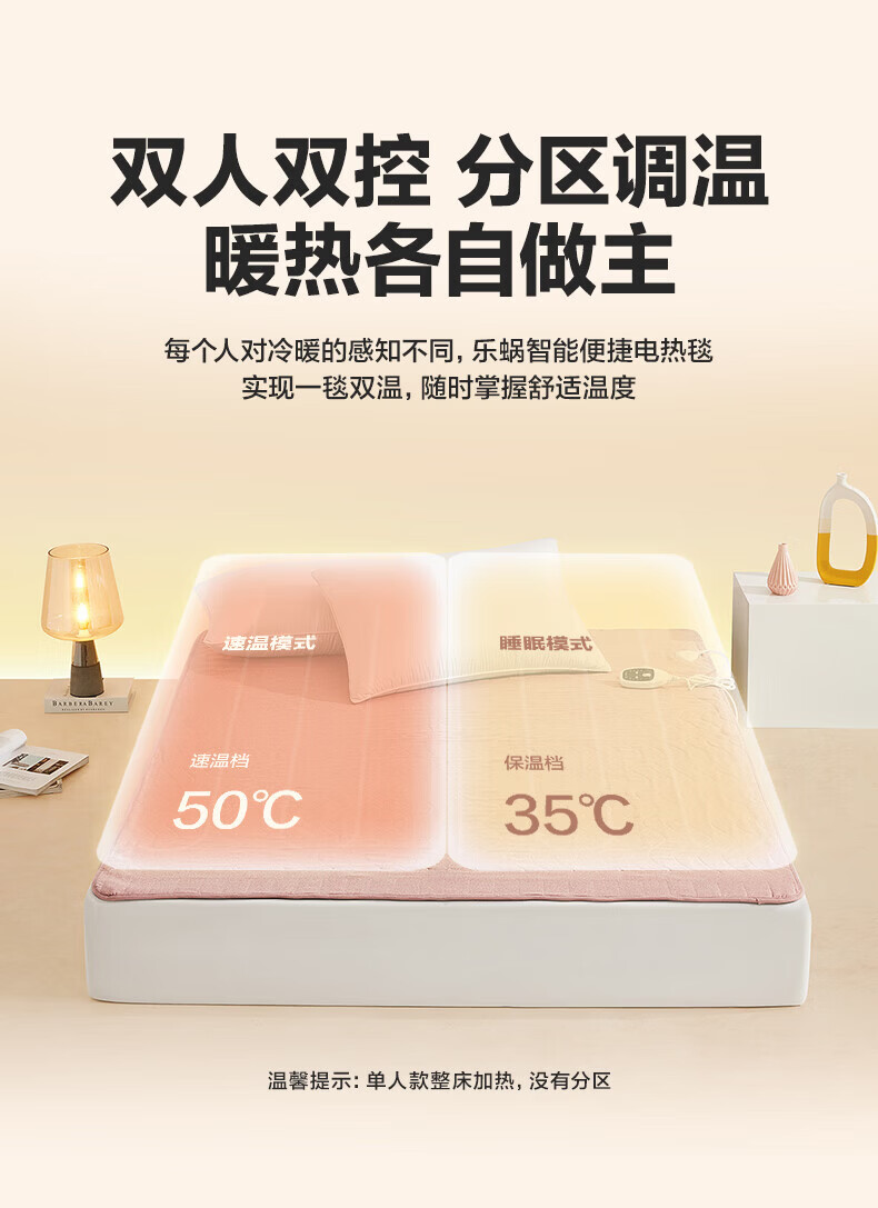 LOVO罗莱生活 微电脑智能电热毯安全双人单人冬季保暖智能控温电热毯 【智能双控+烘被除螨】凡尔之镜-粉 【单人】150*70cm