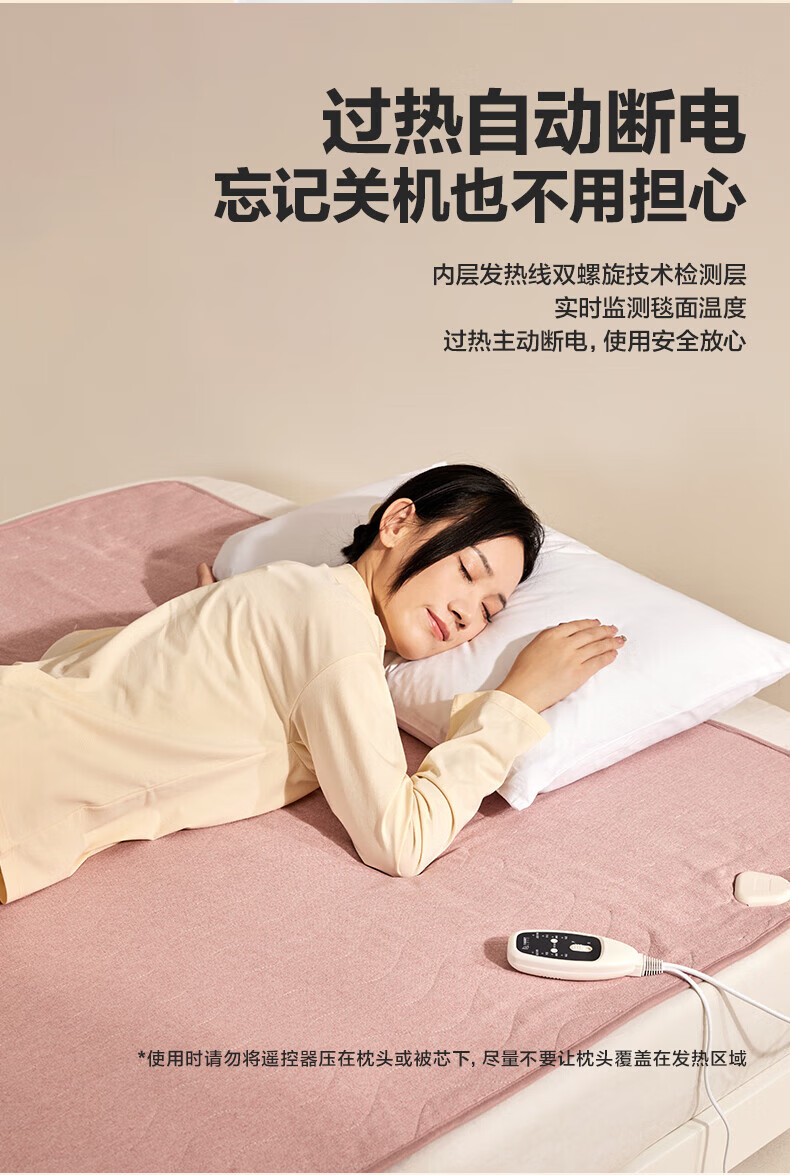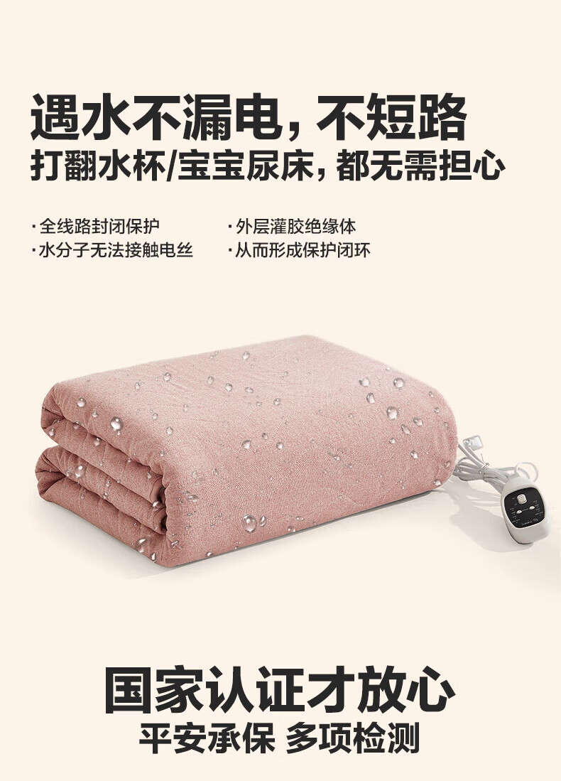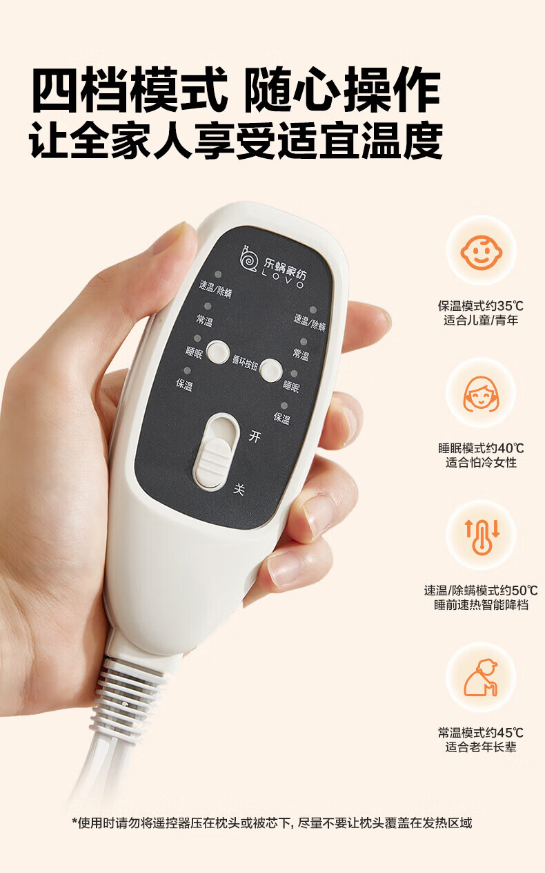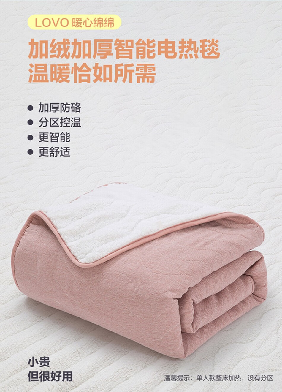 LOVO罗莱生活 微电脑智能电热毯安全双人单人冬季保暖智能控温电热毯 【智能双控+烘被除螨】凡尔之镜-粉 【单人】150*70cm