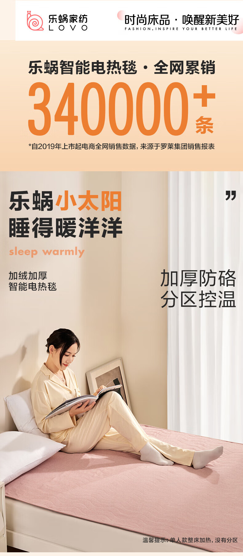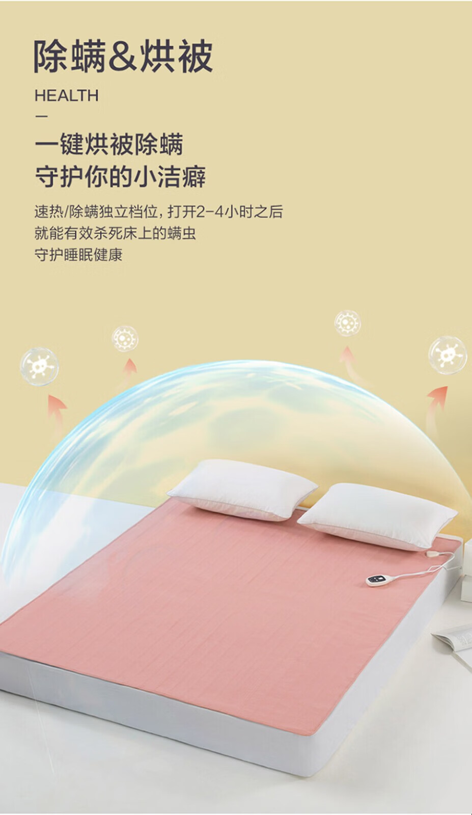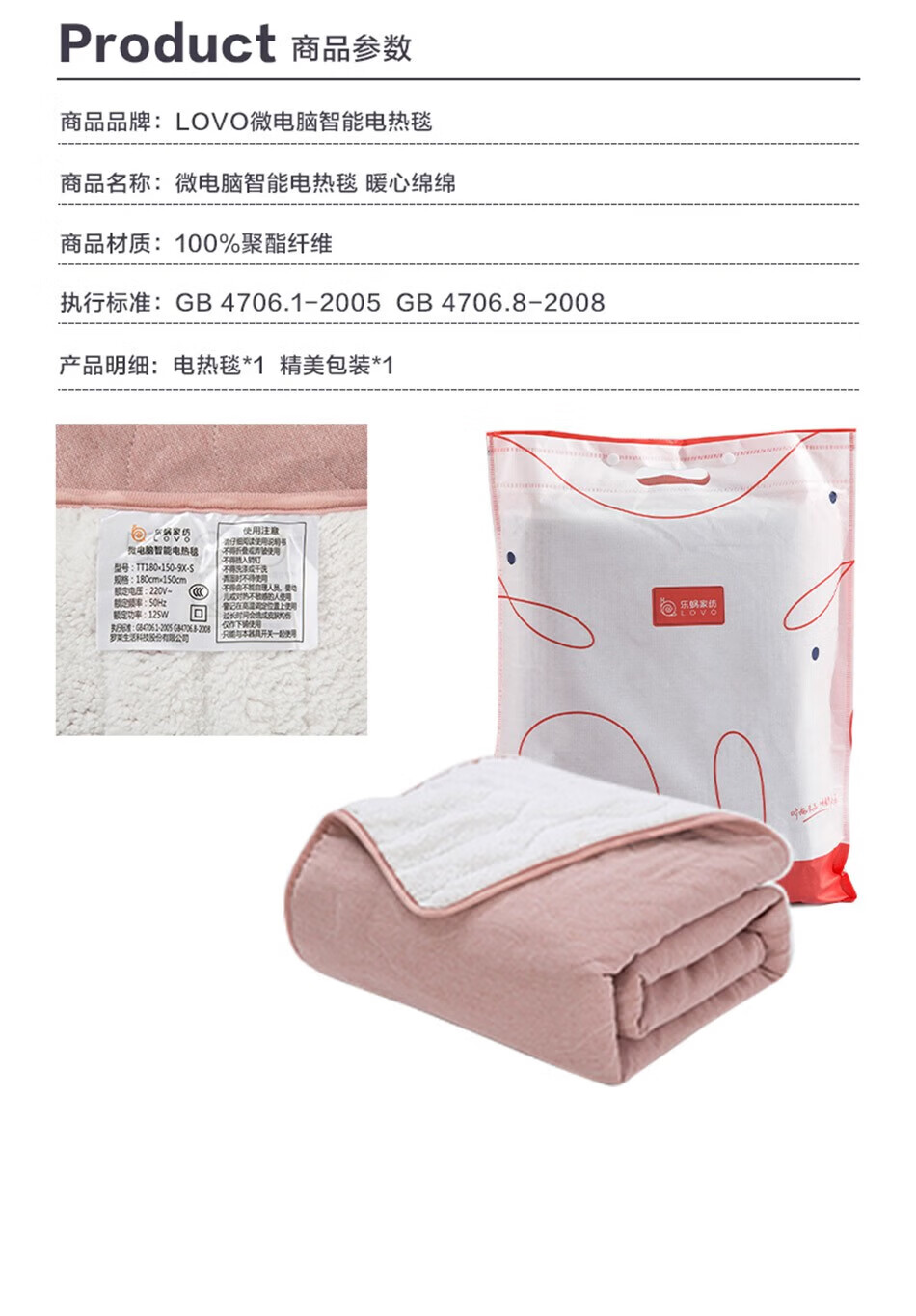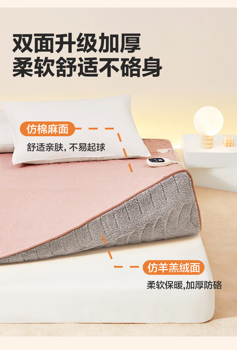 LOVO罗莱生活 微电脑智能电热毯安全双人单人冬季保暖智能控温电热毯 【智能双控+烘被除螨】凡尔之镜-粉 【单人】150*70cm