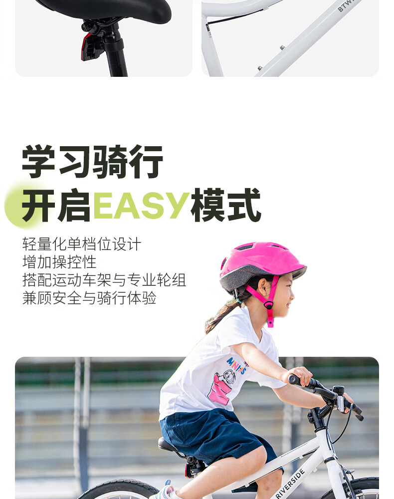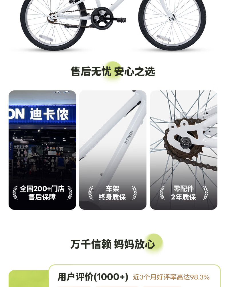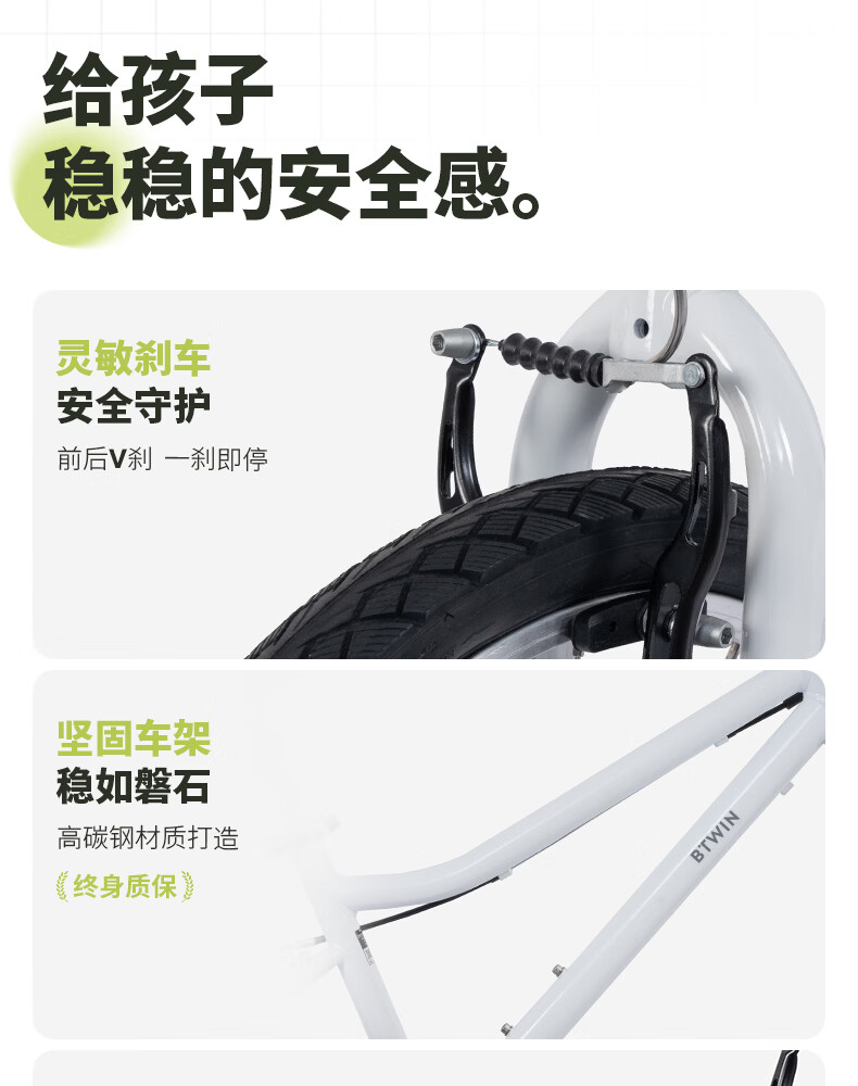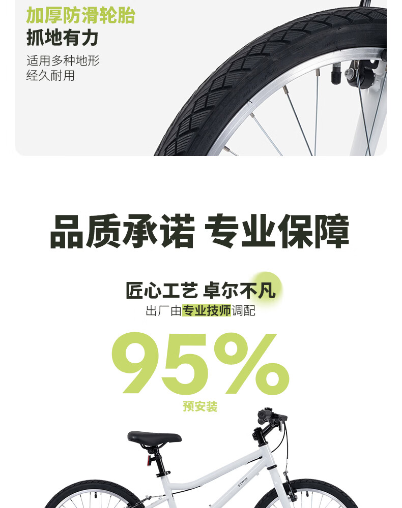 迪卡侬(DECATHLON)儿童自行车单车男孩女孩学生20-24寸脚踏车 白色20英寸单速(含脚撑+车铃)