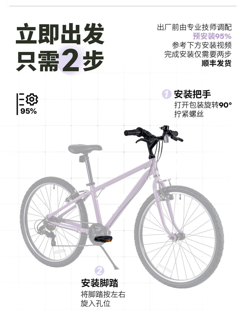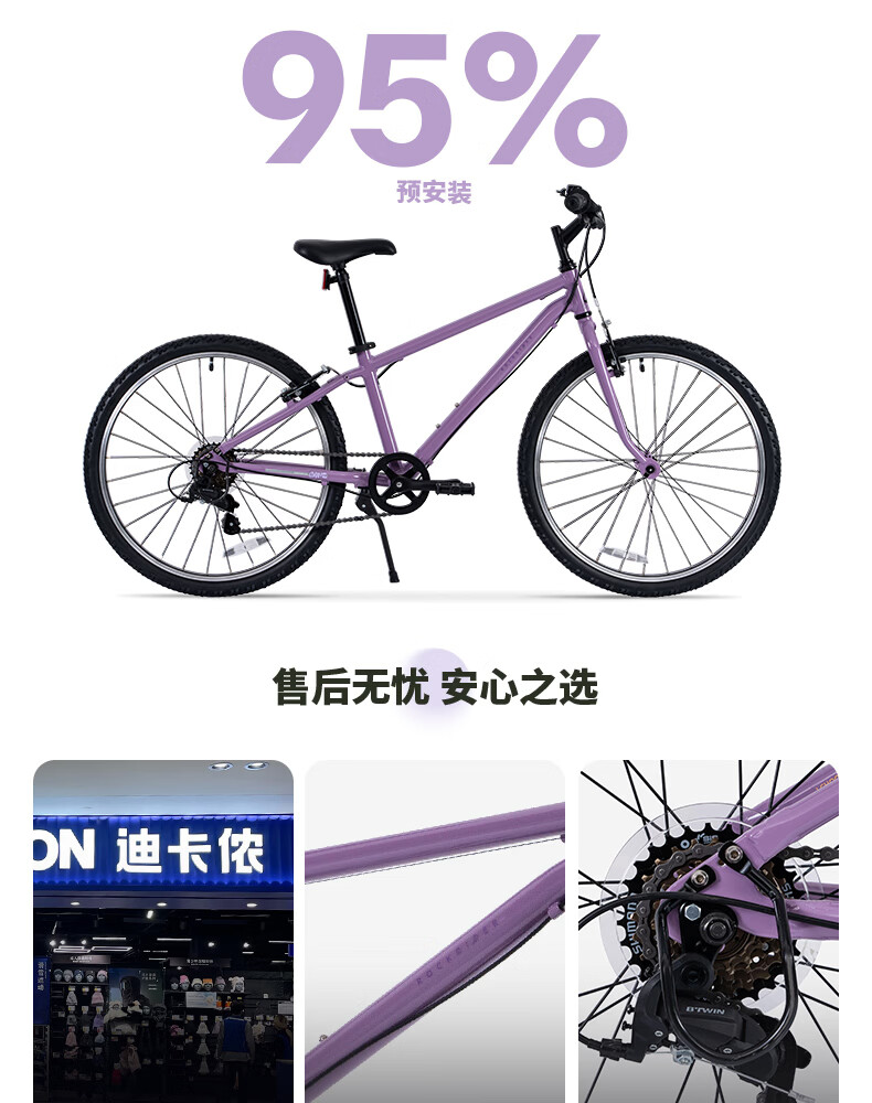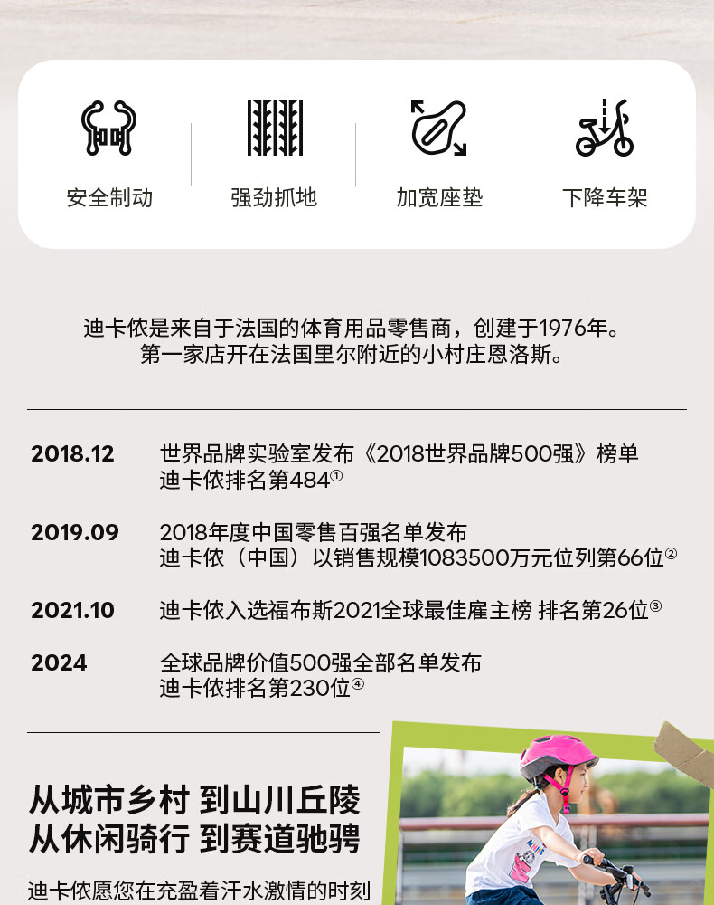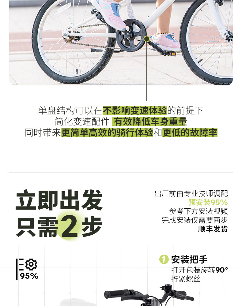 迪卡侬(DECATHLON)儿童自行车单车男孩女孩学生20-24寸脚踏车 白色20英寸单速(含脚撑+车铃)