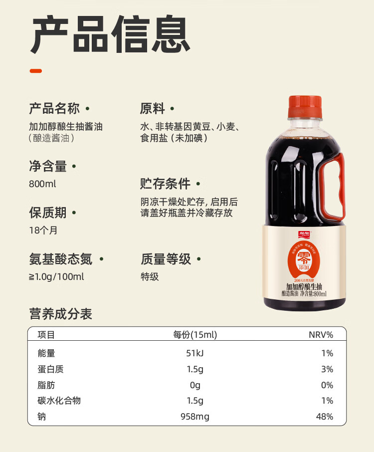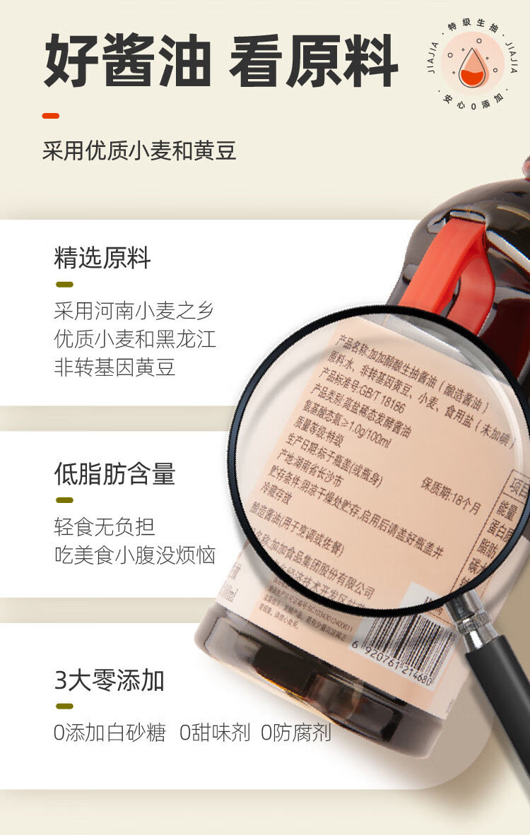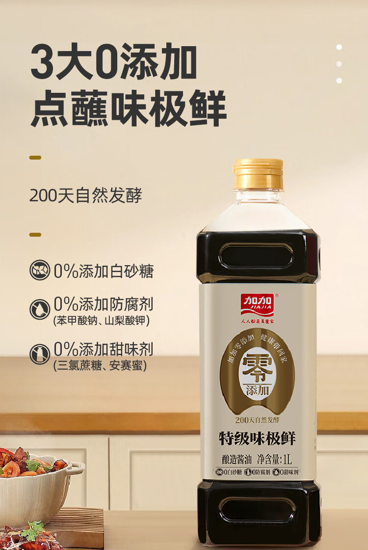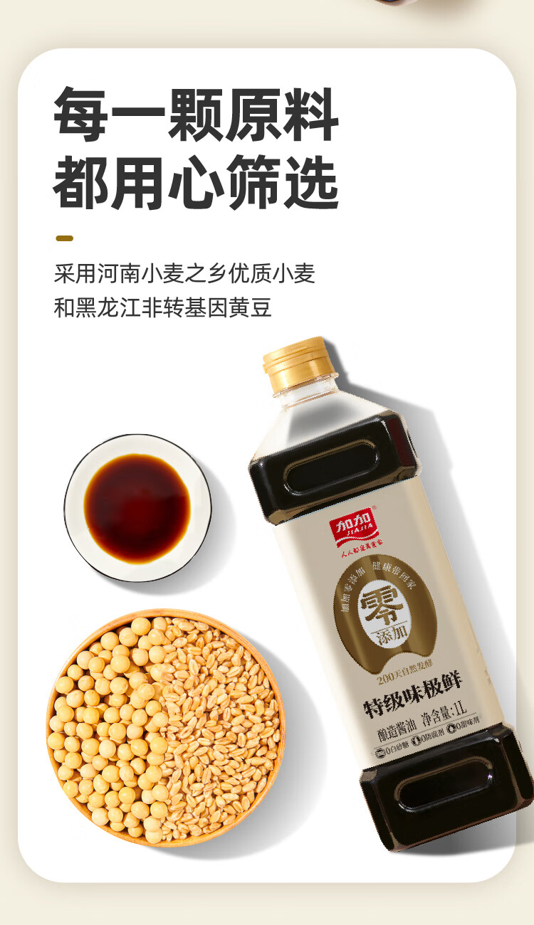 加加酱油 味极鲜特级生抽酱油1L 酿造生抽 家用凉拌炒菜调味 高鲜生抽 【零添加】特级味极鲜1L