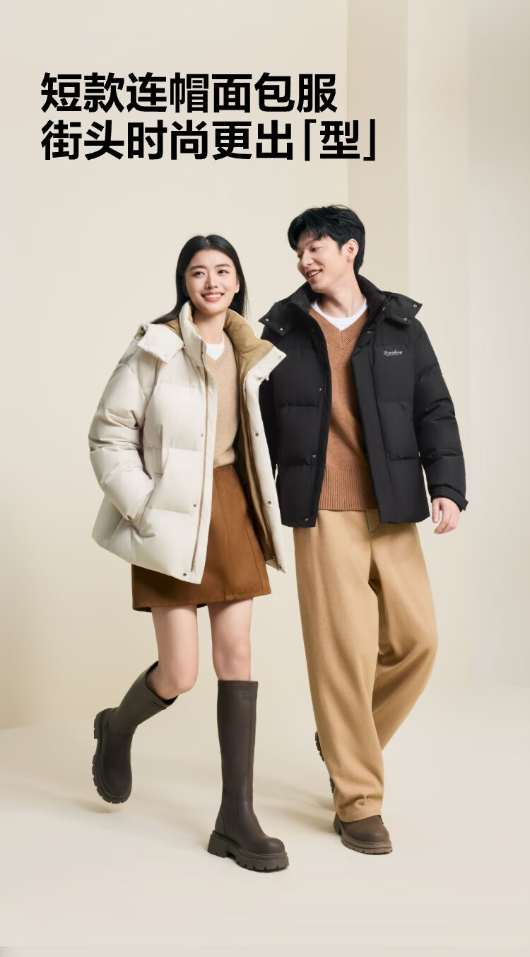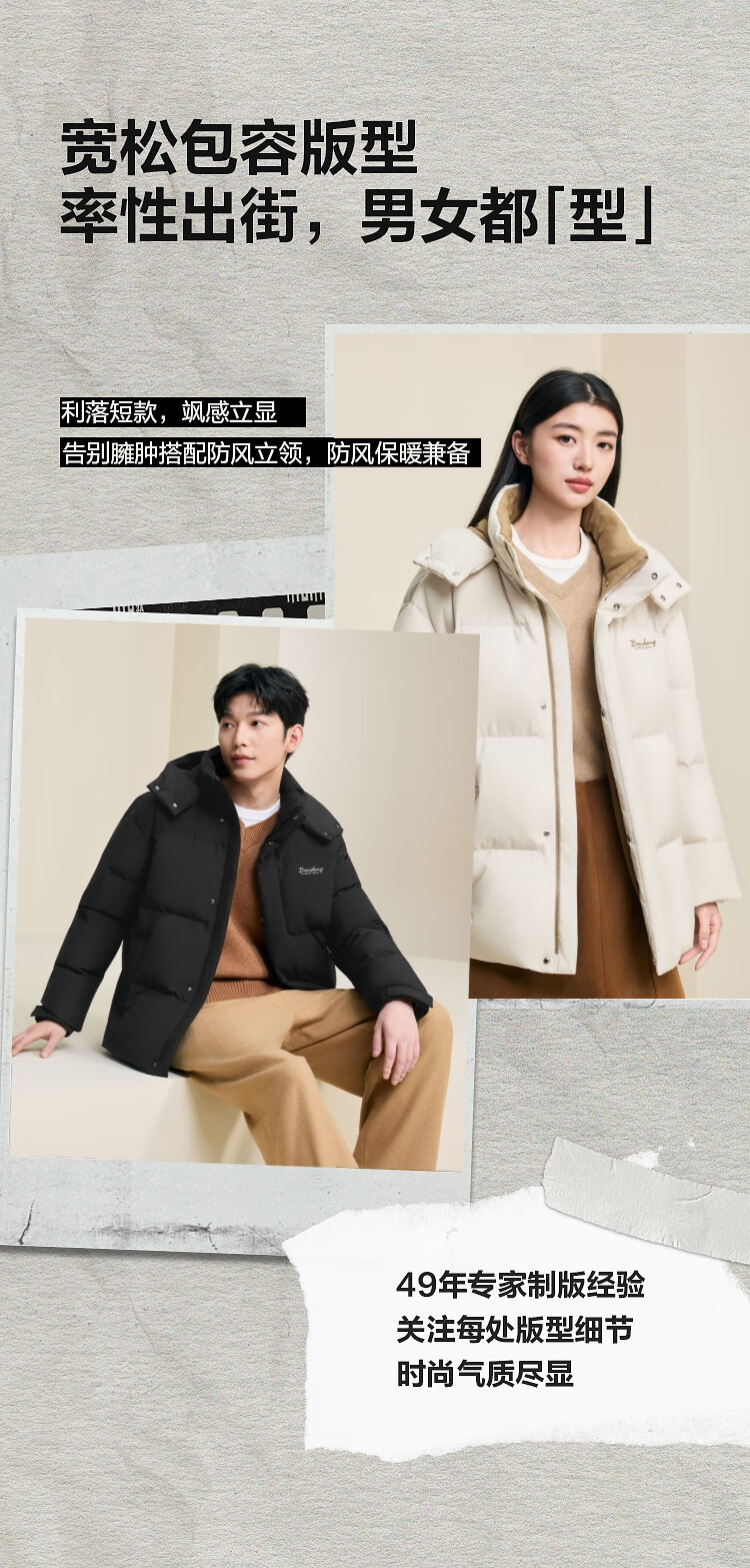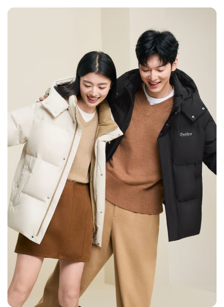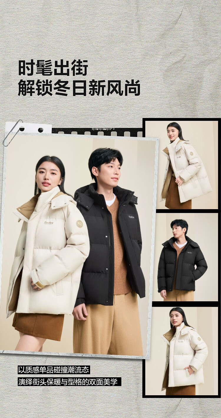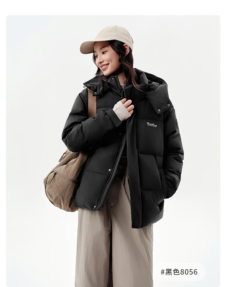 波司登(BOSIDENG)25年新款羽绒服男女同款情侣短款可脱卸帽保暖时尚经典百搭外套 黑色|8056 XL 175/96A 体重约140-155斤