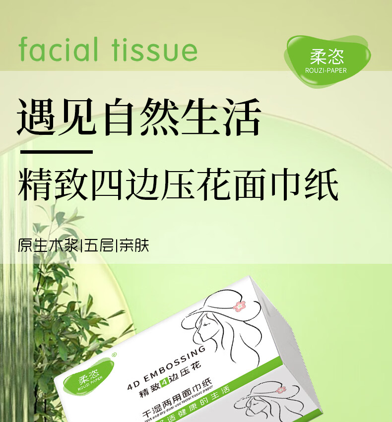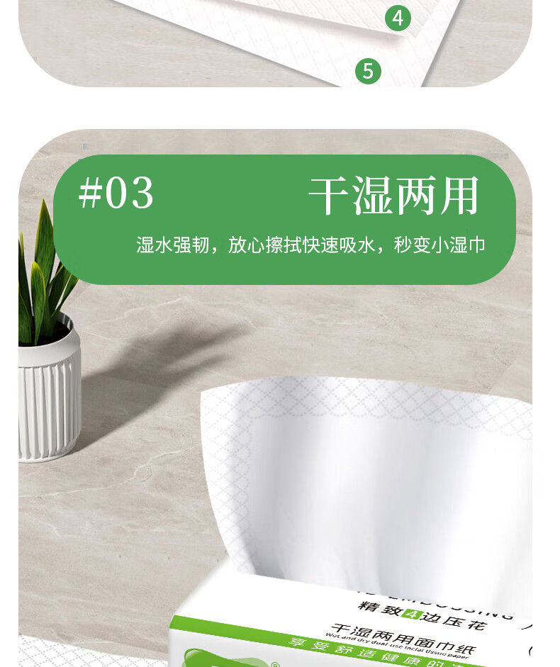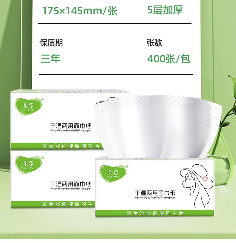 家用抽纸加厚擦手纸可湿水面巾纸实惠餐巾纸优质面巾纸原木卫生纸 5层 400张*6包