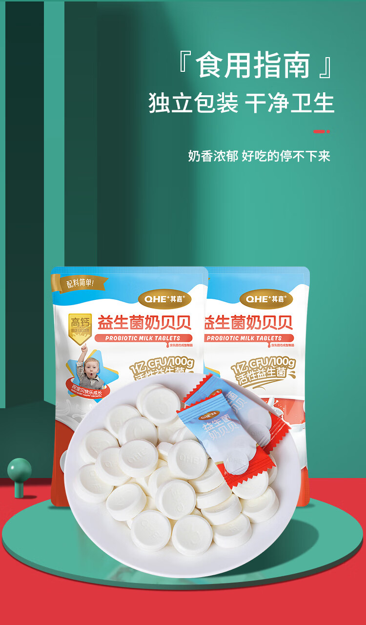小奶花其嘉含益生菌奶贝贝100g 儿童休闲零食 奶片 内蒙古年货节奶制品