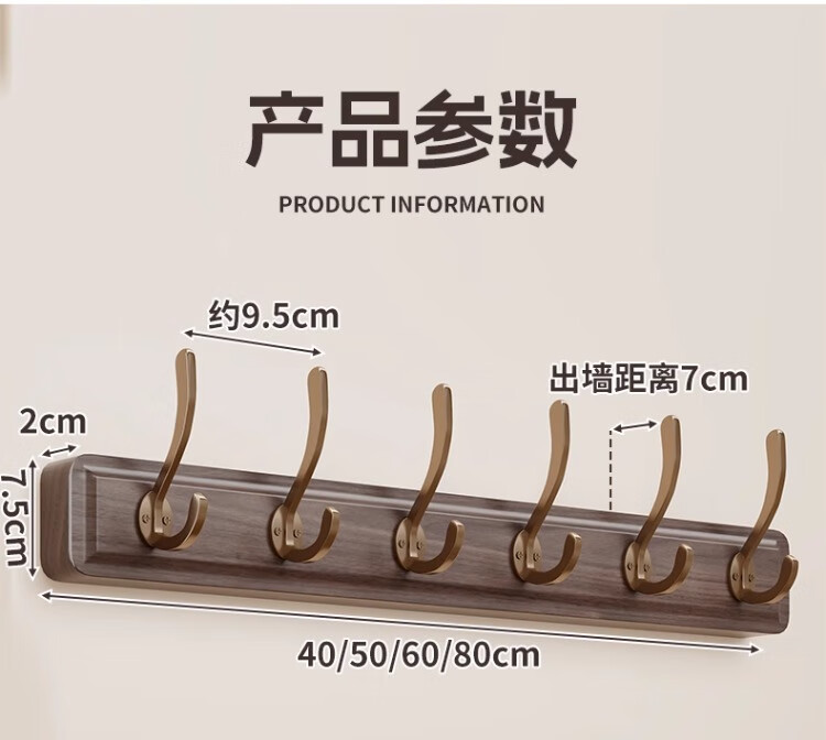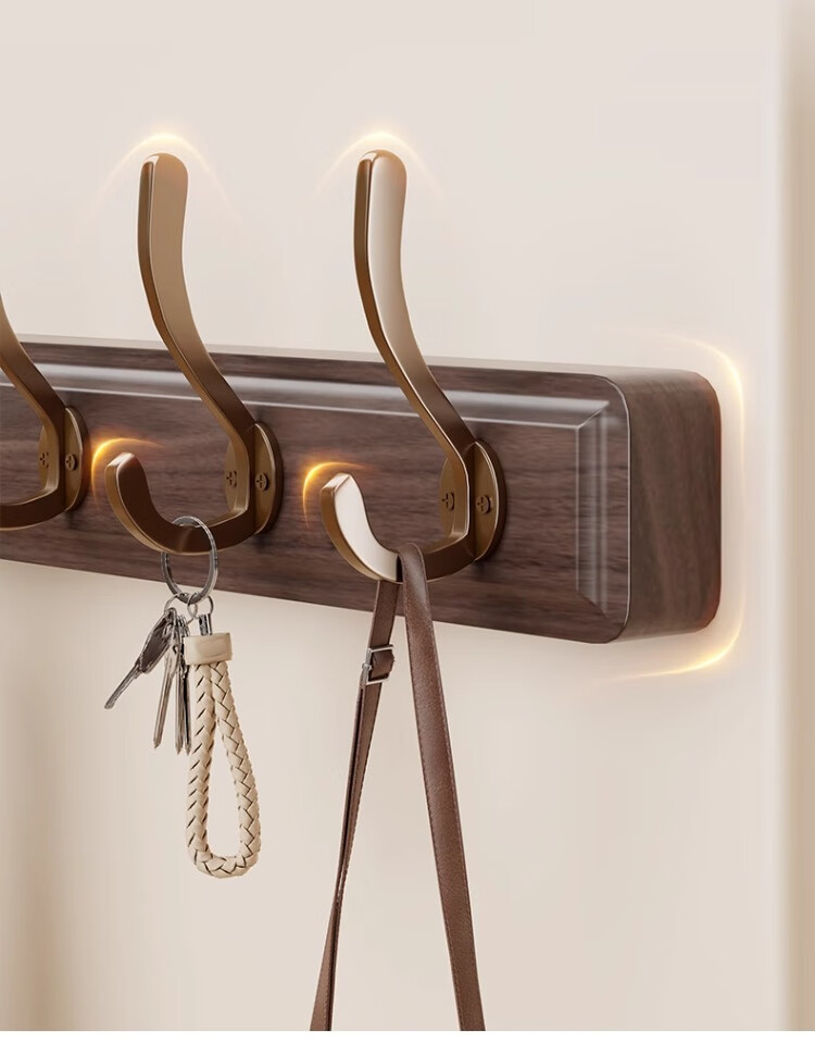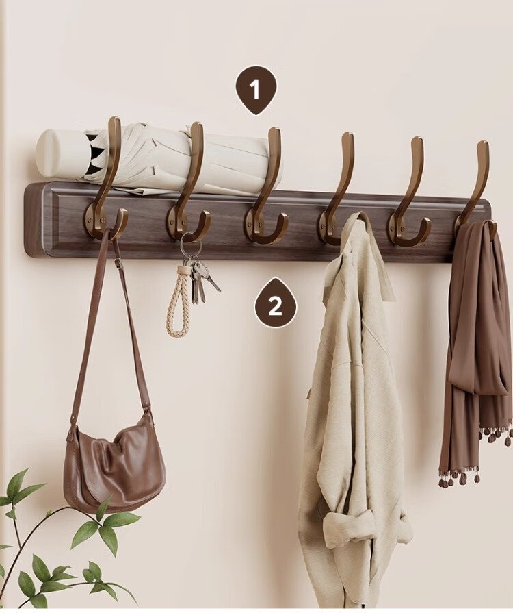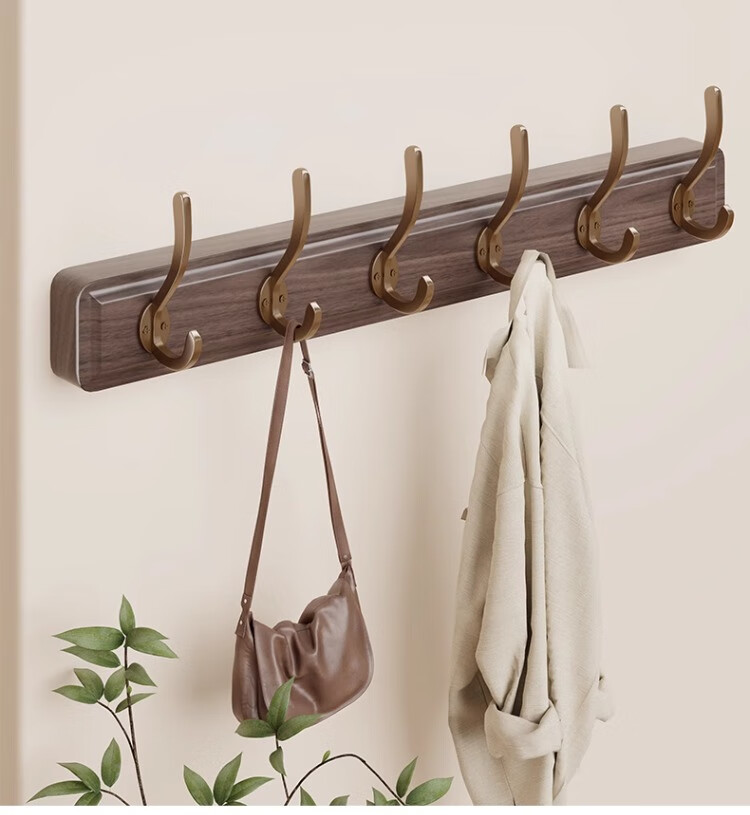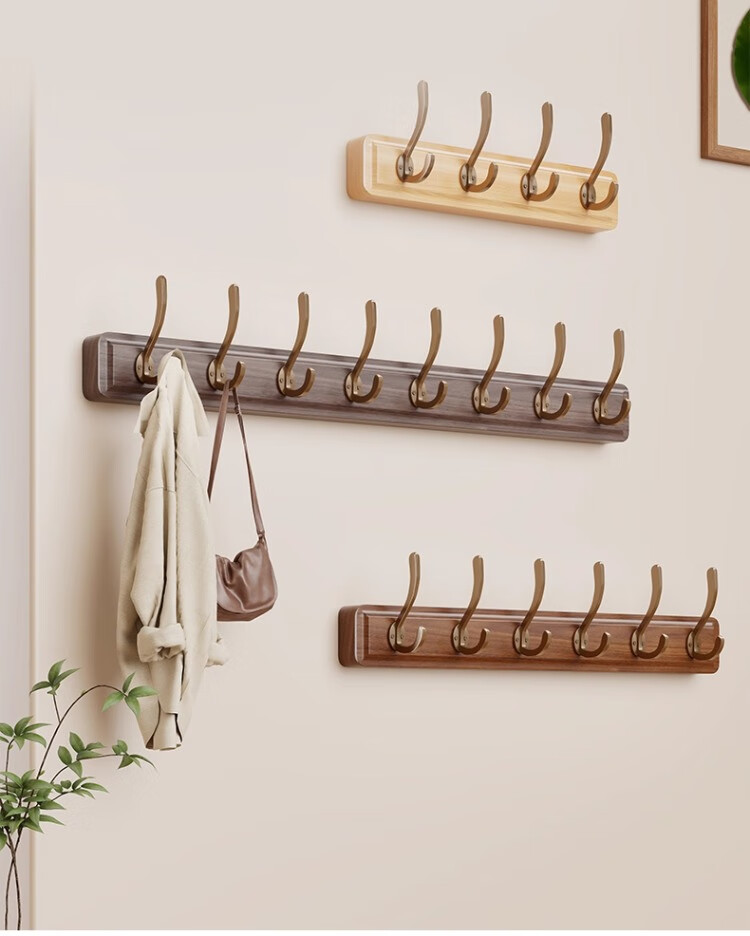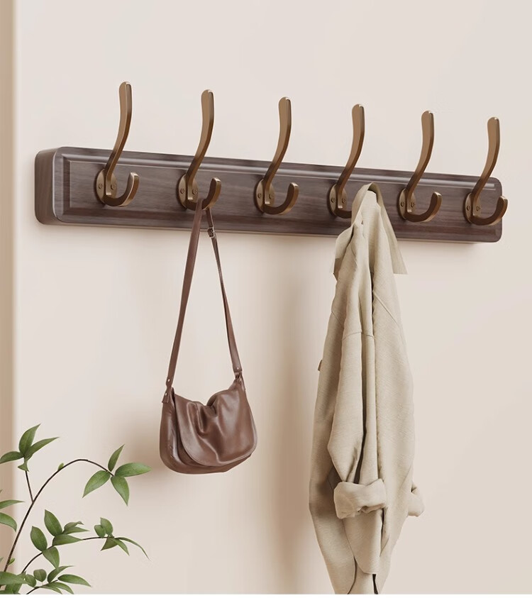 尔思家挂衣架墙上壁挂衣服挂钩衣架进门玄关入户门后钥匙免打孔实木架 黑胡桃色6钩【进口实木】