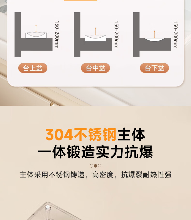 瑞尔特(R&T)2026年新款不锈钢浴室柜组合奶油风卫生间星曜一体盆洗漱台Y3015 Y3015-90cm【不锈钢+星曜一体盆+多元分区储物】