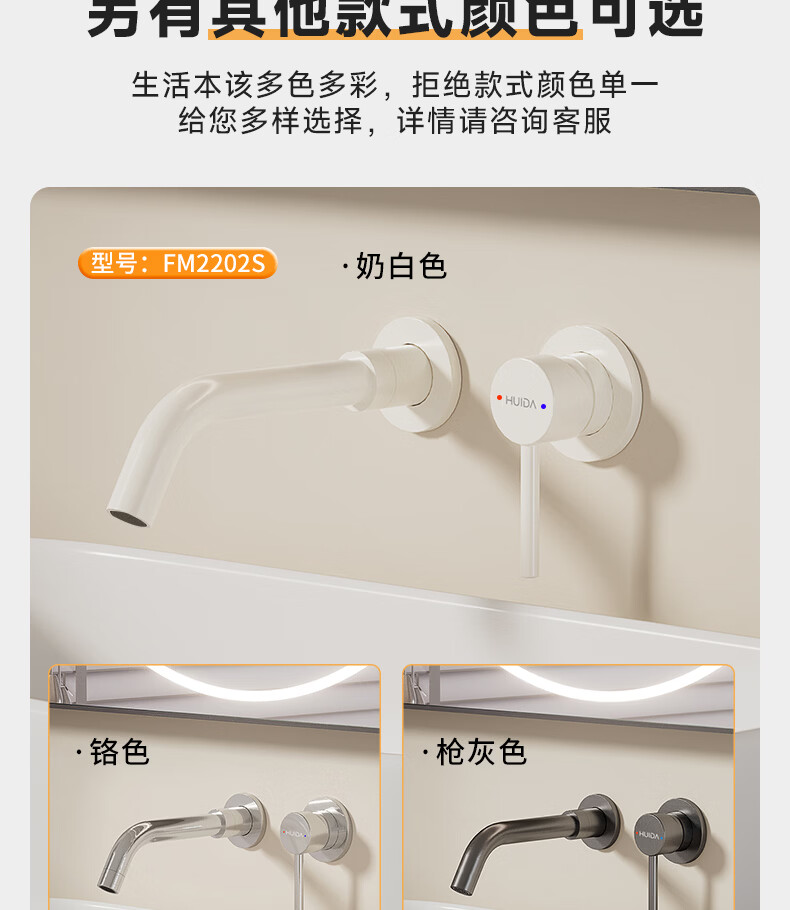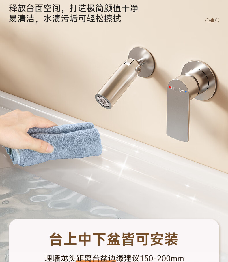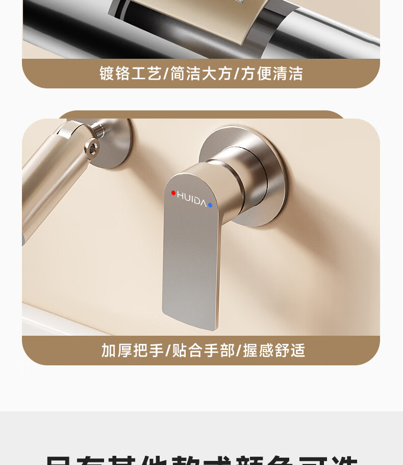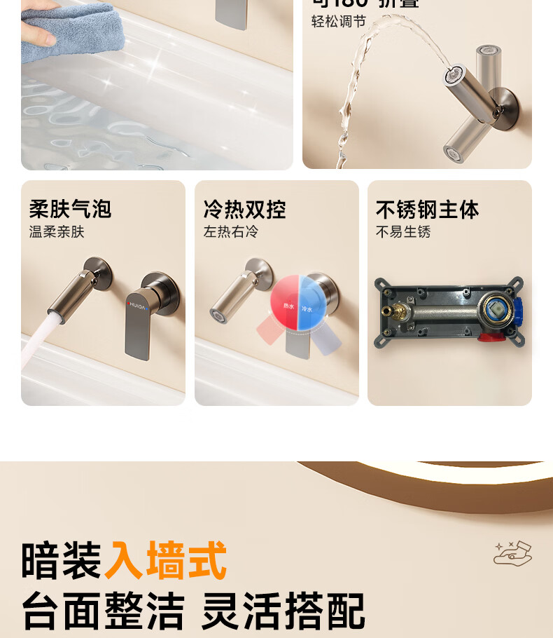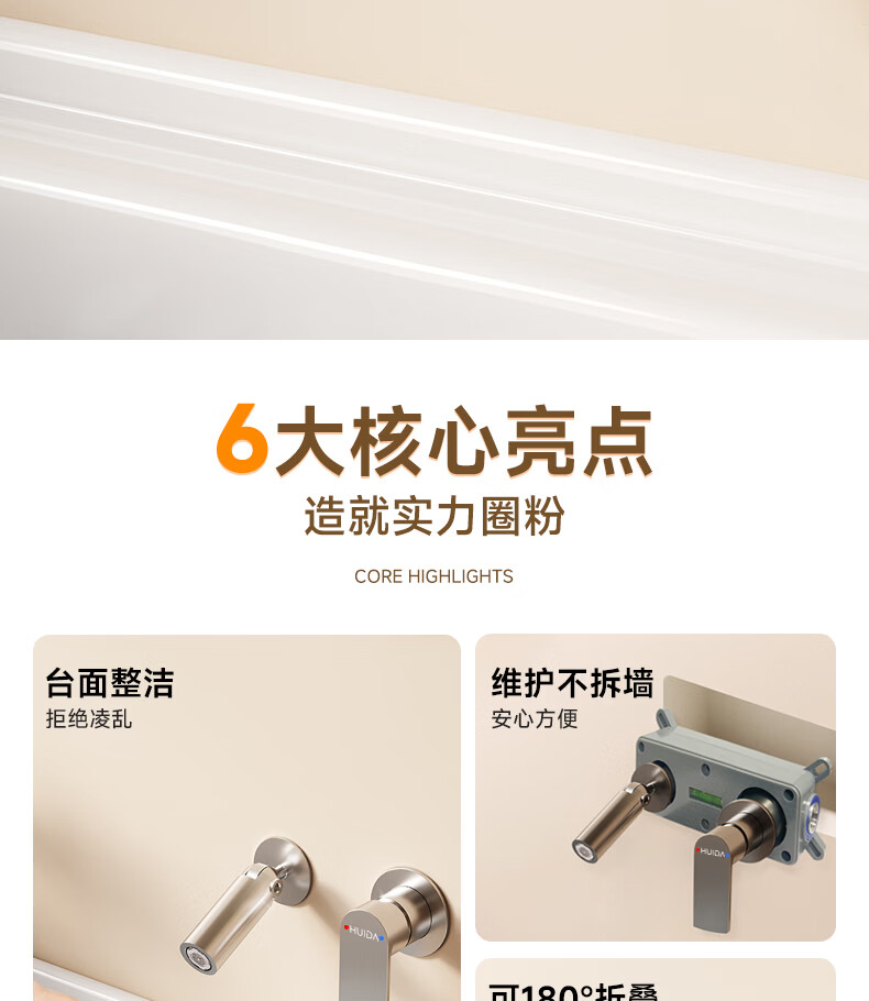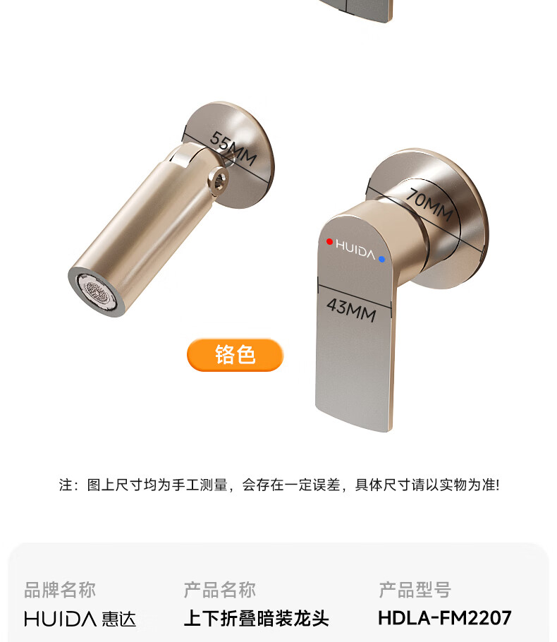 惠达(HUIDA)入墙式水龙头隐藏式面盆冷热龙头墙出水墙排嵌入式折叠式暗装龙头 【上下折叠】铬色双出水FM2207