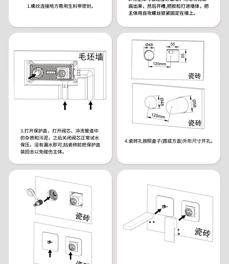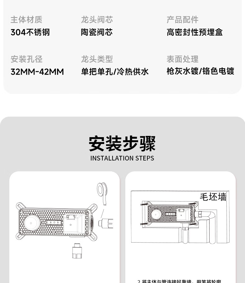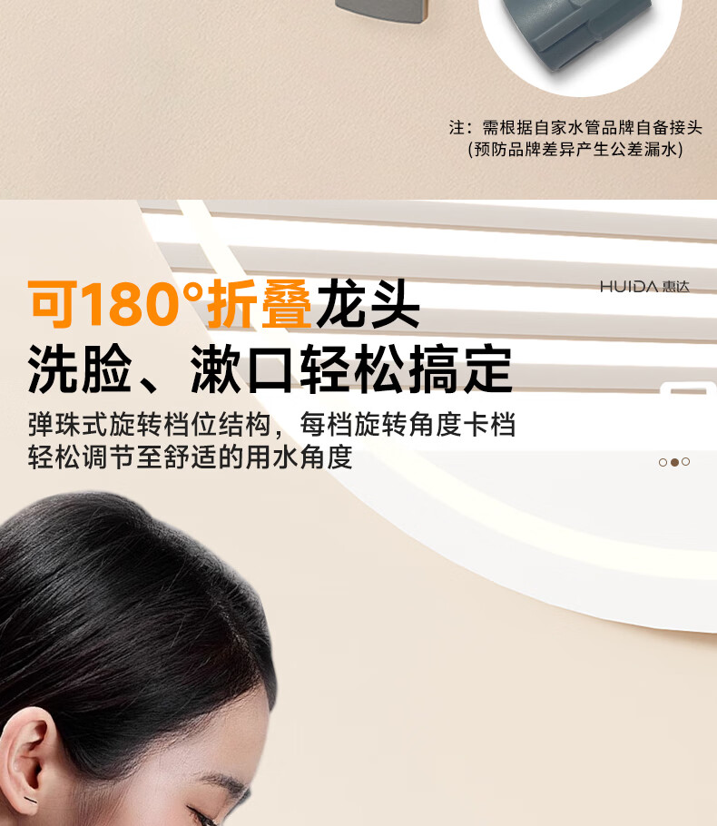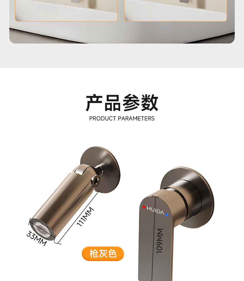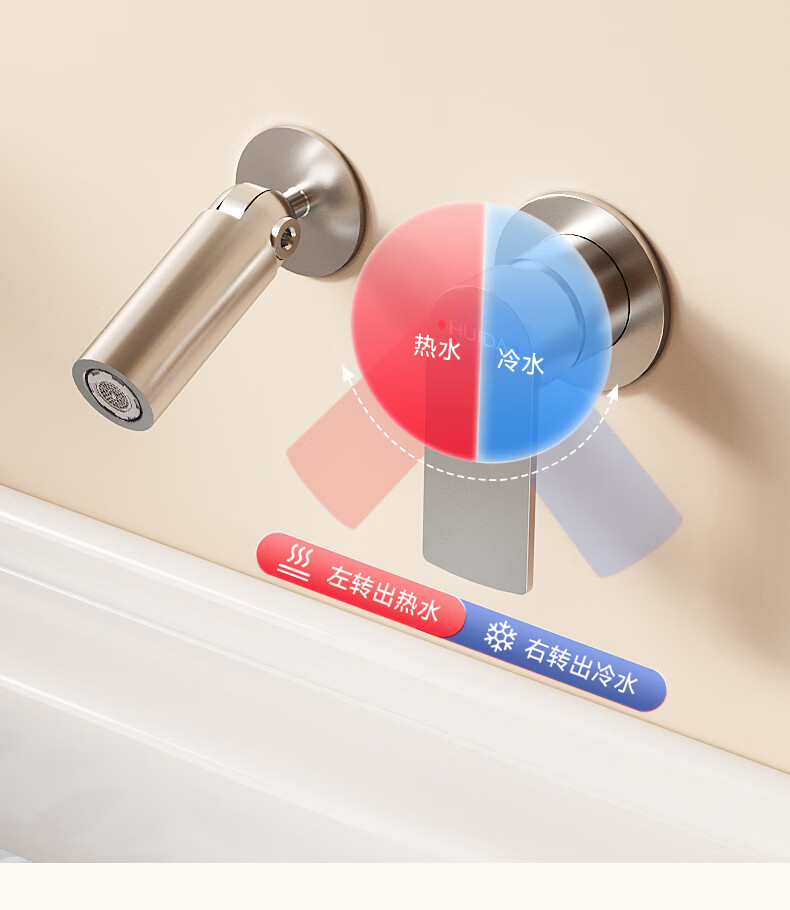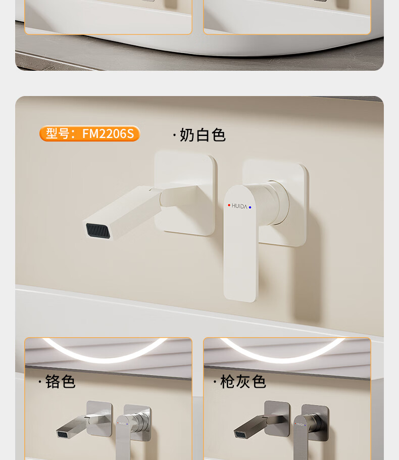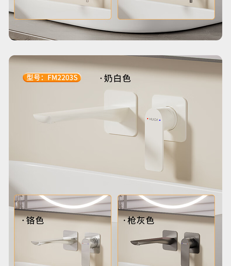 惠达(HUIDA)入墙式水龙头隐藏式面盆冷热龙头墙出水墙排嵌入式折叠式暗装龙头 【上下折叠】铬色双出水FM2207