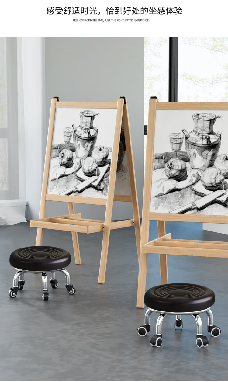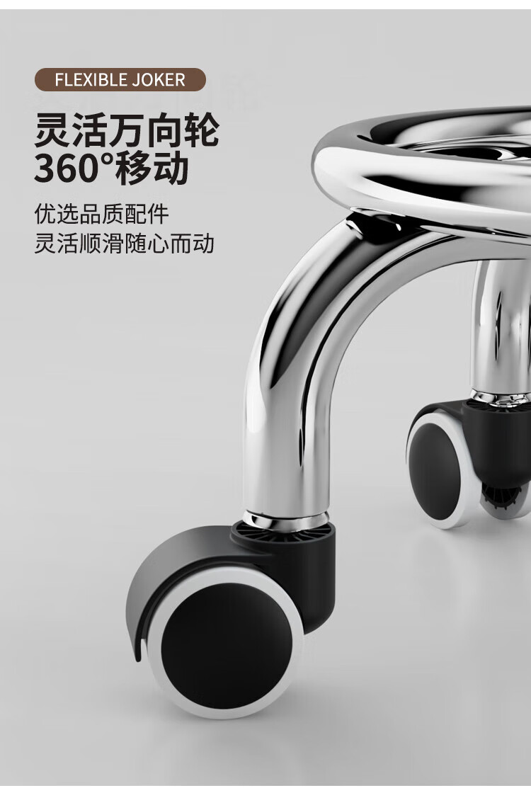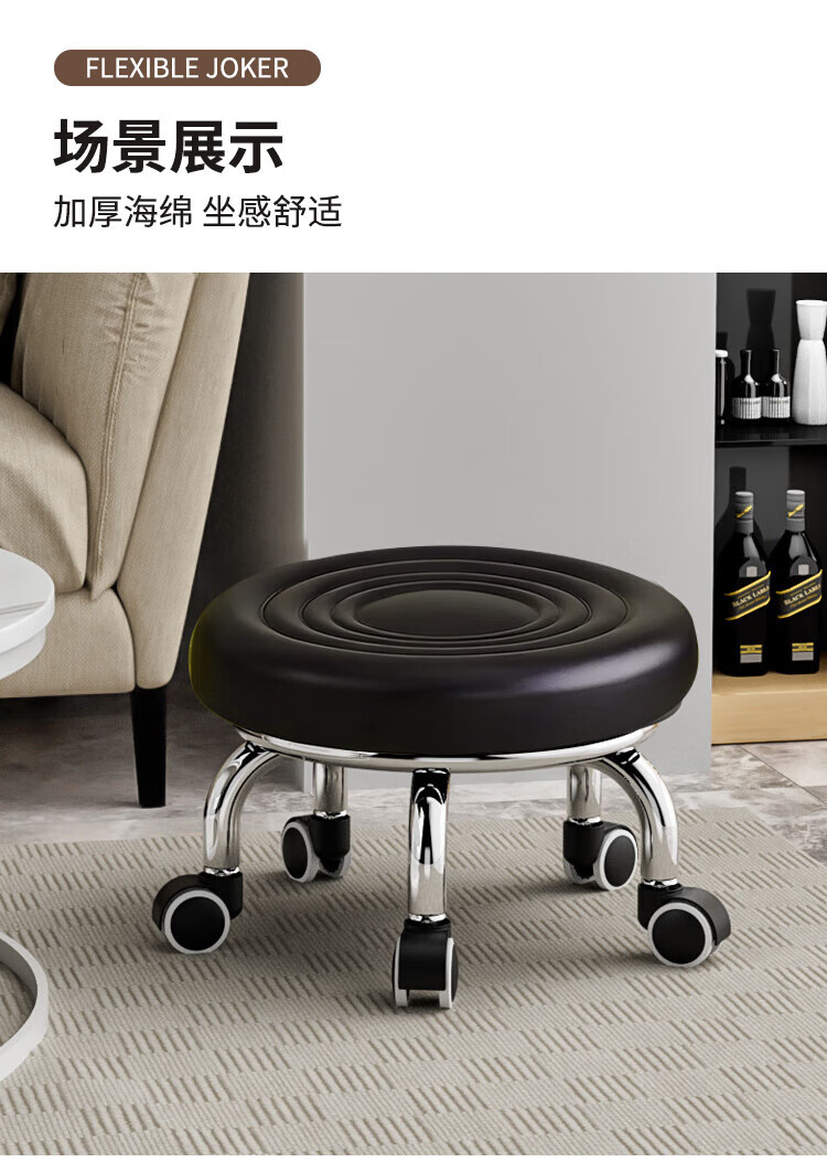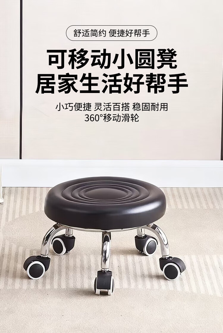 馨婺家万向轮小矮凳子家用圆凳可移动美缝儿童学步凳小板凳带滑轮静音 黑色-小号【水波纹】