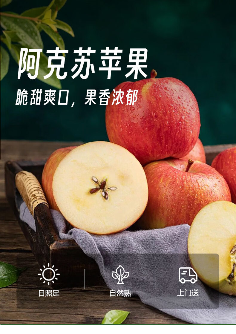 京鲜生 新疆阿克苏苹果 净重4.5斤 果径75-80mm 水果源头直发
