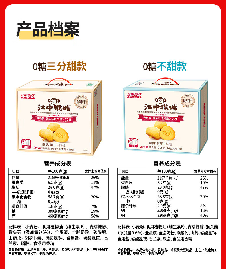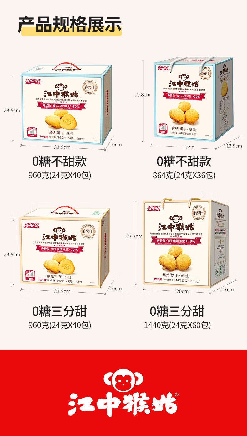 江中猴姑酥性饼干养胃猴头菇高钙早餐代餐零食年货礼盒送长辈送礼糖友可吃 糖友可吃丨0糖低GI酥性饼干1440g