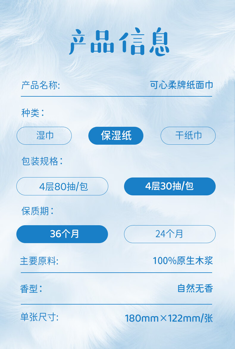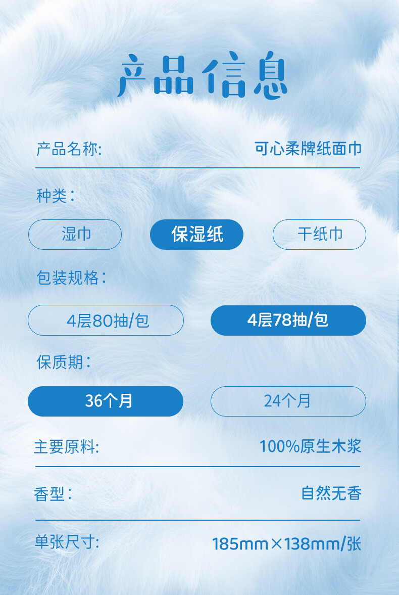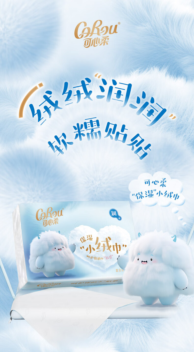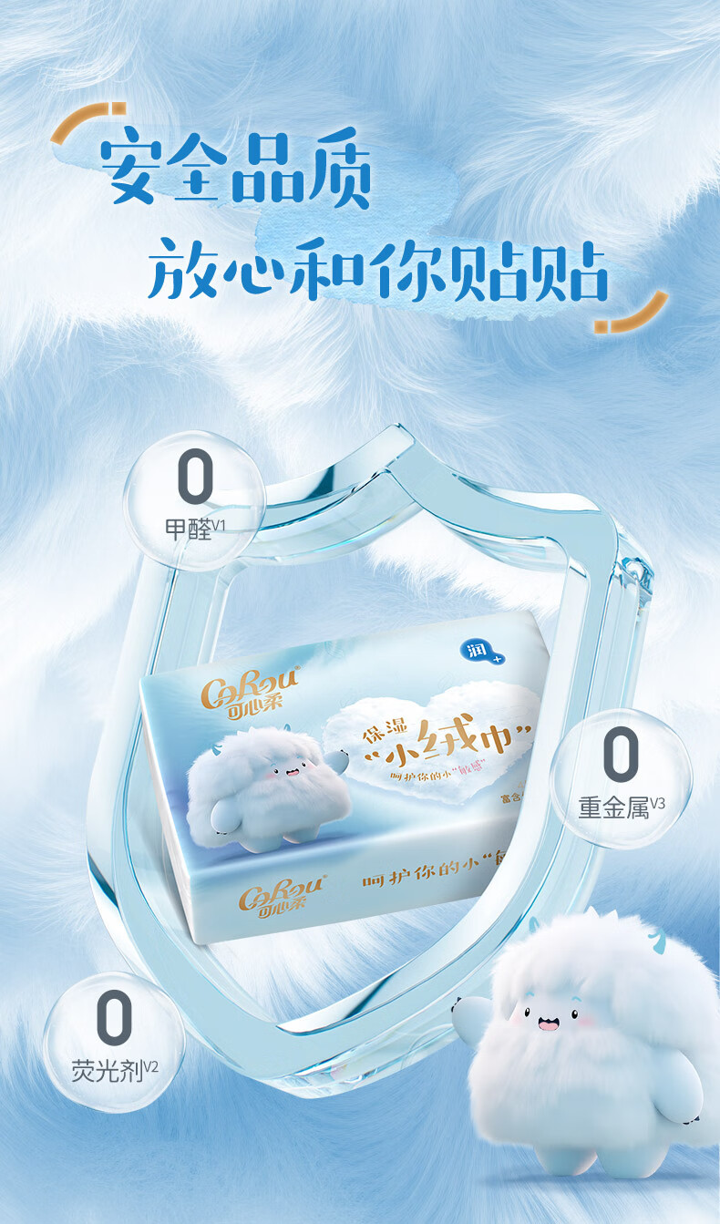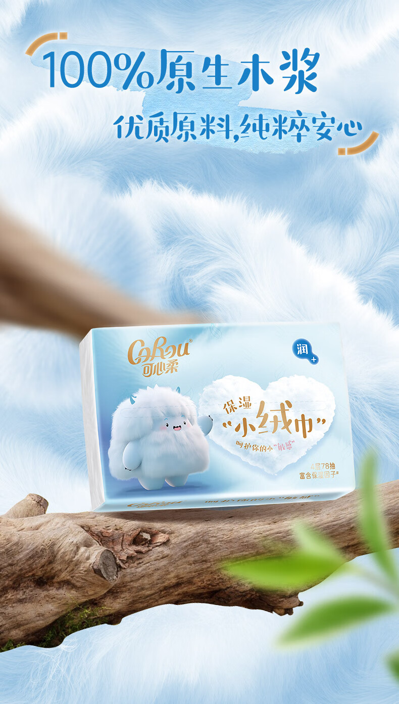 可心柔(COROU)V9婴儿纸巾M码4层78抽云柔巾乳霜纸保湿纸巾小绒巾大包抽纸 【绒感云柔巾】 4层 78抽*6包 M码