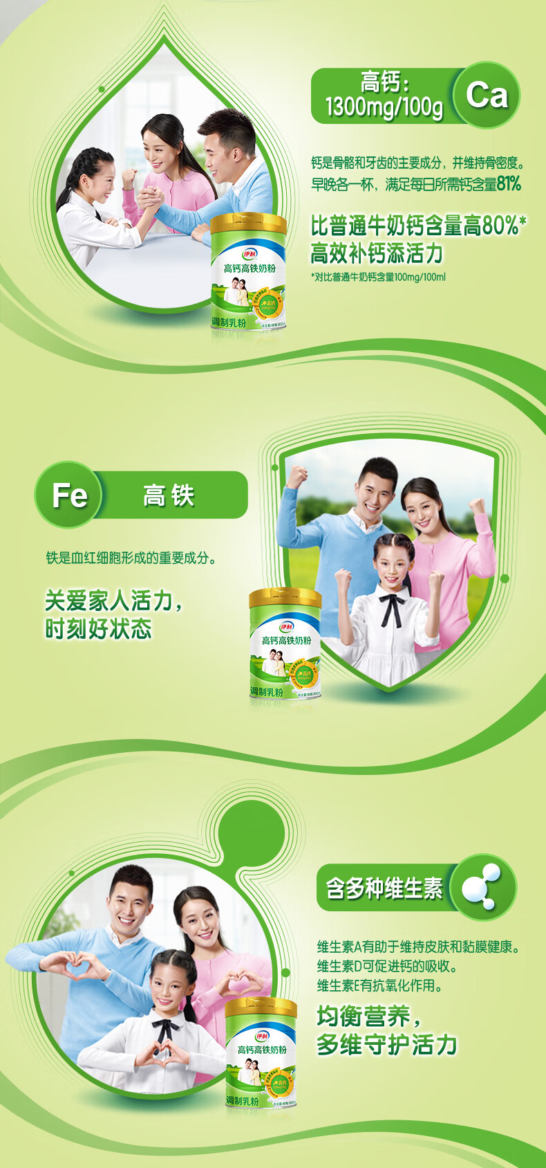 伊利高钙高铁全家奶粉 成人奶粉 营养品 早餐 送礼 高蛋白 900g罐装