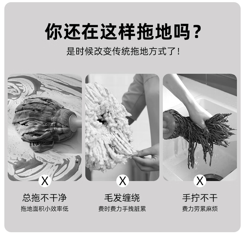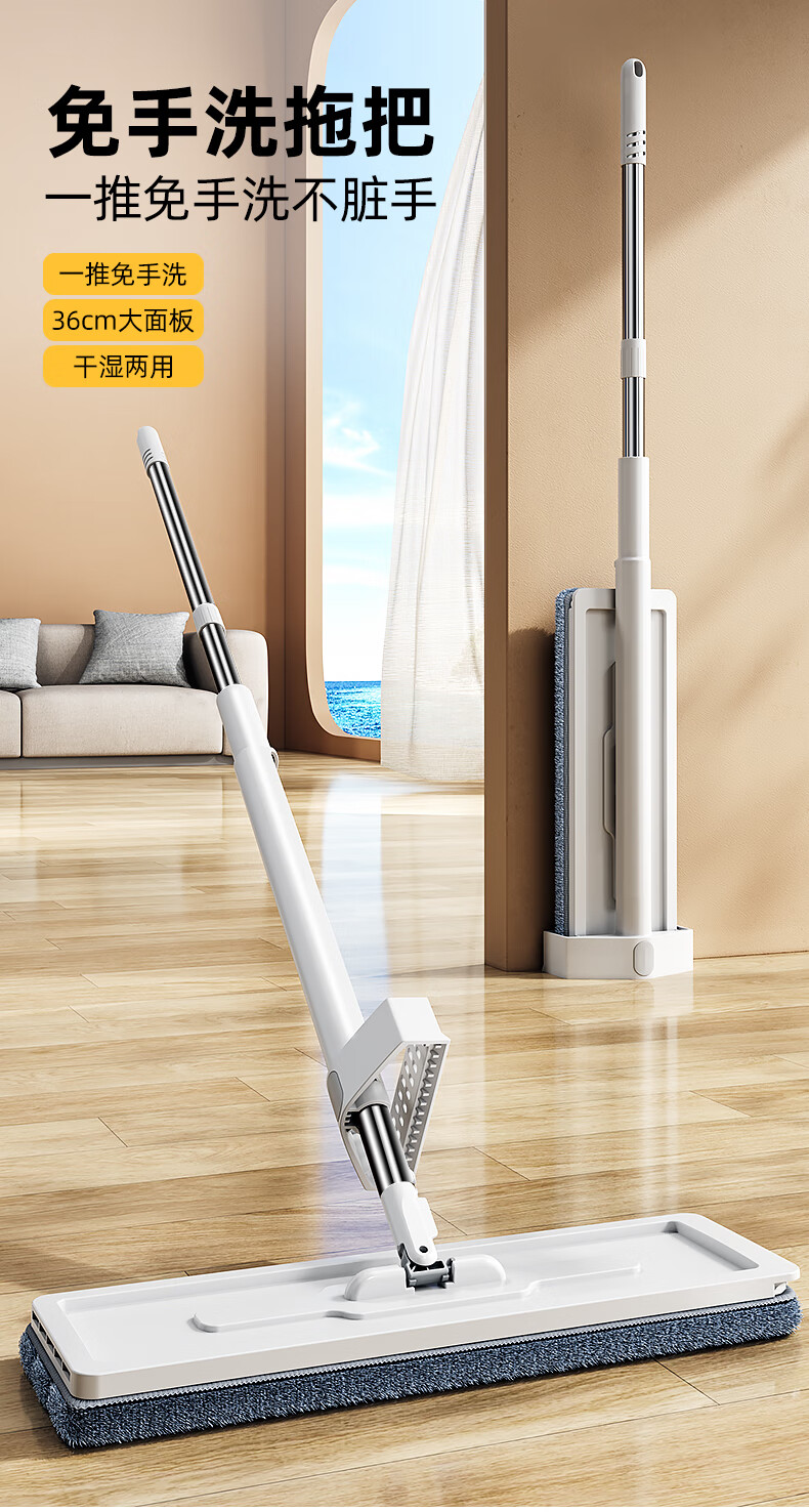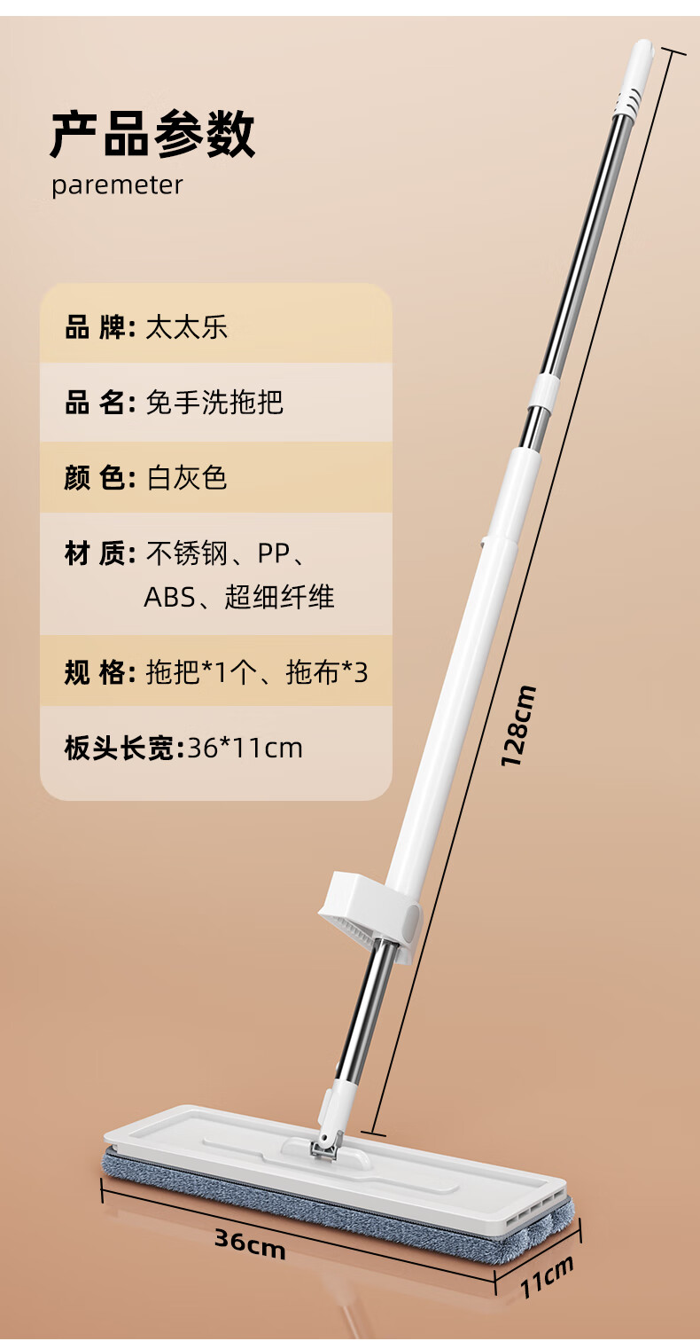 太太乐平板拖把36cm+3配布 免手洗家用一拖净懒人拖地神器