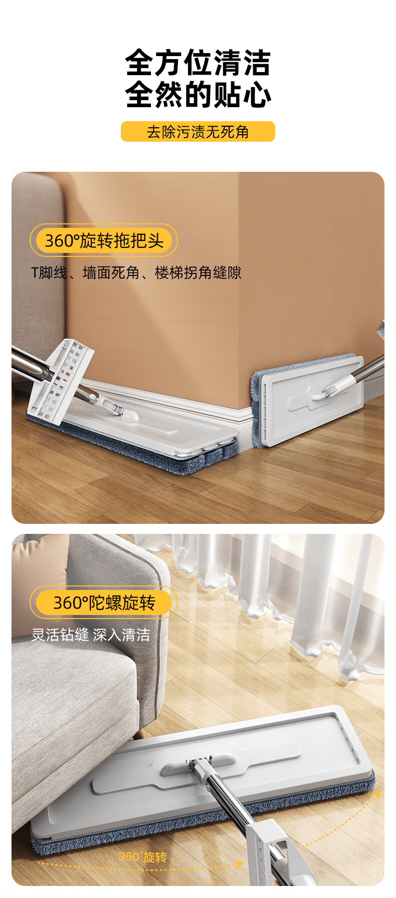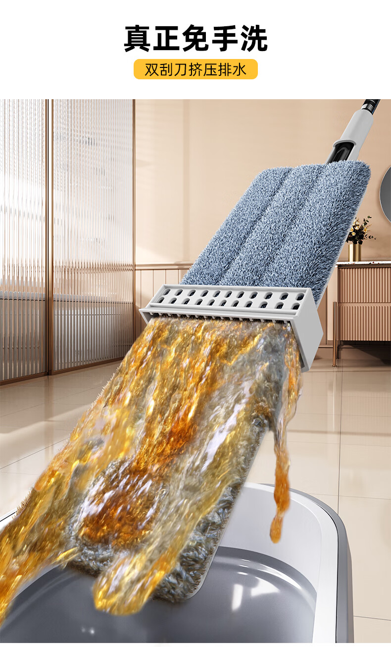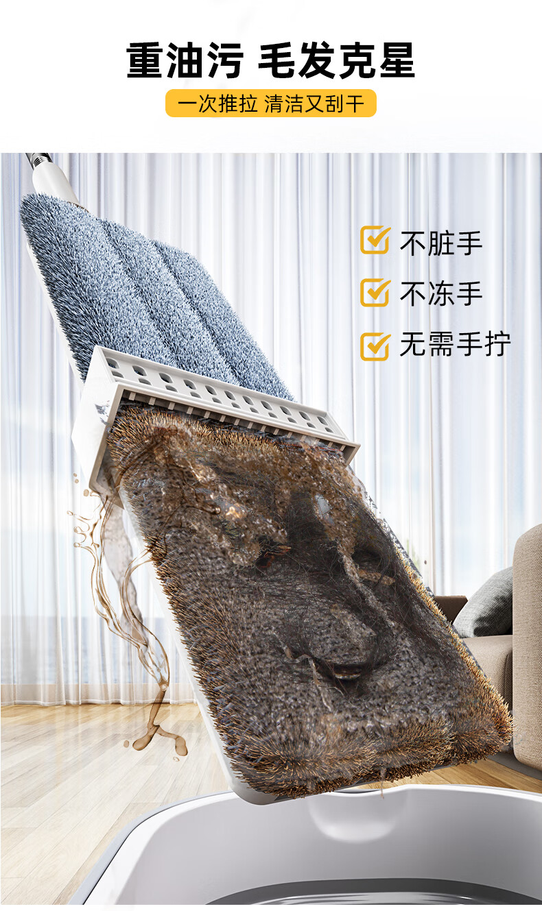太太乐平板拖把36cm+3配布 免手洗家用一拖净懒人拖地神器