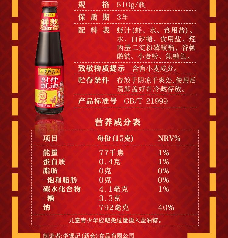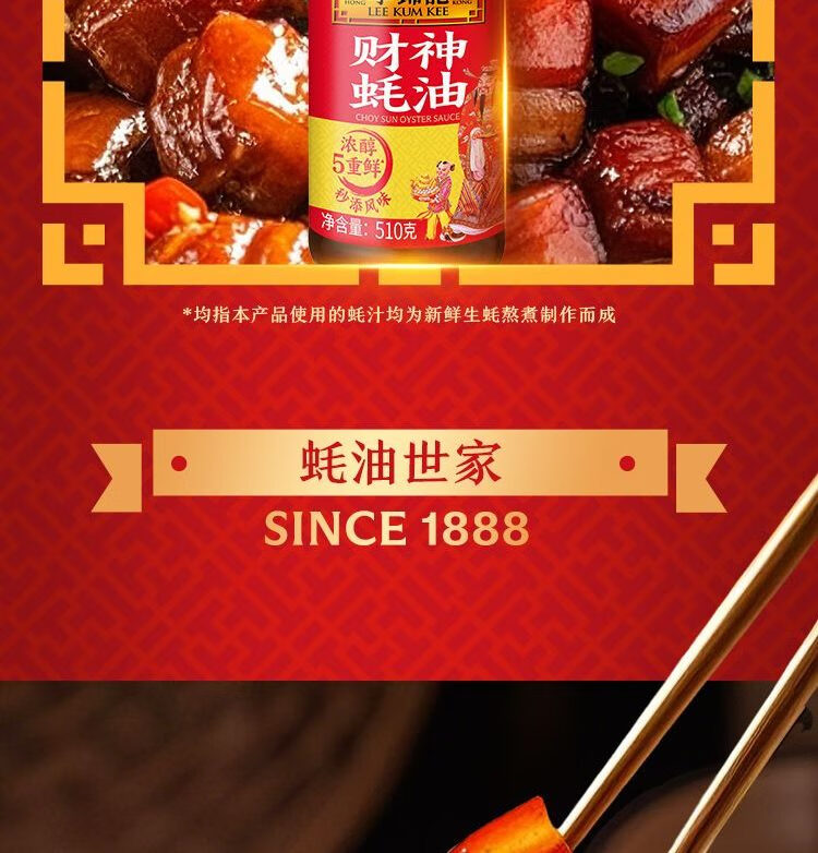 李锦记 财神蚝油510g 自然真蚝鲜 鲜蚝熬煮 火锅调料蘸料 上等提鲜