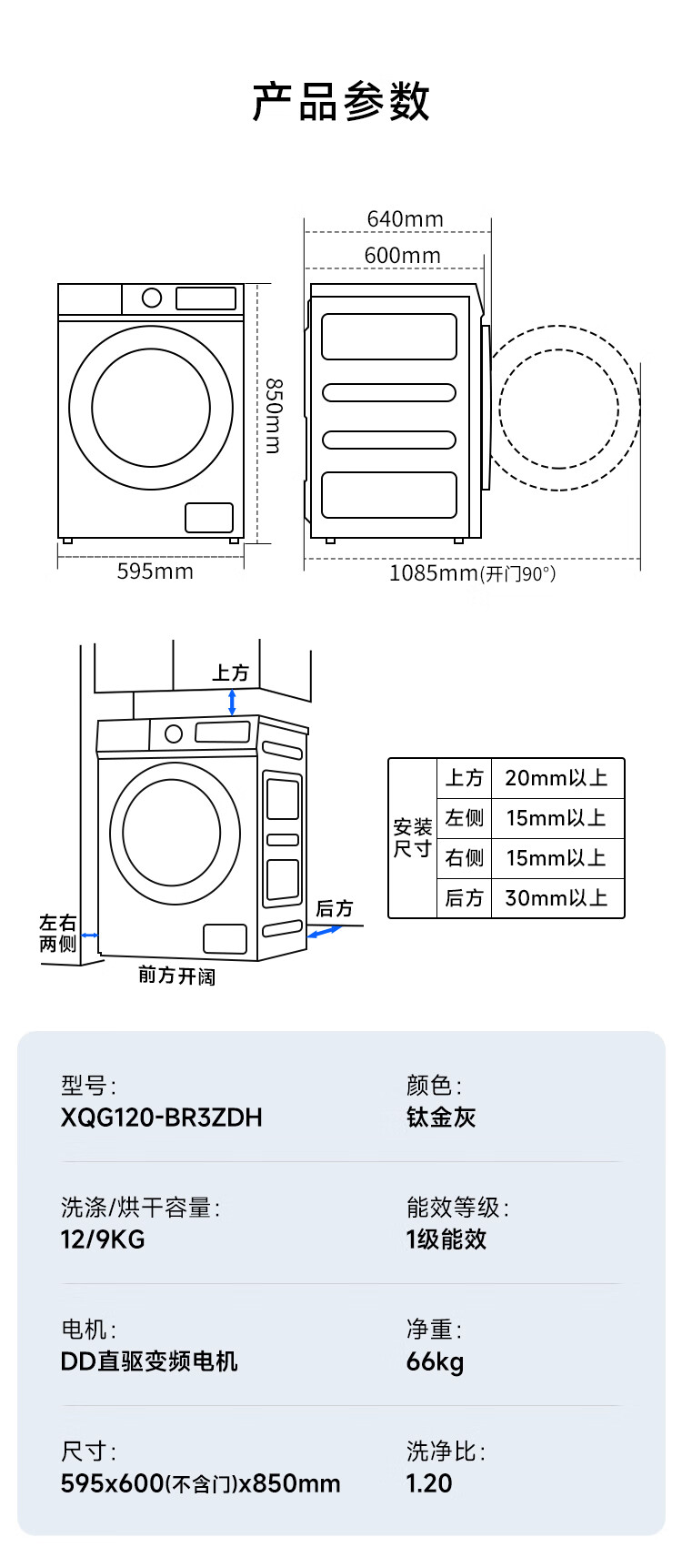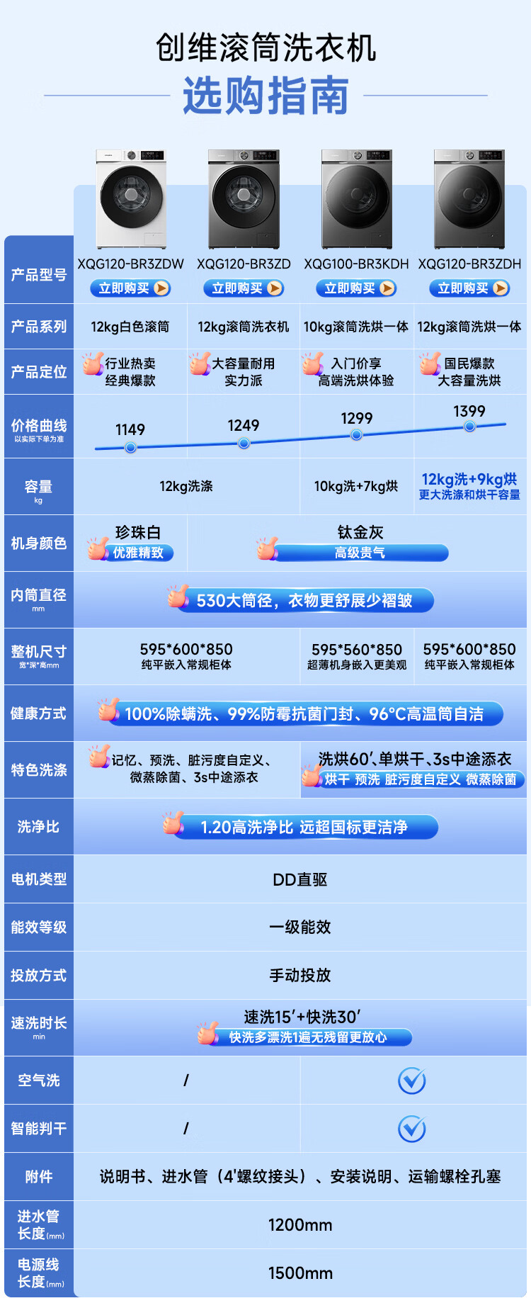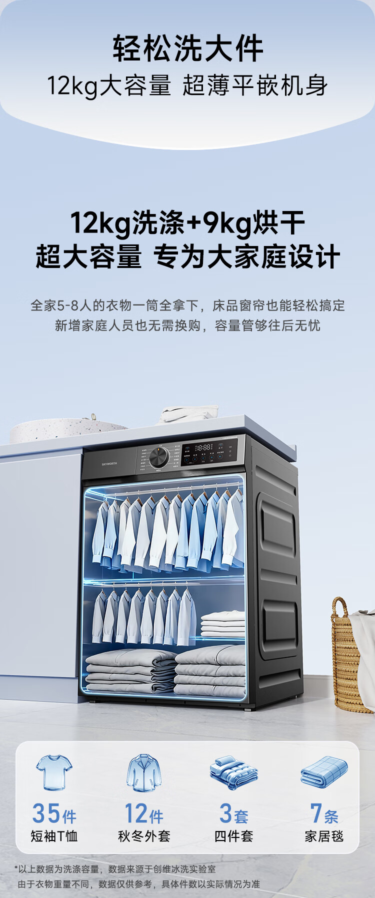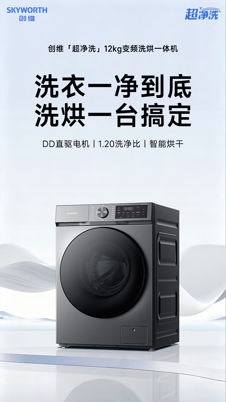 创维变频滚筒洗烘一体12公斤洗衣机全自动家用 带烘干 1.2洗净比节能净速一级国家补贴XQG120-BR3ZDH