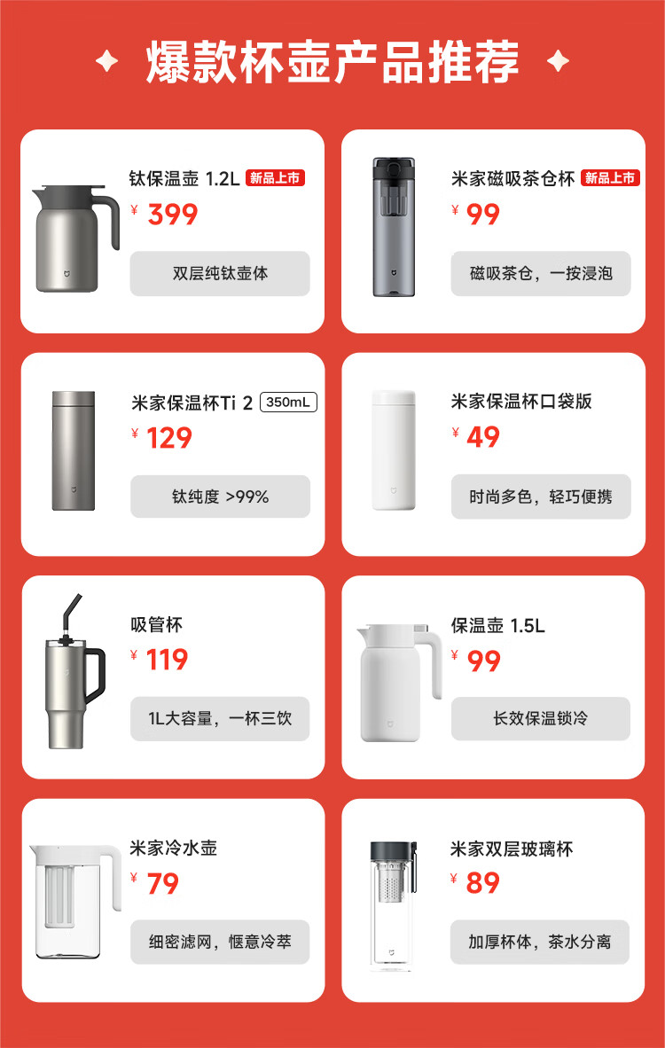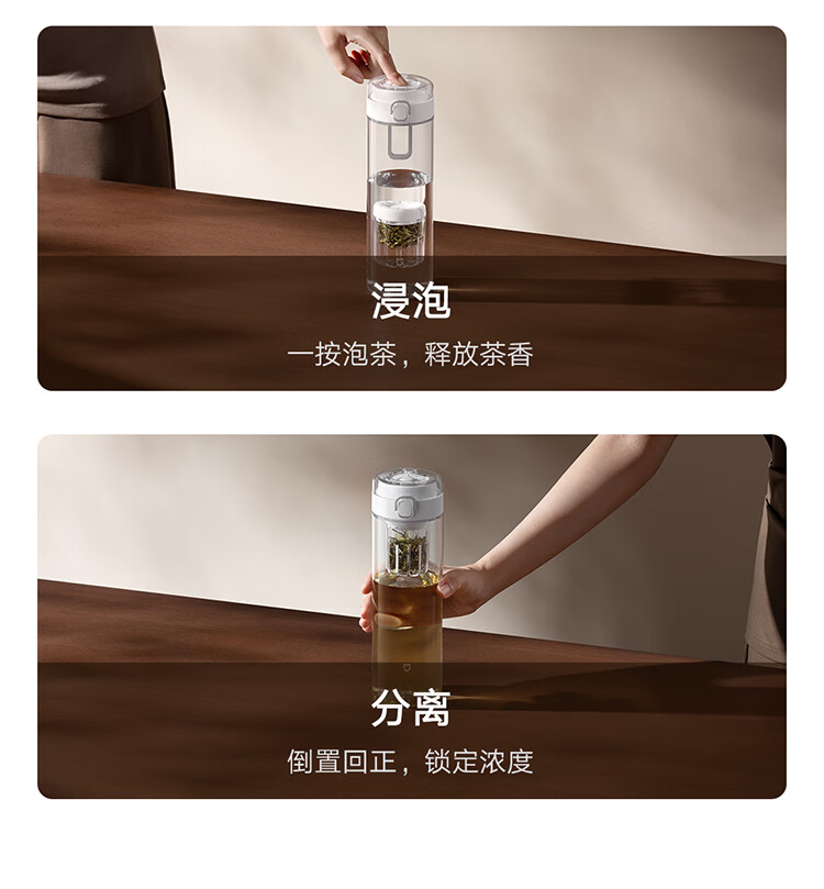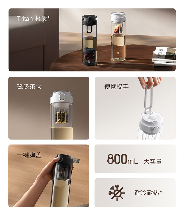 米家磁弹泡茶杯 磁吸茶仓杯 Tritan材质茶水分离杯 运动塑料水杯800mL