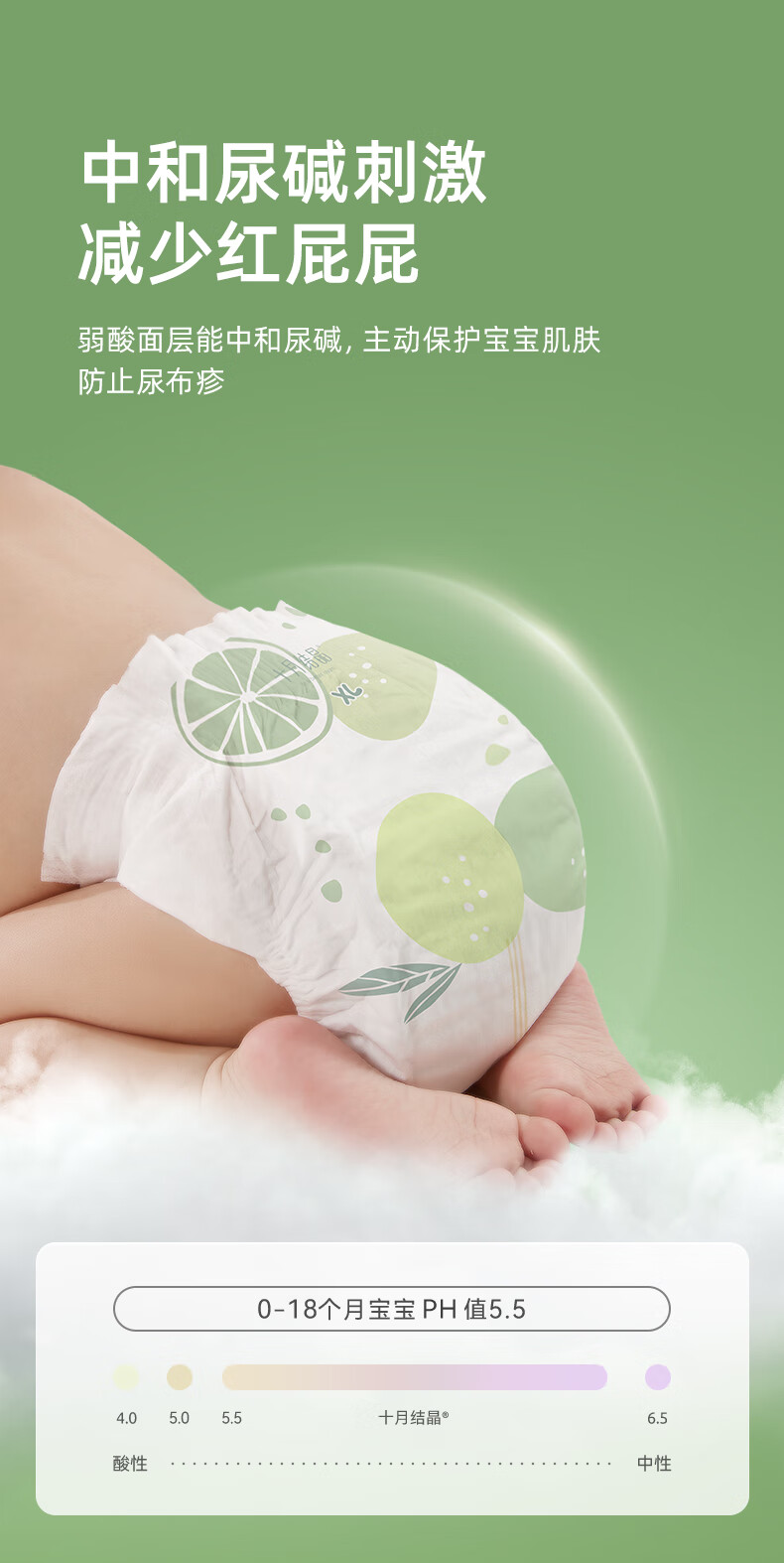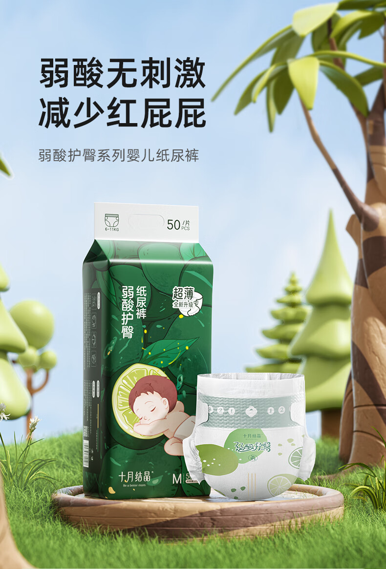 十月结晶婴儿弱酸护臀纸尿裤超薄超柔透气宝宝尿不湿M码50片