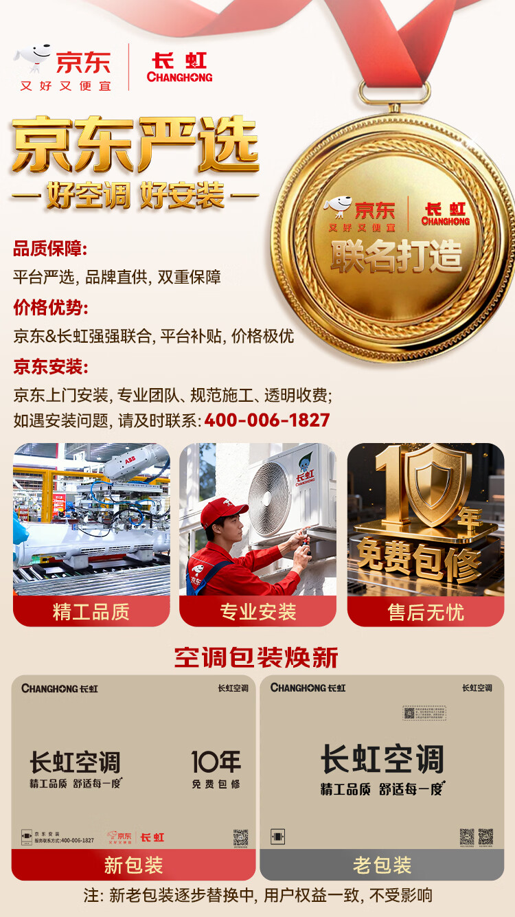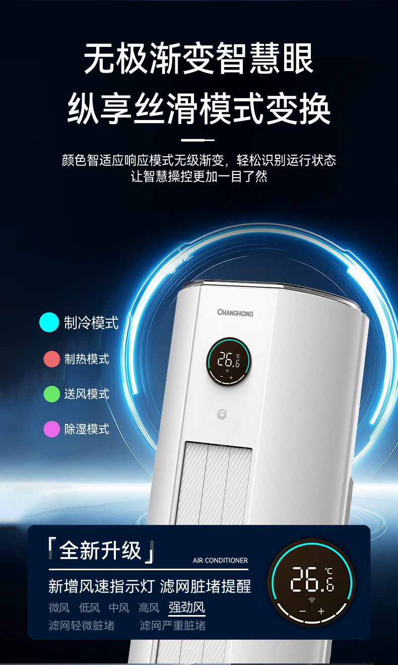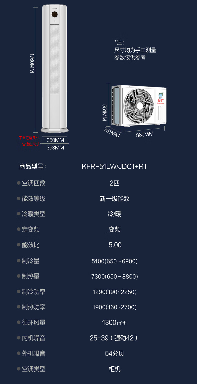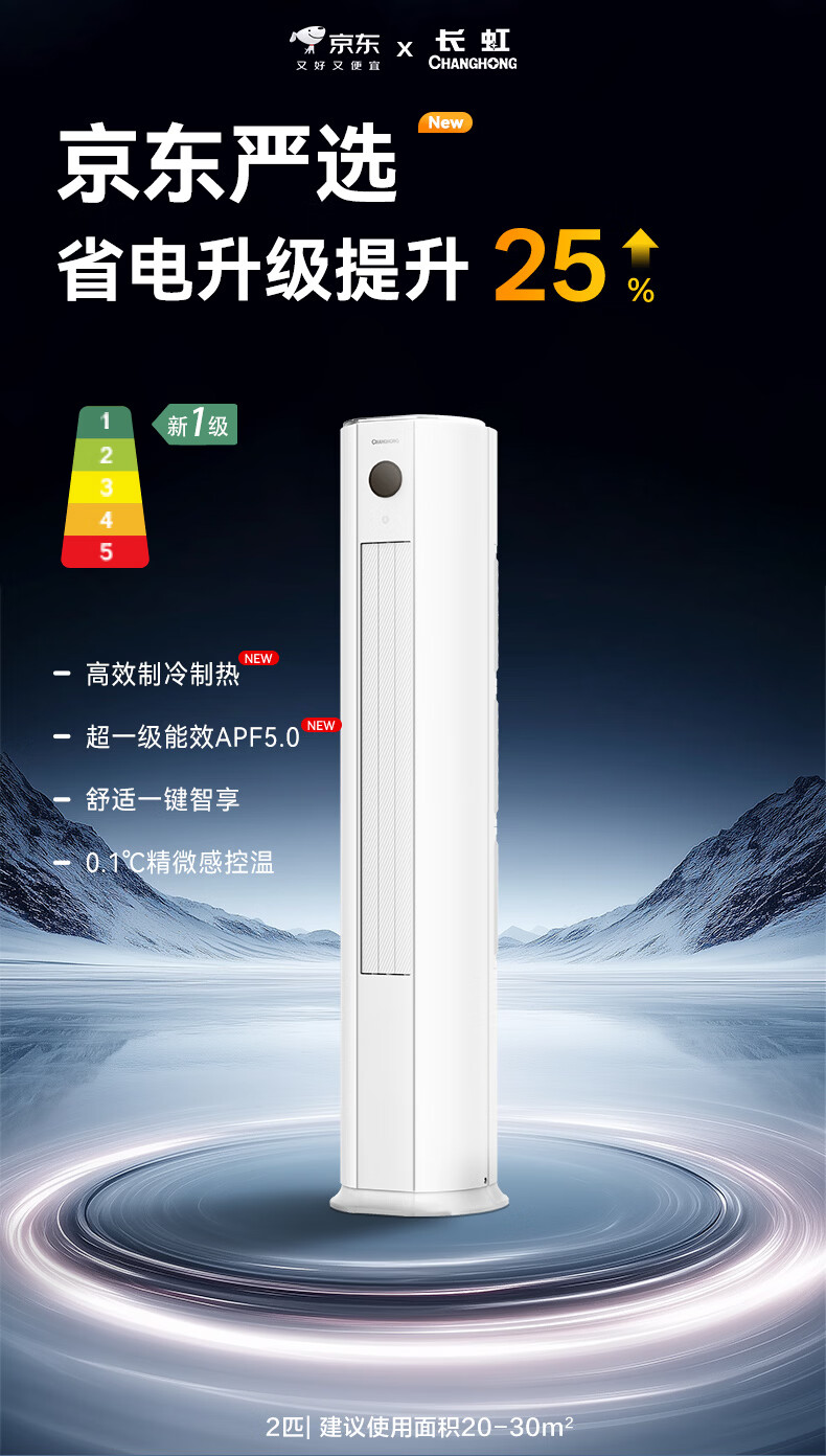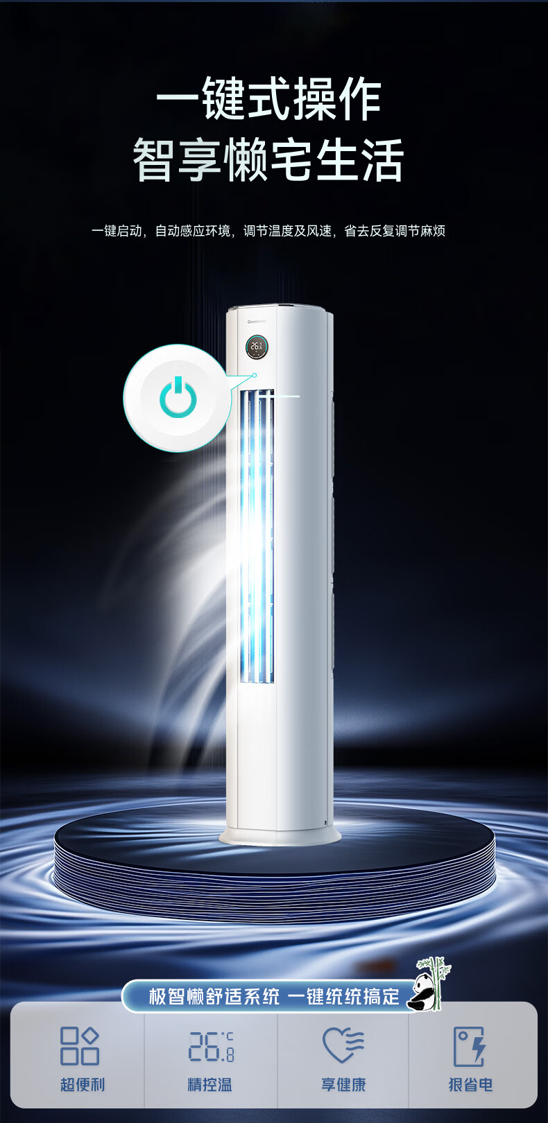 长虹空调 大2匹京东严选熊猫懒新一级超省电冷暖立式变频柜机空调国家补贴 KFR-51LW/JDC1+R1十年包修
