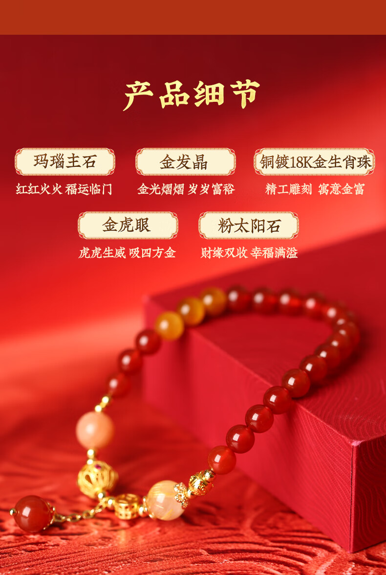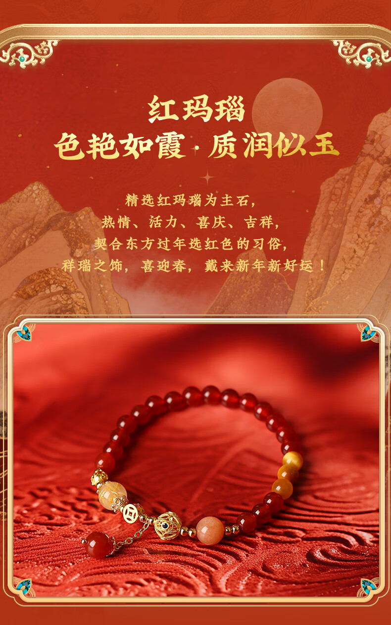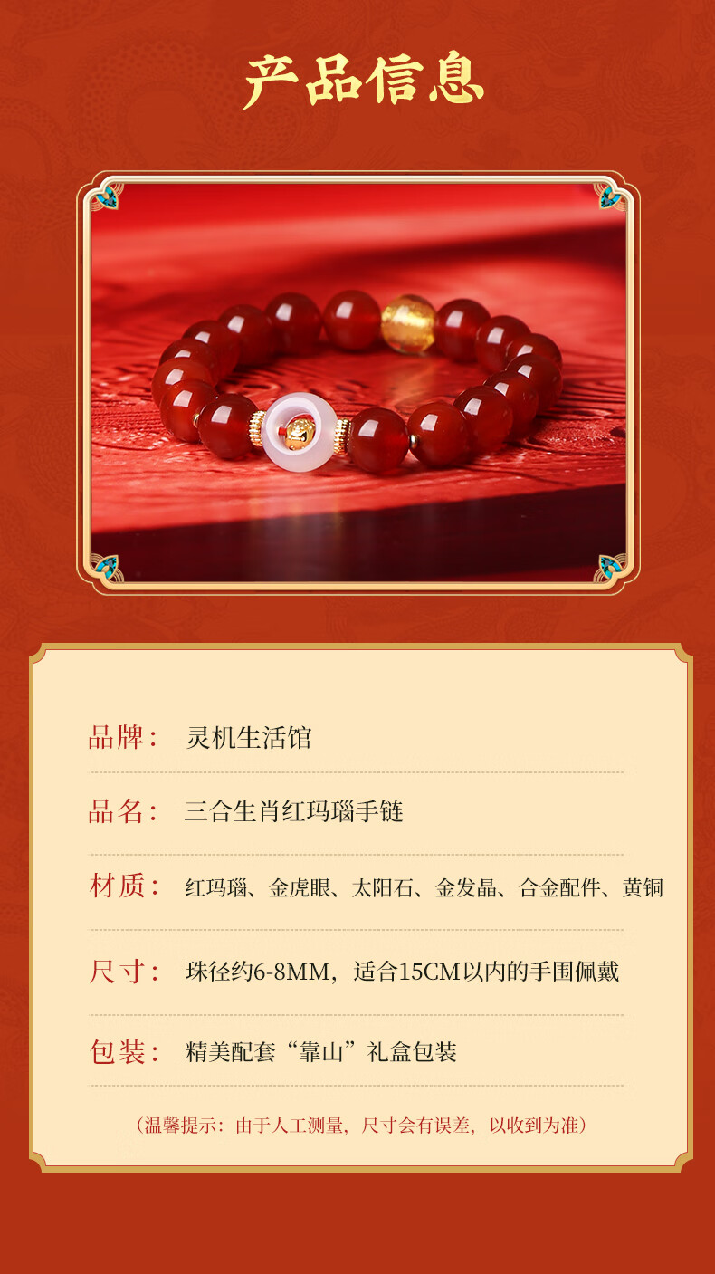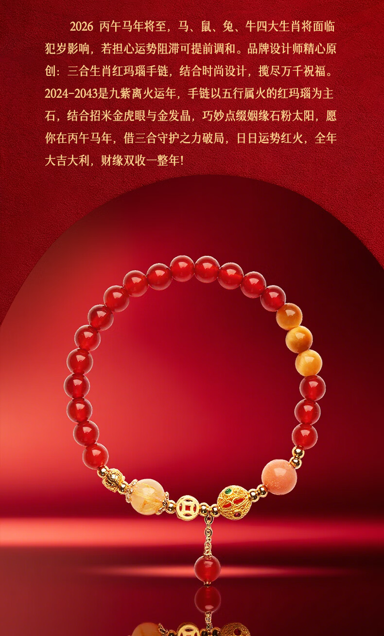 灵机生活馆麦玲玲同款2026马三合生肖红玛瑙手链本命年太岁手串新年礼物 【属马佩戴】2026年三合生肖红玛瑙手链