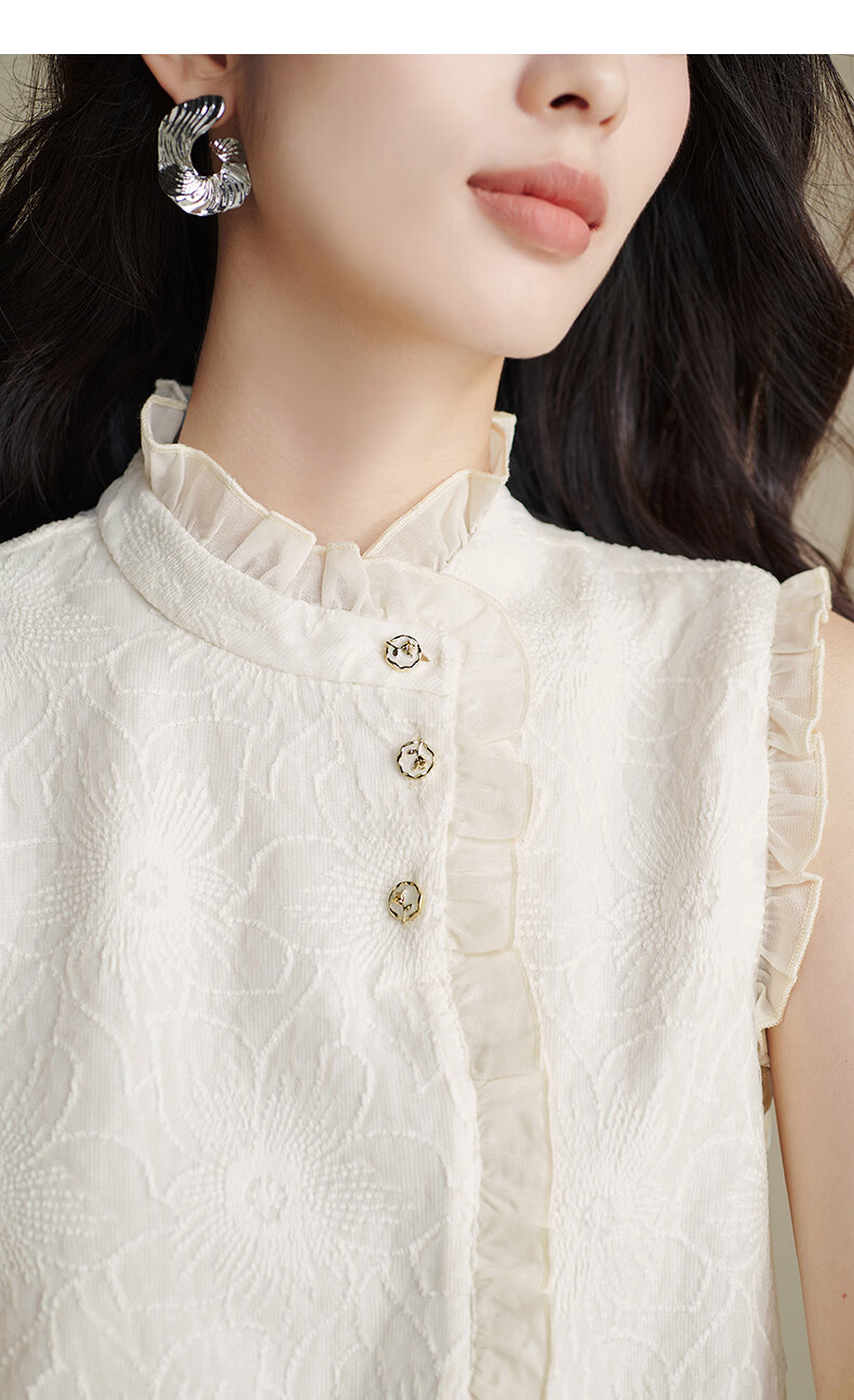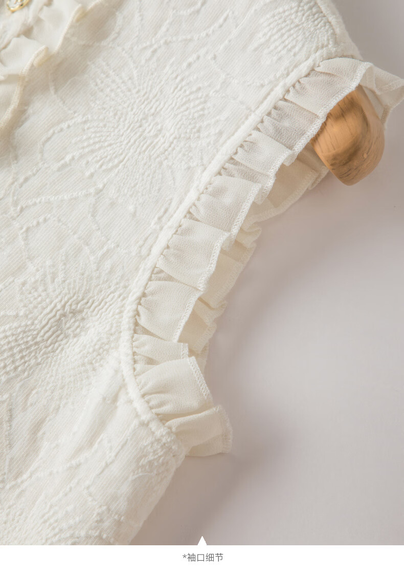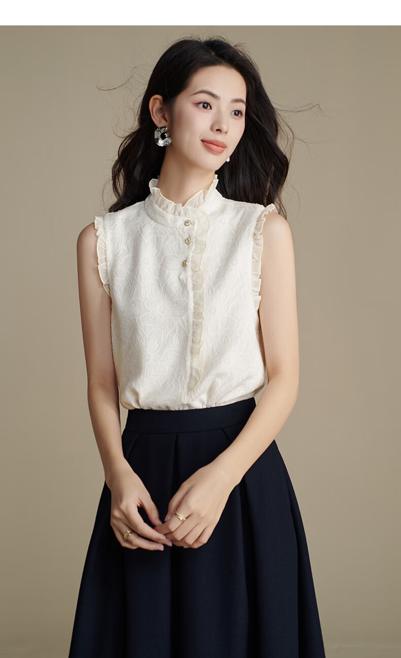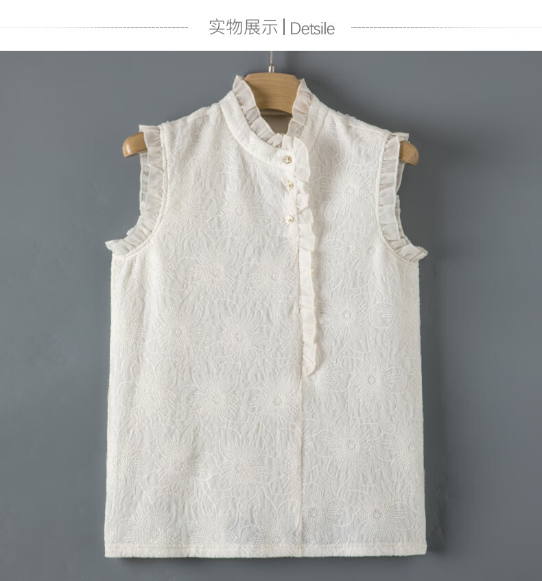 晚白【断码清仓】时尚优雅法式蕾丝上衣内搭外穿温柔知性无袖衬衫女 杏色 S