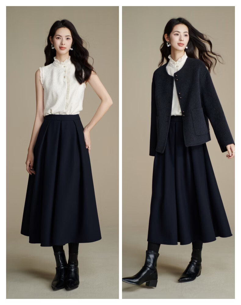 晚白【新品】2026年春款时尚刺绣中袖裙子挺括修身显瘦通勤连衣裙 深蓝色 S